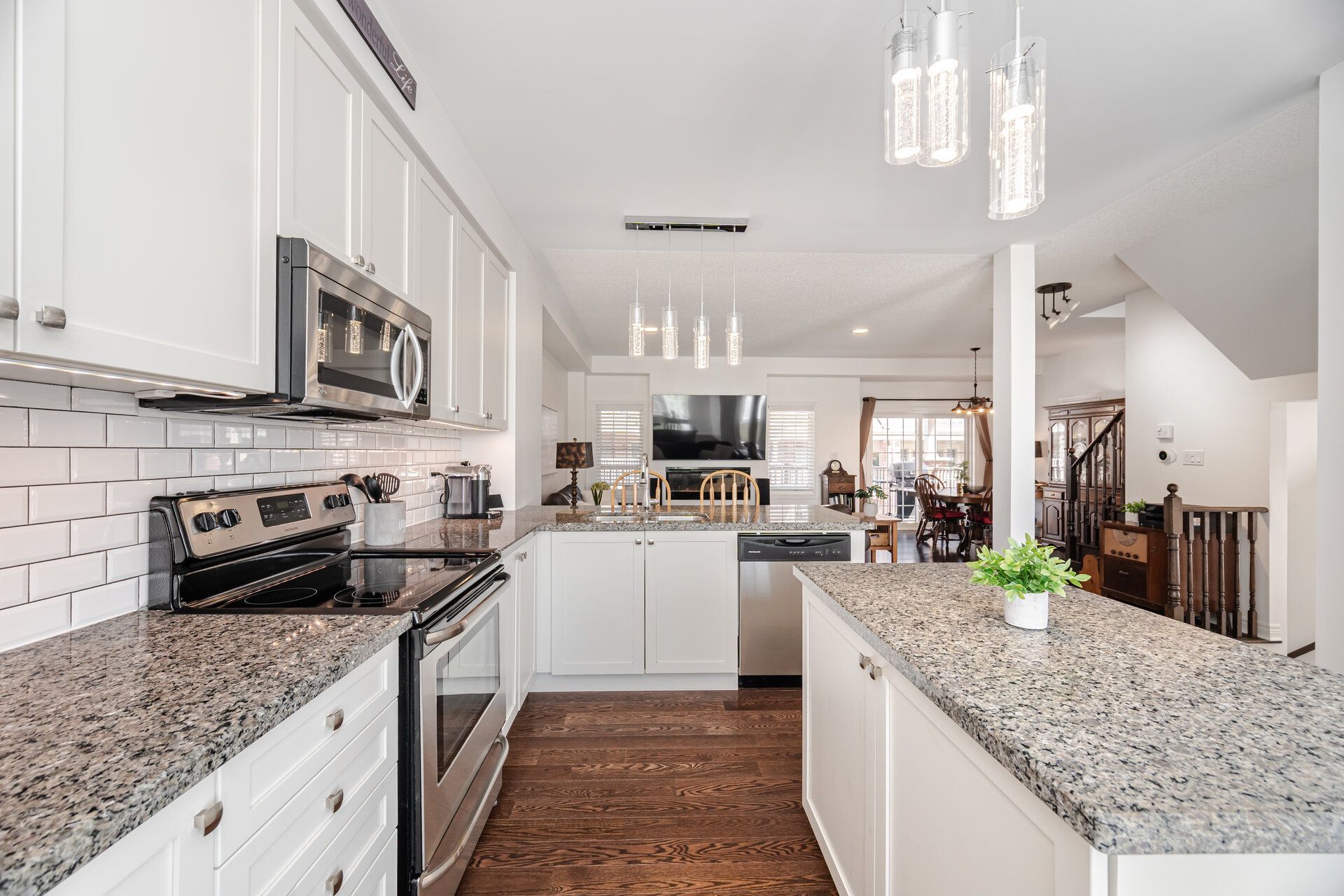 • Upgraded kitchen features stainless steel appliances, granite countertops, and a large pantry.
