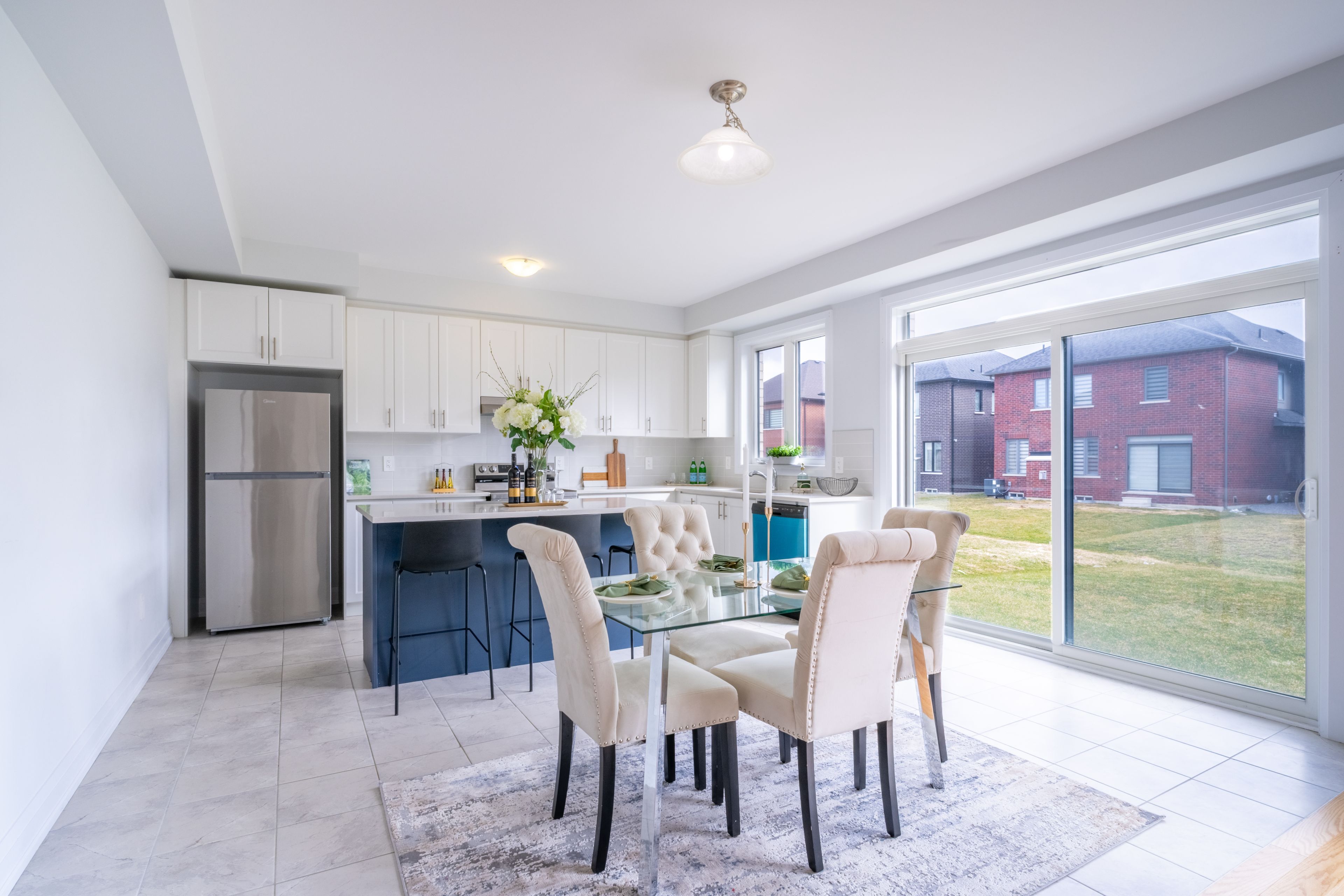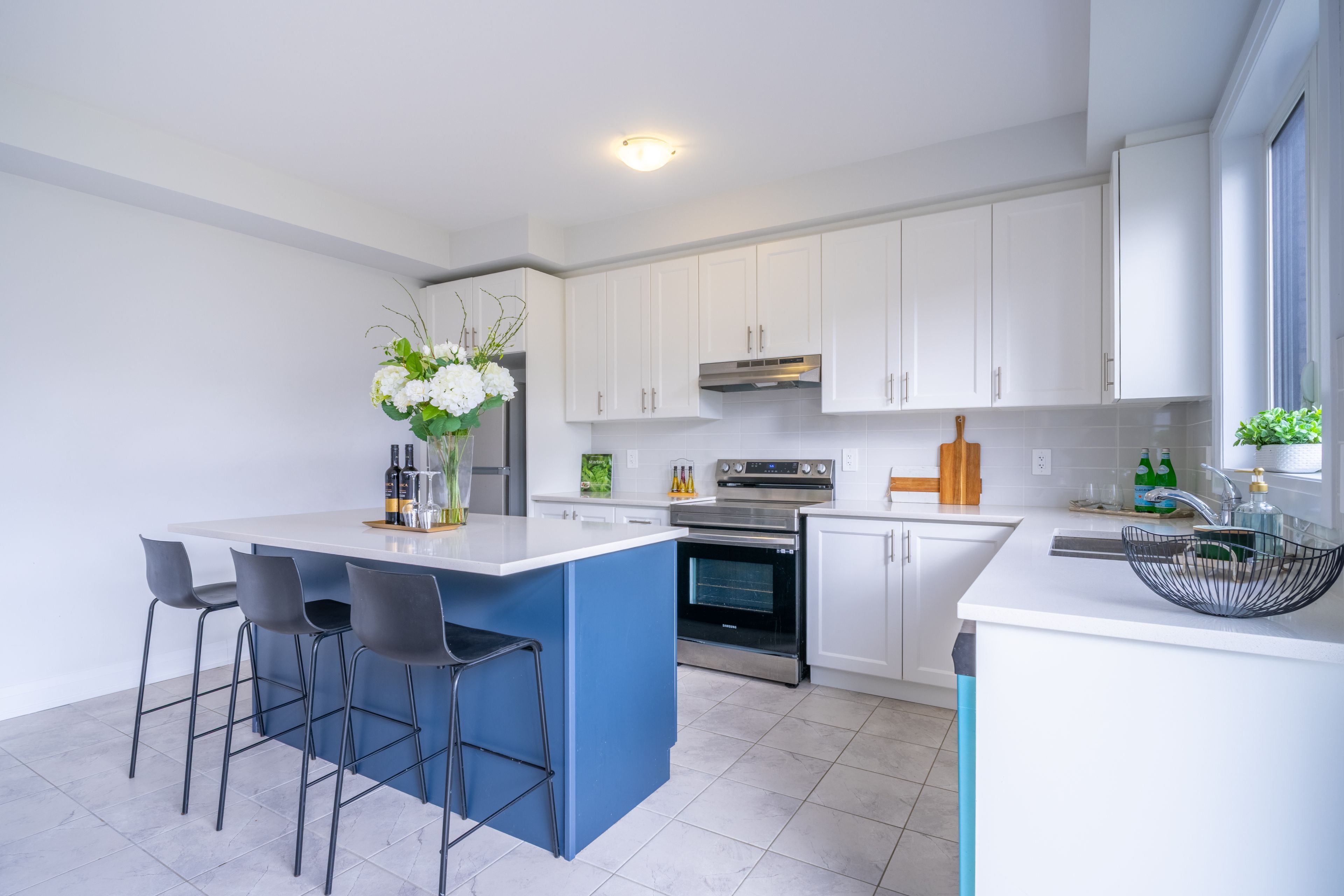 • Large kitchen with ample cabinetry and generous counter space for hosting.