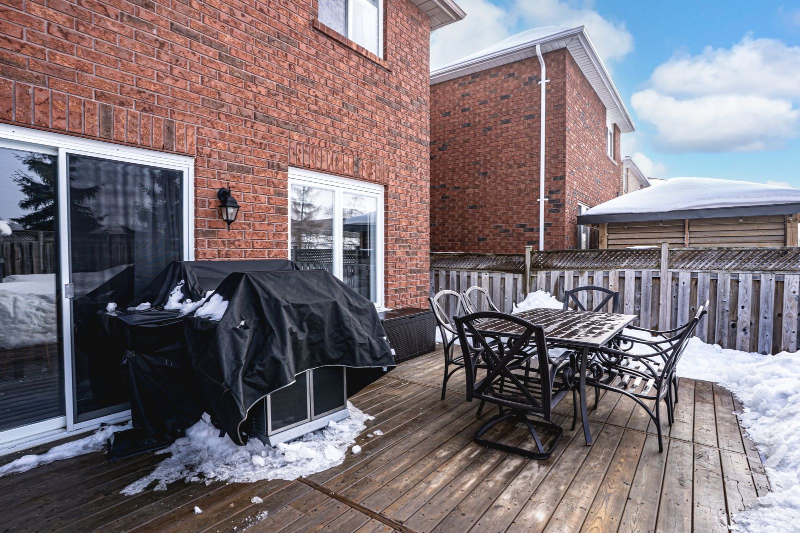 All-brick end-unit townhome on a deep 112 ft lot in a walkable north barrie location! This east bayfield end-unit stands out for its location, practical floor plan, and outdoor space that adds extra function to a classic townhome design, with east bayfield community centre, barrie sports dome, riocan georgian mall, terry fox e. S, restaurants, trails, and transit all within walking distance for a lifestyle that keeps daily routines close to home. An all-brick exterior and attached garage with inside entry offer everyday ease, while the 112 ft deep lot backing onto the school creates an open rear view and a backyard you will actually use, complete with a newer deck and storage shed. The main level feels bright and easy to live in, with an open living and dining area finished in a neutral paint tone and a walkout to the fenced yard, while the kitchen stays timeless and functional, with stainless steel appliances, a breakfast bar, a double sink, and a subway tile backsplash. A convenient 2-piece powder room completes the main floor. Upstairs, three good-sized bedrooms include a primary with dual closets and semi-ensuite access to the 4-piece main bath. The unfinished basement delivers excellent storage today and the flexibility to create a future rec room, play room, home gym, or hobby space when you are ready. A well-connected neighbourhood, a layout that works, and an outdoor space that adds real value make this #hometostay an easy fit for a wide range of lifestyles.