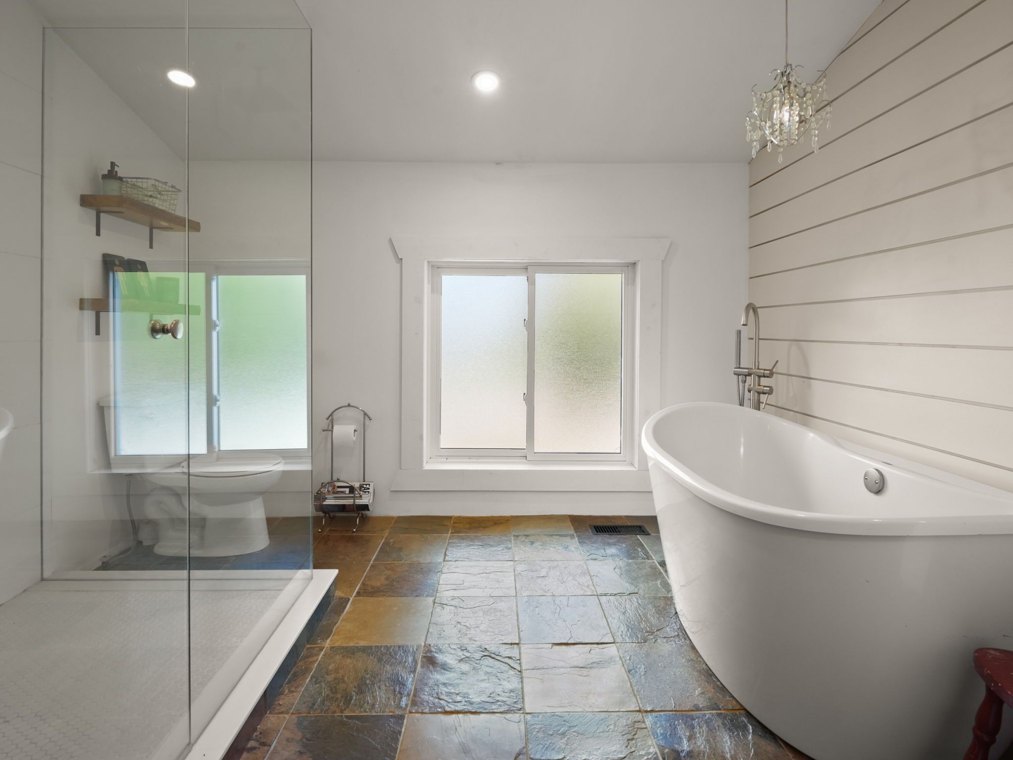 • Newly renovated bathroom features a luxurious clawfoot tub and modern shower.