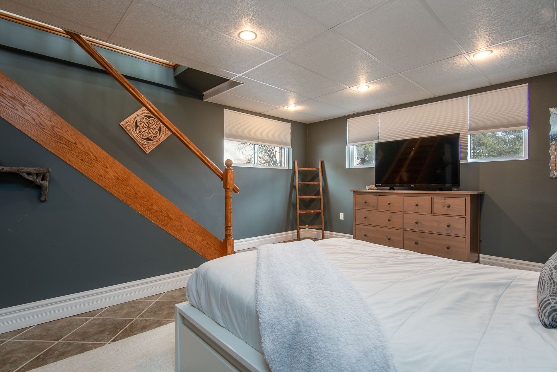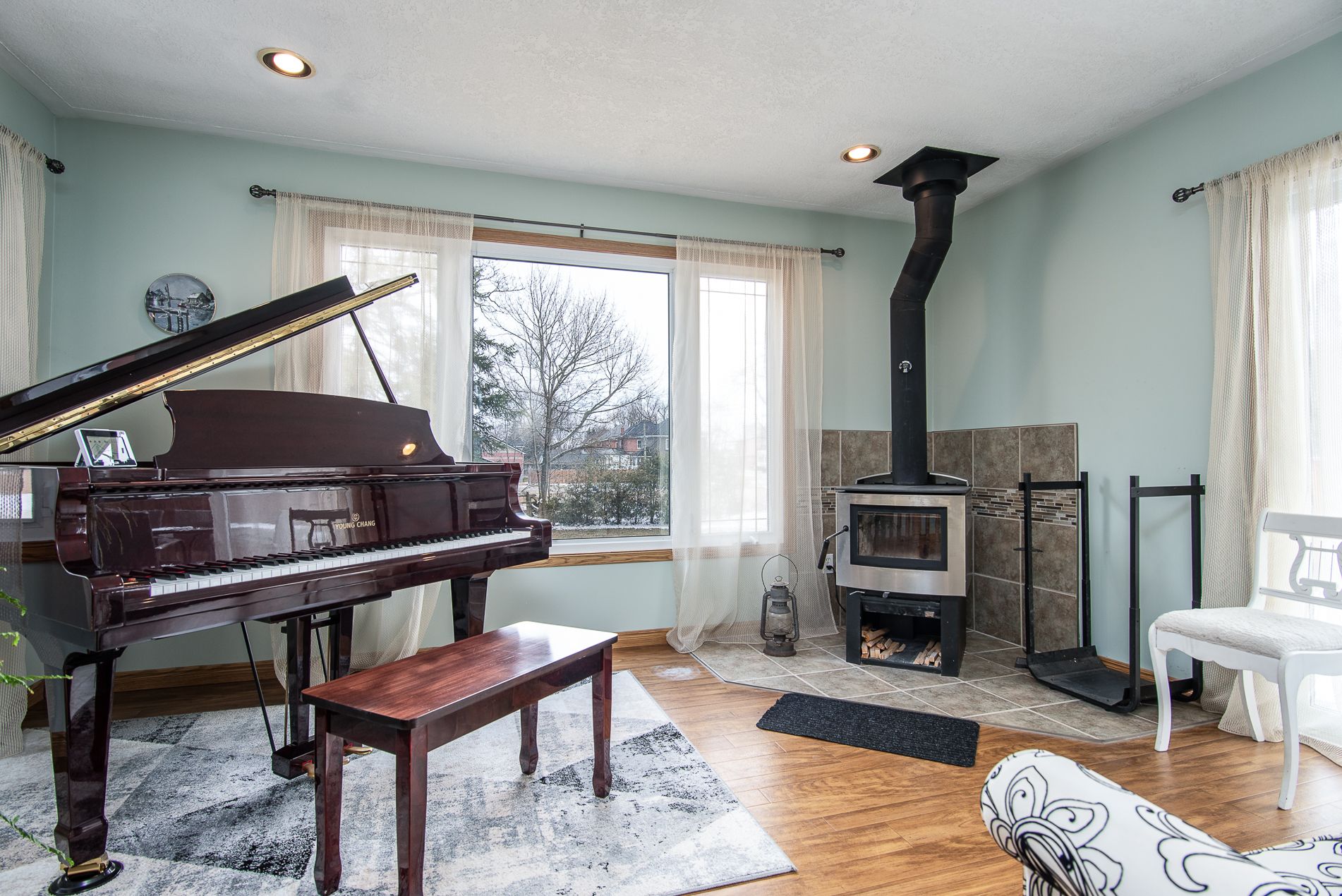 • Cozy family room featuring a wood-burning stove for winter warmth.