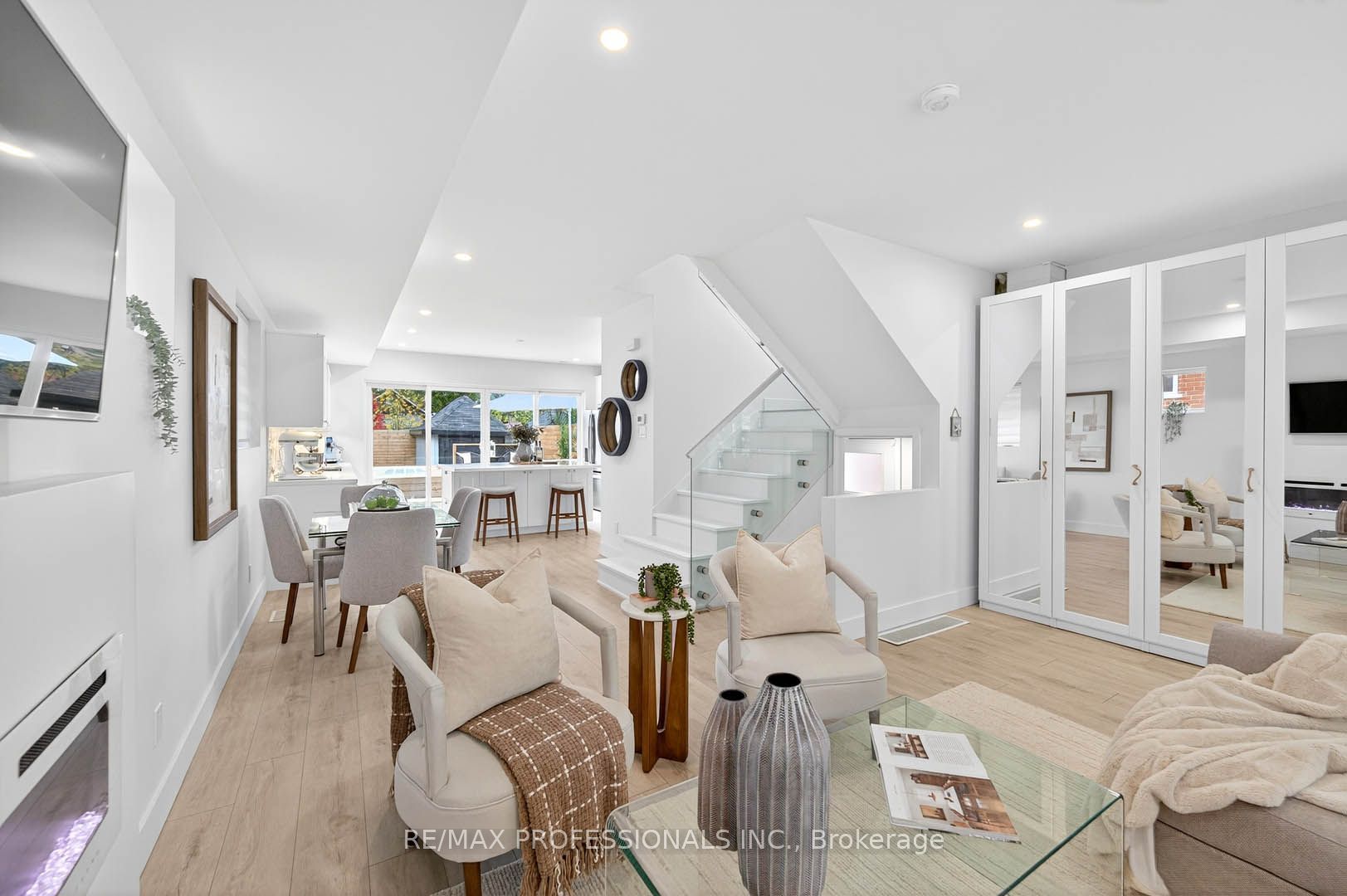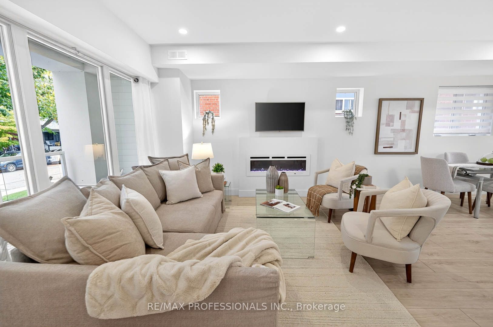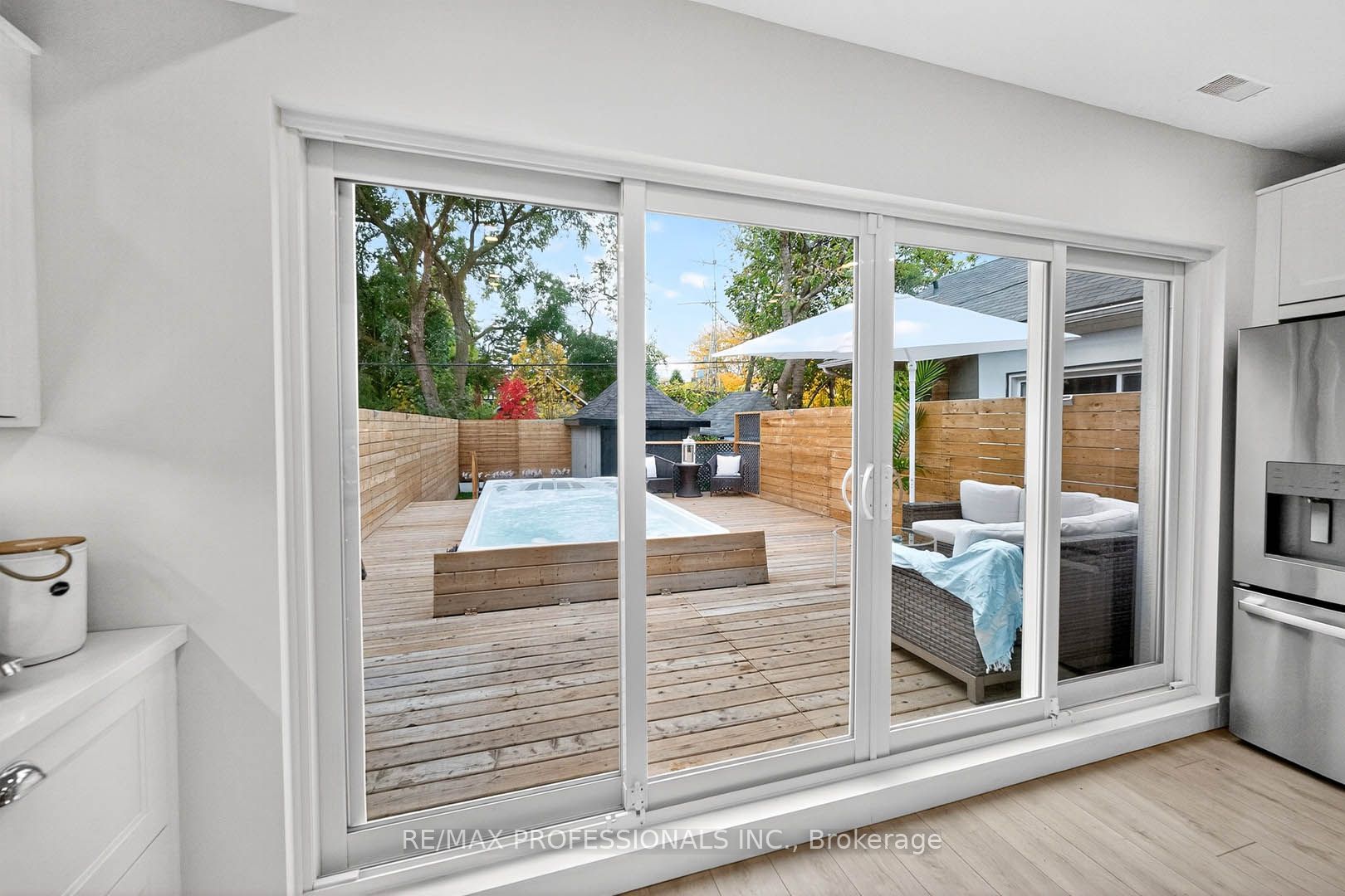 Stunning 3-story beach house-inspired home, completely rebuilt in 2023! This one-of-a-kind residence in new toronto's lake-side community offers 3 spacious bedrooms, 4 beautifully designed bathrooms, and a perfect blend of modern luxury and warm charm. The open-concept main floor features a sun-filled living space and a chef's dream kitchen with a large family island, premium stainless-steel appliances, integrated built-in dishwasher, countertop stove with commercial-grade hood vent, and built-in wall oven & microwave. Elegant undermount and glass cabinet lighting, along with ample storage, make this kitchen an entertainer's delight! Step outside to a large back deck and garden with a built-in hydropool swim spa, creating a private backyard oasis ideal for relaxation or gatherings. The 2nd level boasts two large, light-filled bedrooms with generous closets, a modern 4-piece bath, and convenient laundry. Retreat to the entire third level, exclusively designed as a private primary suite featuring a sun-drenched bedroom with an electric fireplace, balcony overlooking the treed neighborhood, and a luxurious 5-piece spa ensuite with a soaker tub, crystal chandelier, double sinks with light-up anti-fog mirrors, and a separate shower with elegant glass tiffany tile. Enjoy instant privacy with a custom remote blind! Glass & steel railings throughout add a sleek, contemporary touch. The finished basement offers a separate entrance, kitchen area with rough-in for a stovetop & hood vent, spacious recreation room, 3-piece bath, fourth bedroom, and rough-in for additional laundry-perfect for guests or in-law/rental suite potential! Complete with a garage for storage! Steps to beautiful parks, trails, schools, shopping, transit (ttc & go), and so much more, this fully rebuilt home is truly turnkey and ready for you to move right in and start living your life by the lake!