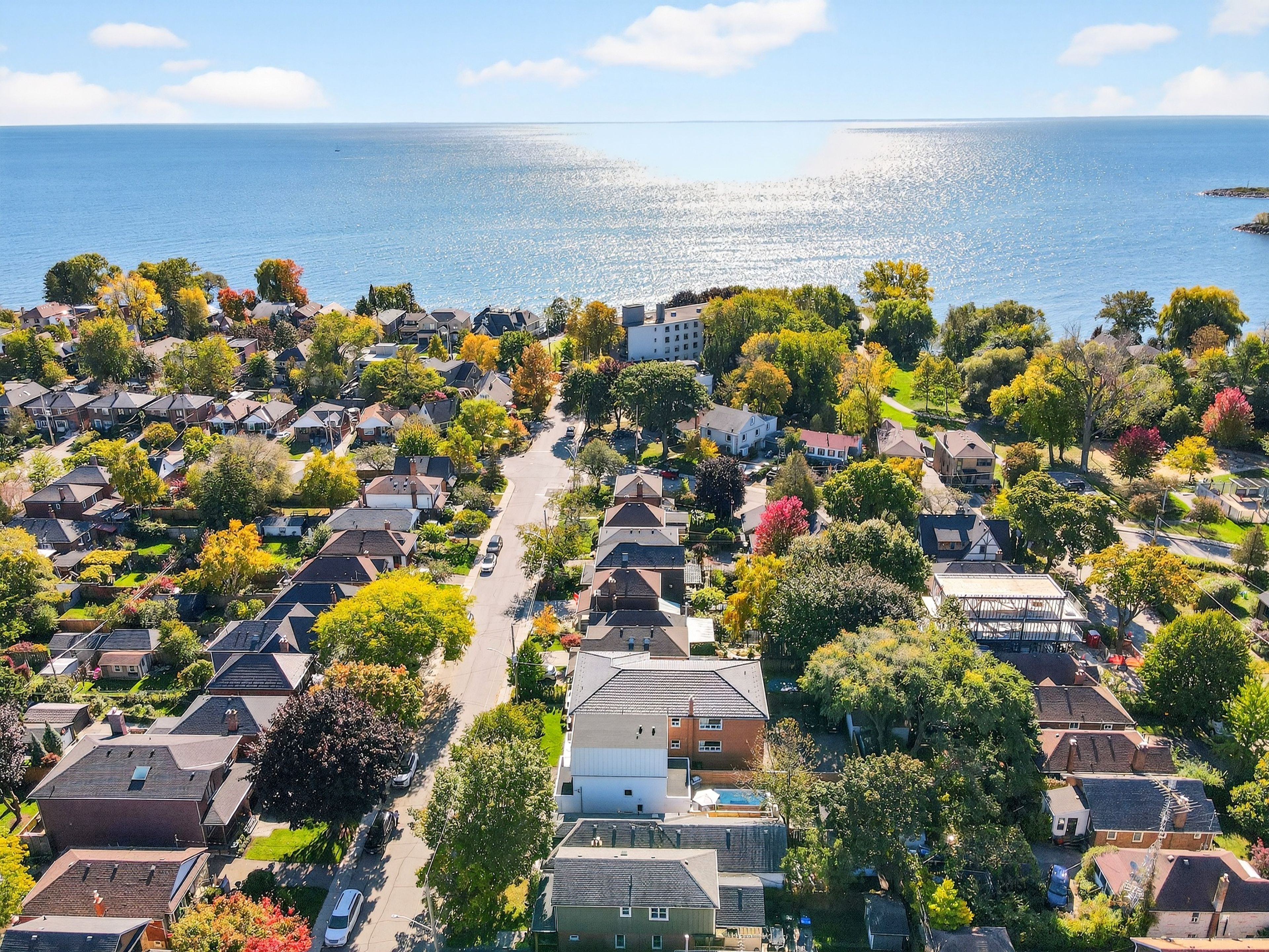 Stunning 3-story rebuilt modern home steps to the lake! This one-of-a-kind residence in new toronto's lake-side community offers 3 spacious bedrooms, 4 beautifully designed bathrooms on four thoughtfully designed floors. The open-concept main floor features a sun-filled living space and a chef's dream kitchen with a large family island, premium stainless-steel appliances, quartz countertops, integrated built-in dishwasher, countertop stove with commercial-grade hood vent, and built-in wall oven & microwave. Elegant undermount and glass cabinet lighting, along with ample storage, make this kitchen an entertainer's delight! Step outside to a large back deck and garden with a built-in 20 ft hydropool swim spa, creating a private backyard oasis ideal for fitness, relaxation or gatherings. The 2nd level boasts two large, light-filled bedrooms with generous closets, a modern 4-piece bath with antifog mirror, and convenient laundry room. Retreat to the entire third level, exclusively designed as a private primary suite featuring a sun-drenched bedroom with an electric fireplace, balcony overlooking the treed neighborhood, and a luxurious 5-piece spa ensuite with a soaker tub, crystal chandelier, double sinks with light-up anti-fog mirrors, and a separate shower with elegant glass tile. Enjoy instant privacy with a custom remote blind! Glass & steel railings throughout add a sleek, contemporary touch. The finished basement offers a separate entrance, kitchen area with rough-in for a stovetop & range hood, spacious sound proofed recreation room, 3-piece bath, fourth bedroom, and rough-in for additional laundry-perfect for guests or in-law/rental suite potential! Complete with a garage for storage! Steps to beautiful parks, trails, schools, shopping, transit (ttc & go), with easy access to major highways and both city airports, this home is truly turnkey and ready for you to move right in and start living your life by the water!