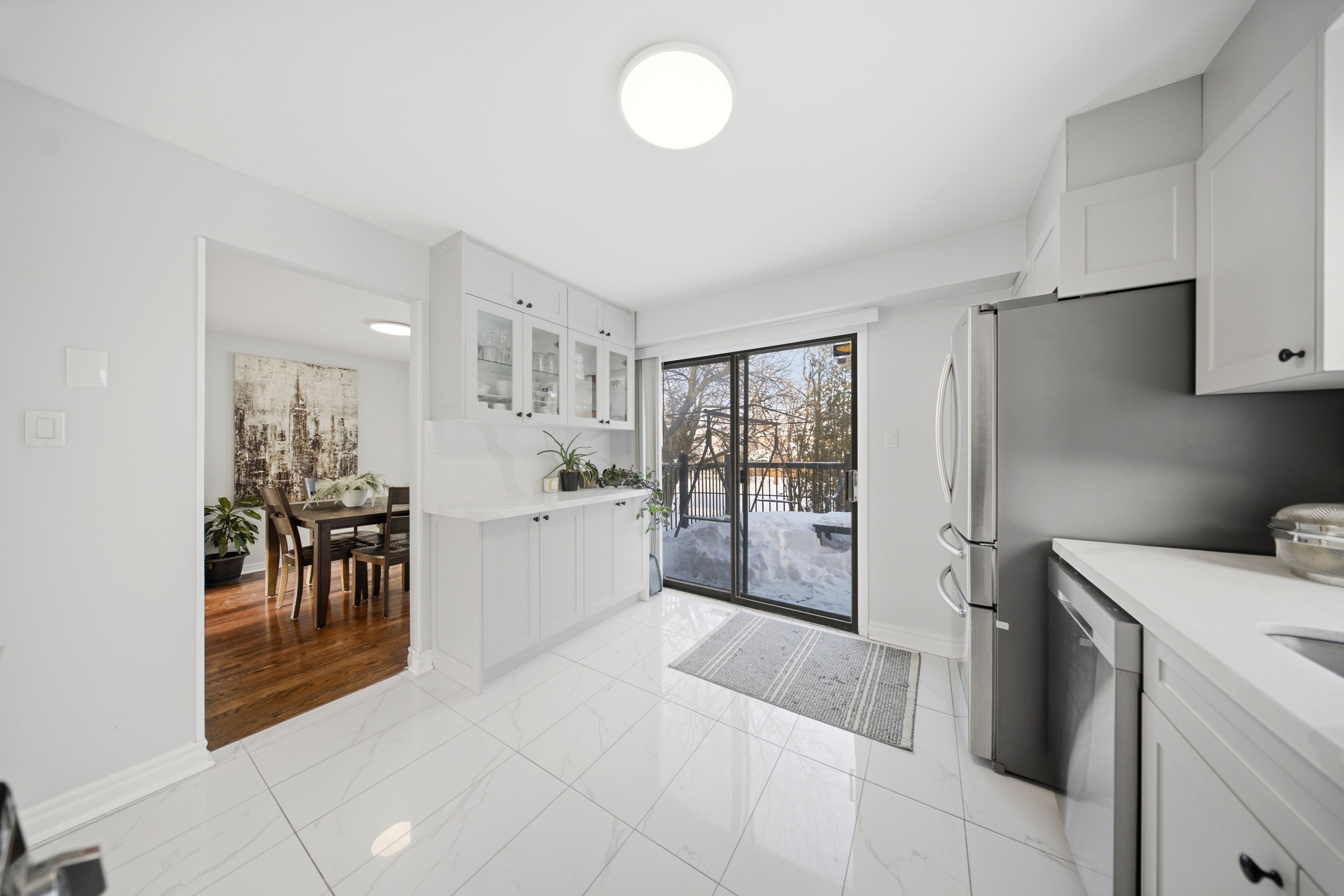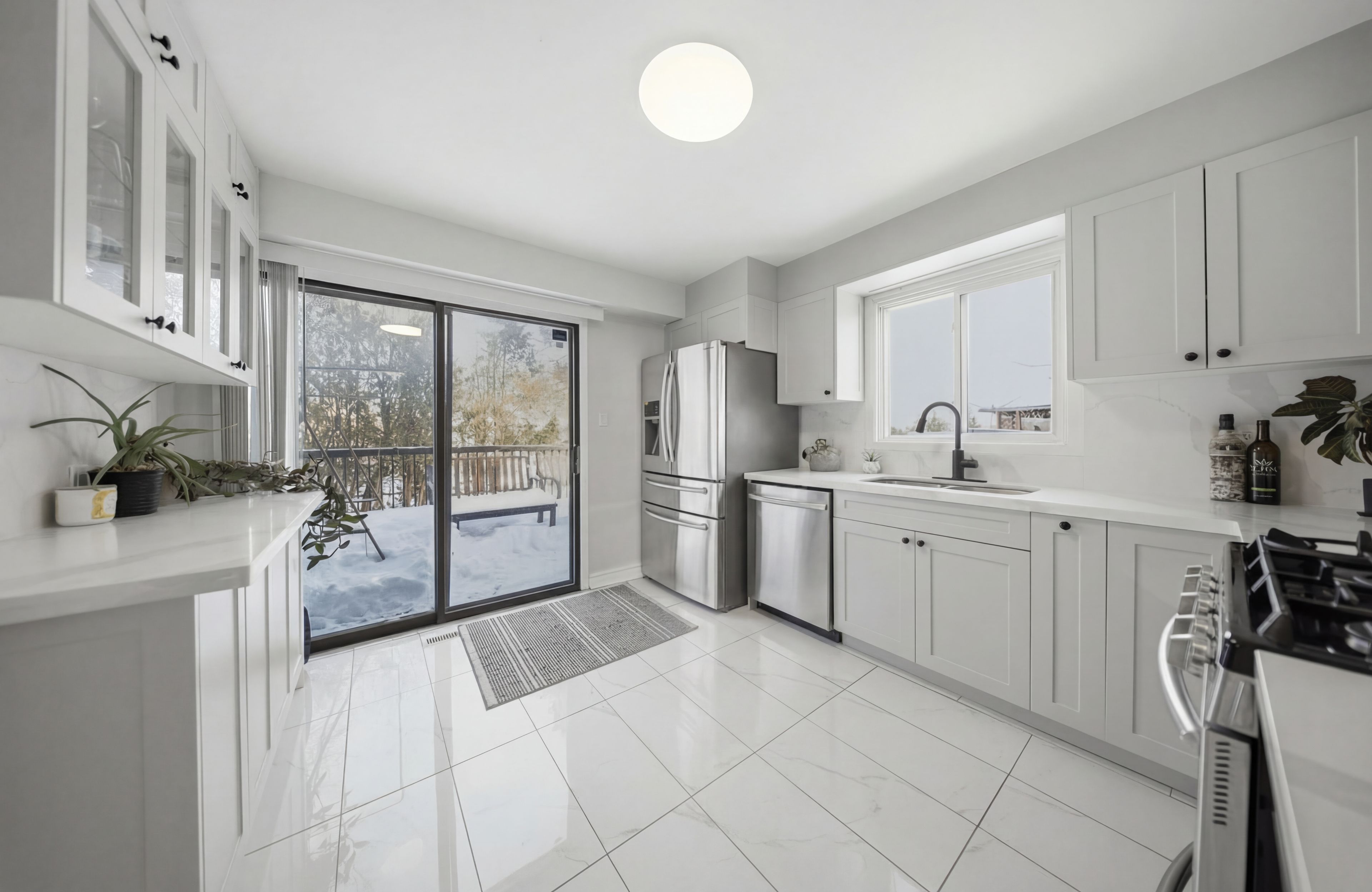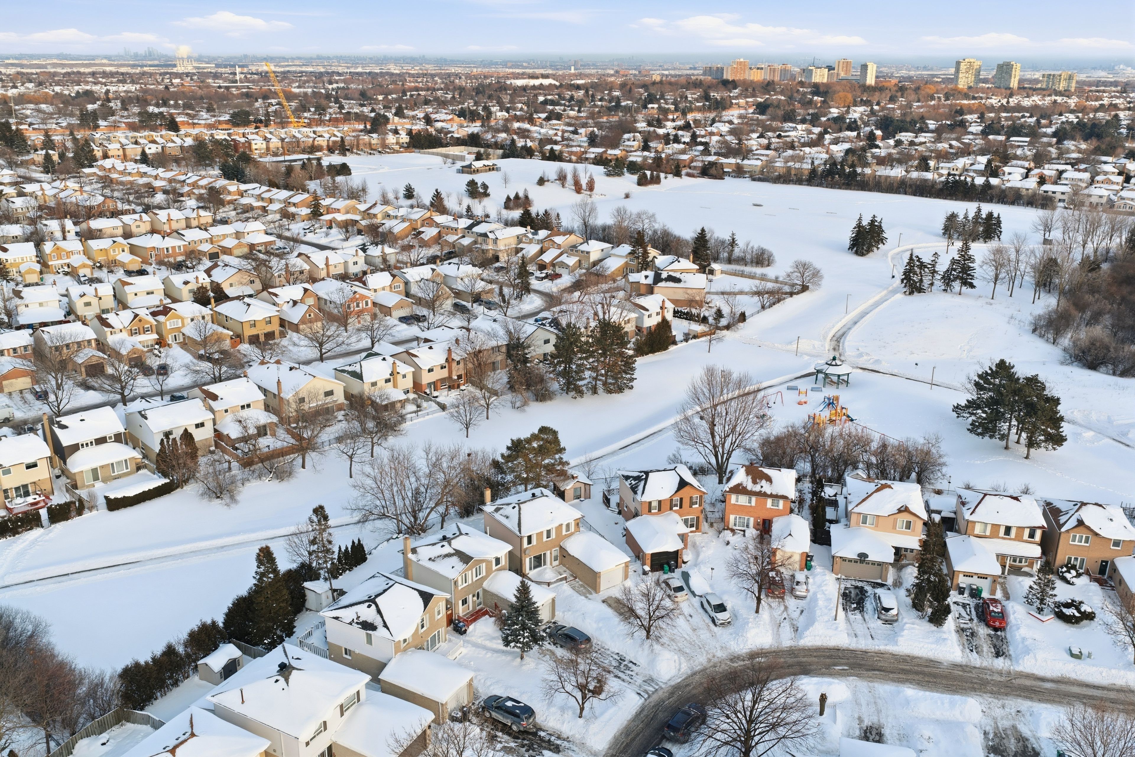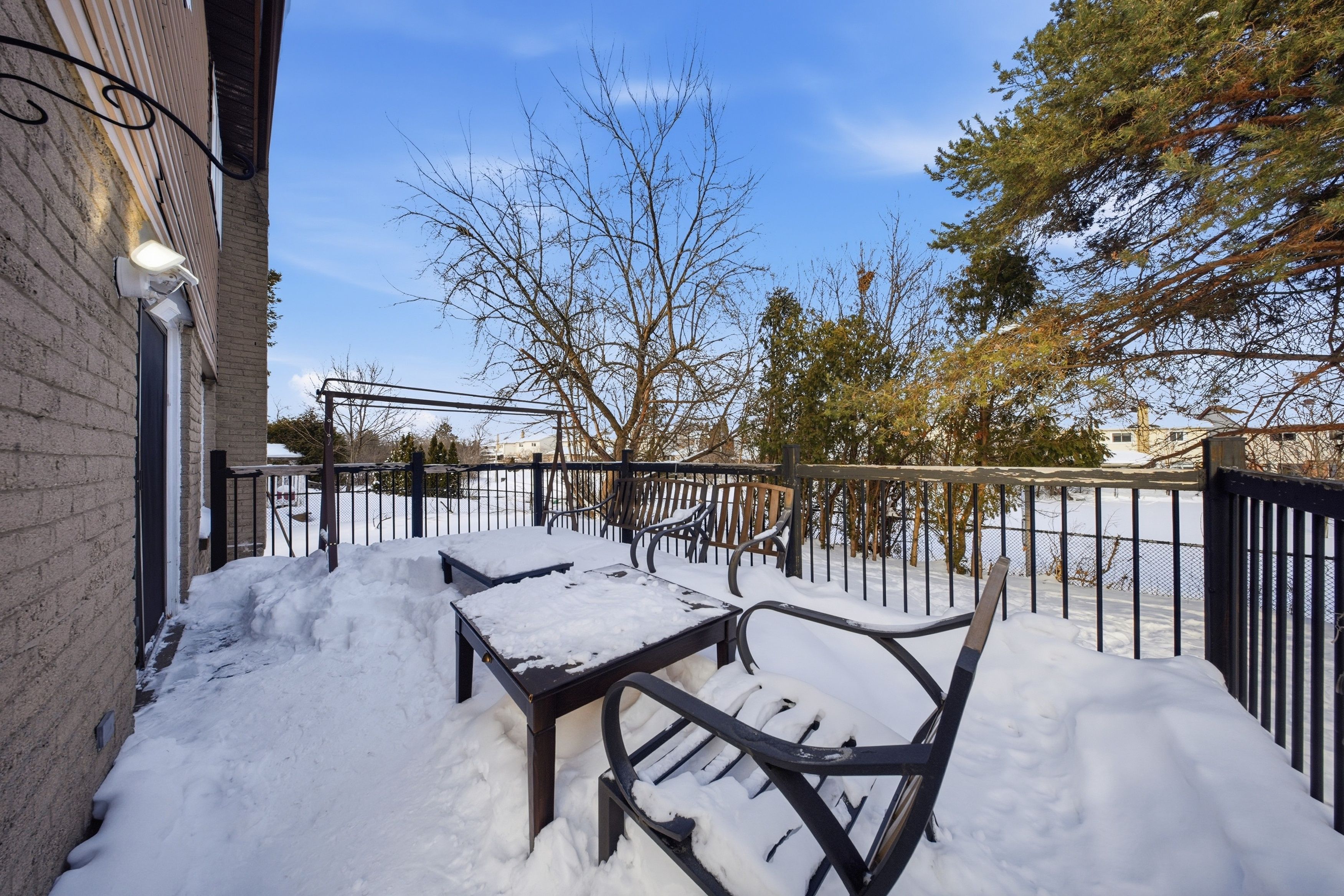 • Detached property with a large pie-shaped lot backing onto green space.