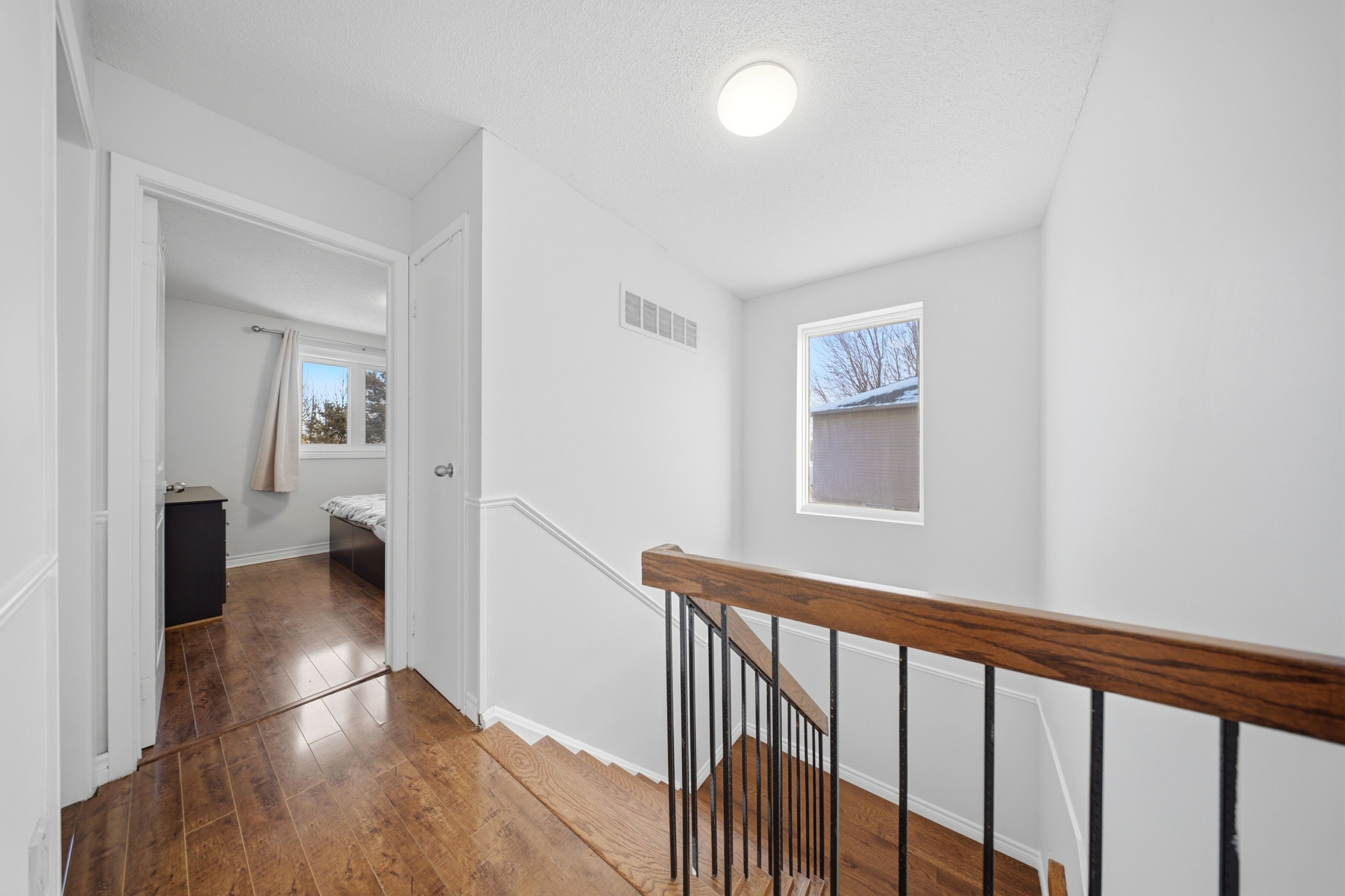Don't miss this deal! This detached property backing onto green space with a large pie-shaped lot features 4 bedrooms, 3 bathrooms, 5 parking spots and a separate suite/basement with a separate entrance, full bedroom, full-bathroom and living area. Pride of ownership is evident throughout. A rare find in a great setting-this home won't last!