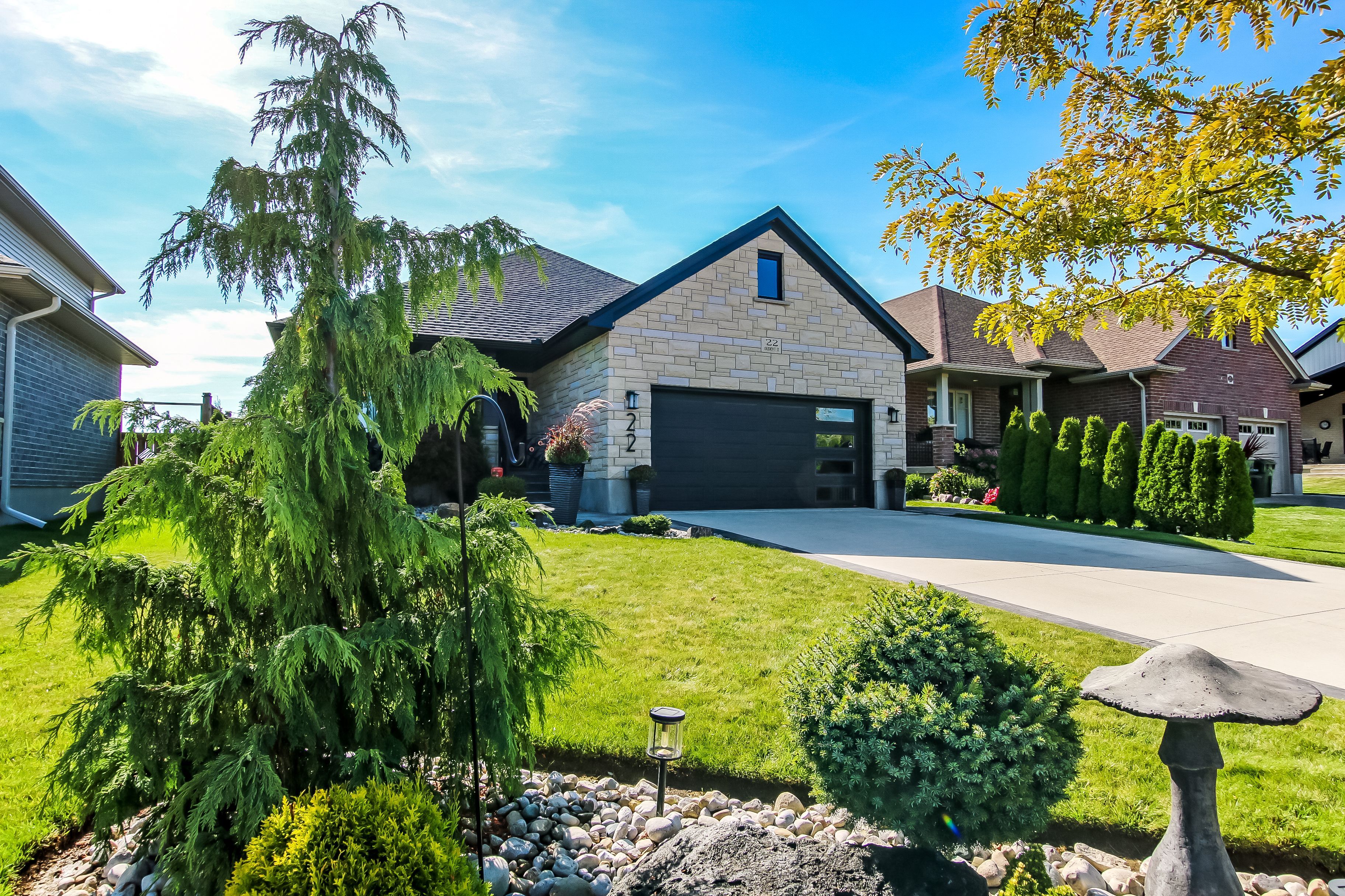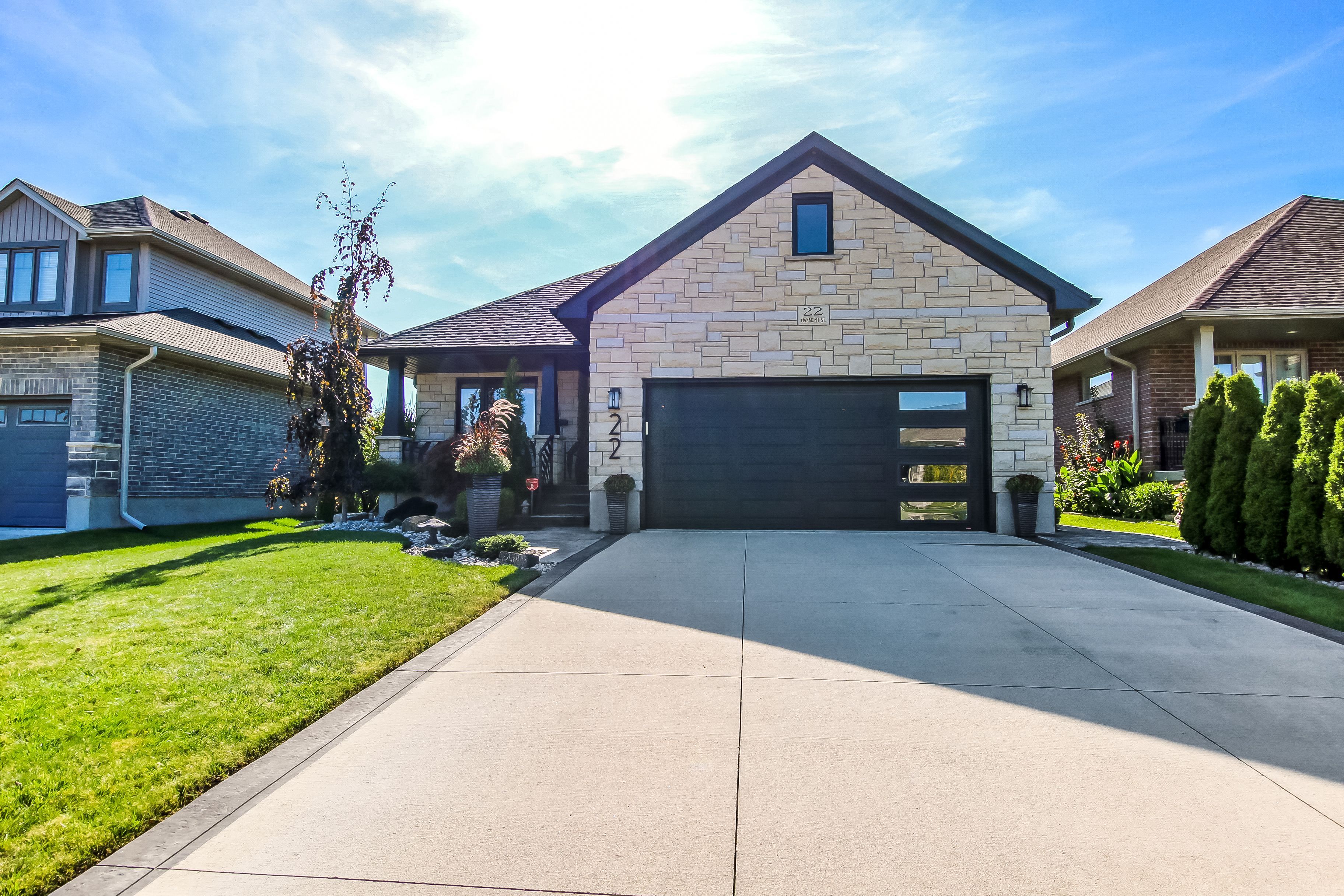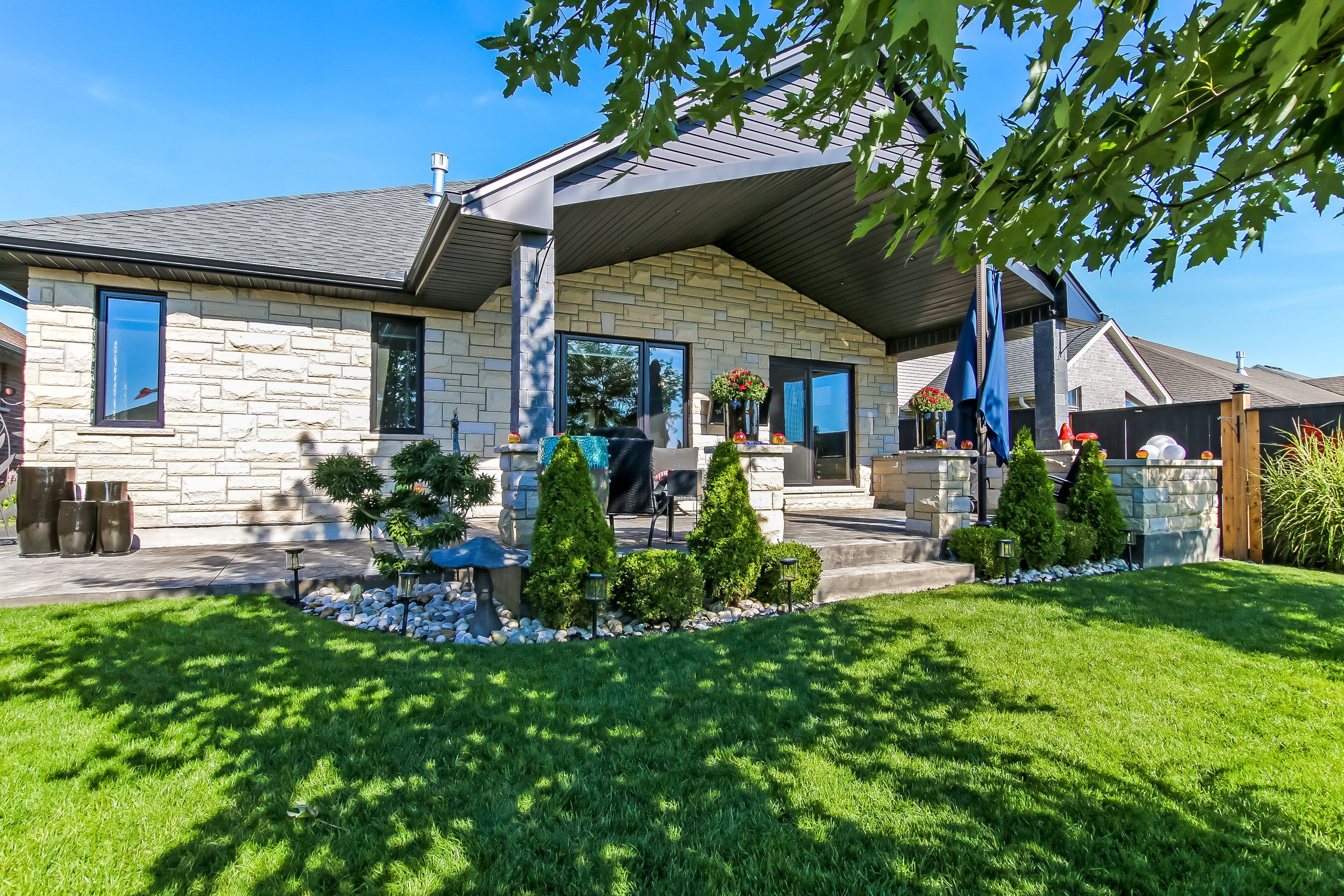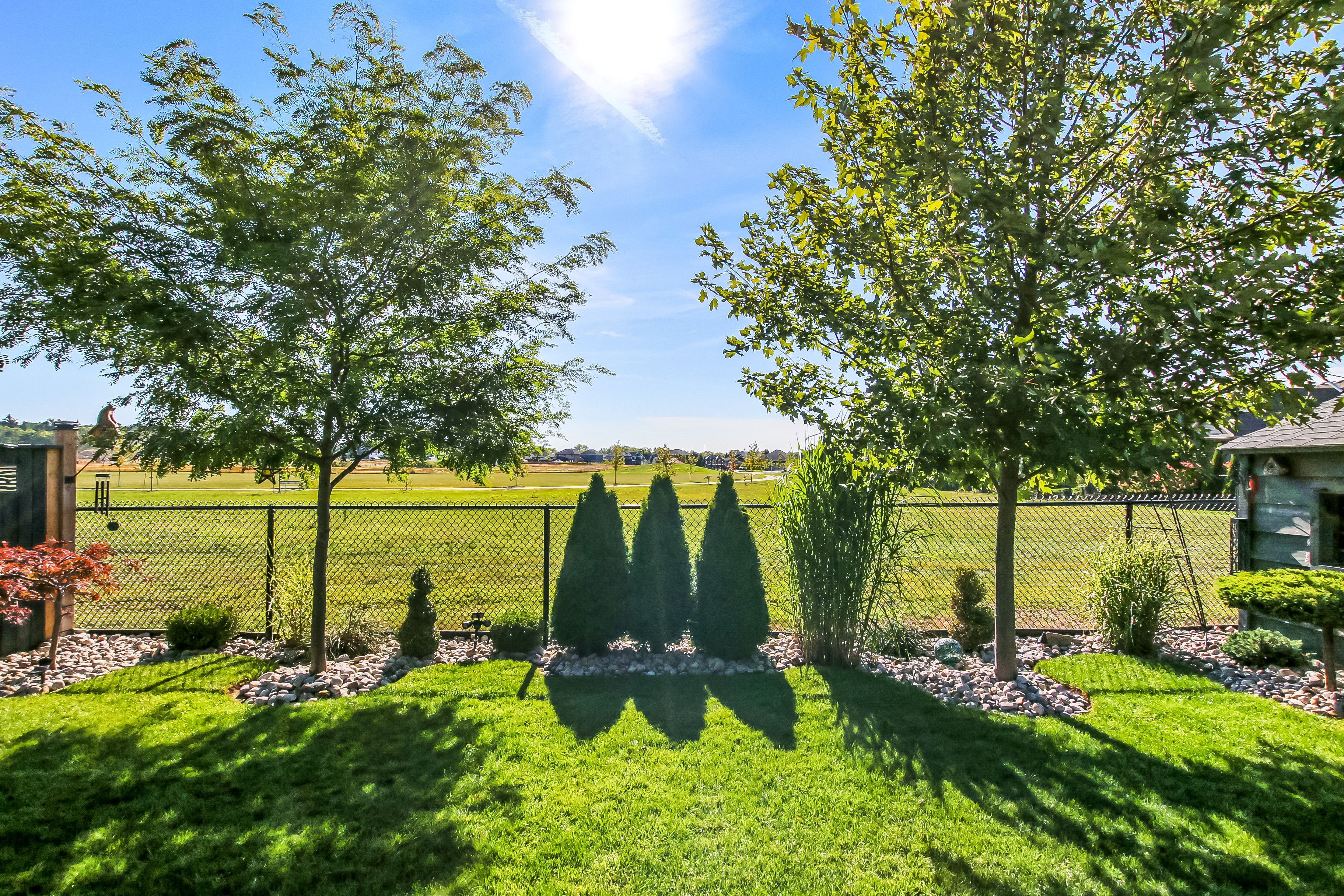 This beautiful bungalow located in shaw valley is sure to impress. From the moment you see the home you will find that pride of ownership is evident throughout and no expenses has been spared. Starting from the curb you will find a stone exterior with custom wrought iron railings, professional landscaping, concrete laneway with parking for 4 and a heated double attached garage with basement access. Entering the home you will find a welcoming foyer with views through the home. Off to the side is the guest bedroom, a custom full bathroom, and laundry room with access to the garage. The main living space at the back of the home is ideal for day to day living with a thoughtful layout consisting of a perfect sized dining room, large kitchen with cherry cabinets, walnut hardwood floors, live edge quartz countertops, oversized island, corner pantry and ss appliances. The breakfast nook has a serving hutch with a bar fridge and access to the patio. The bright living room has views of the backyard and green space with a gas fireplace as the focal point. Finishing off the main floor is the primary bedroom that offers ample space, tray ceilings, an ensuite with shower and a walk-in closet. The lower level continues to impress with potential for an in-law suite, a family room big enough for two entertaining areas, large egress windows in every room, a third bedroom with the potential to add a fourth bedroom, full bathroom with walk-in shower and a custom vanity. The backyard is an entertainers dream with a stamped patio spanning the back of the home with a canopy, outdoor cooking area, mature landscaping, a walkway to the shed and the side of the home and west facing views of the green space and park.