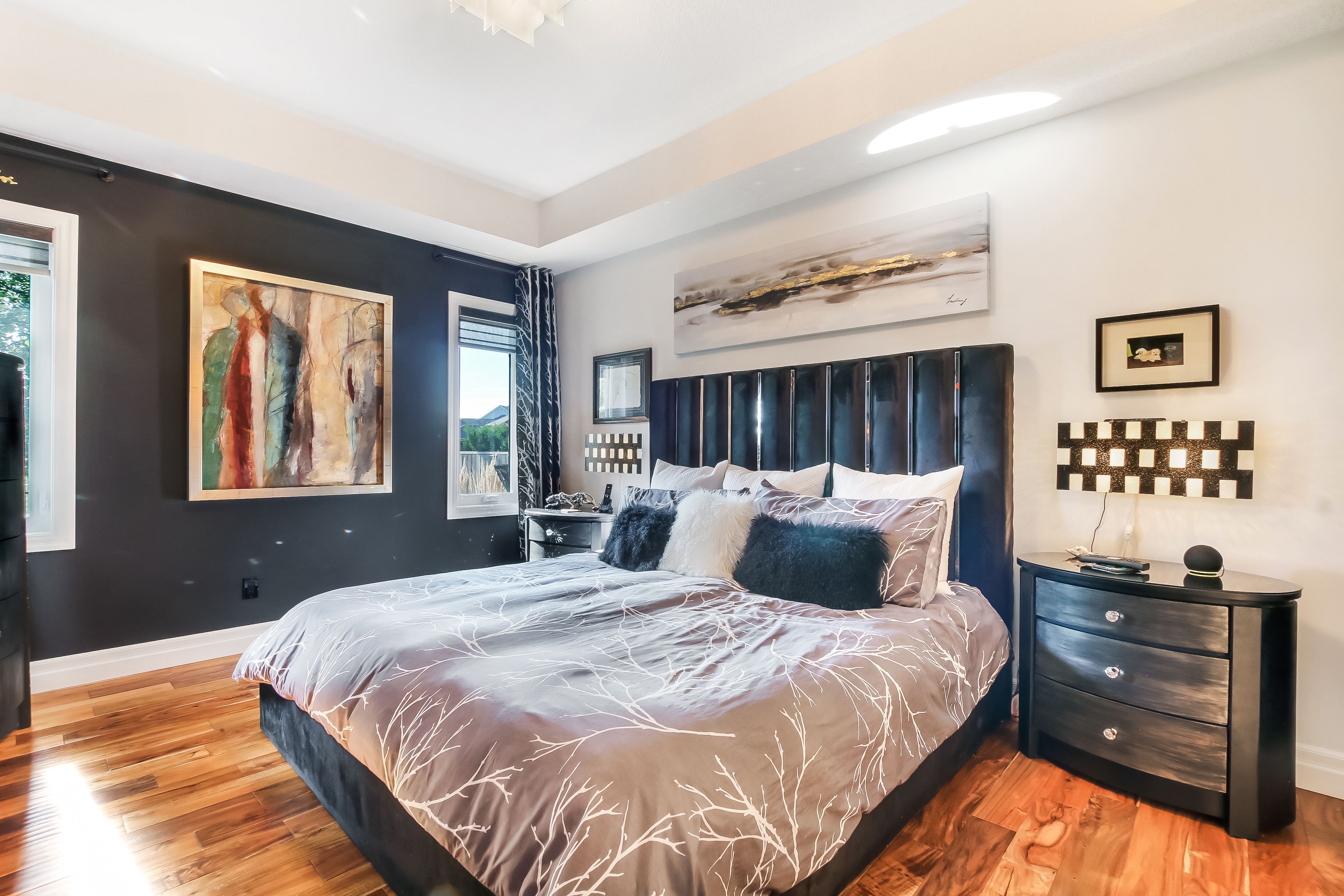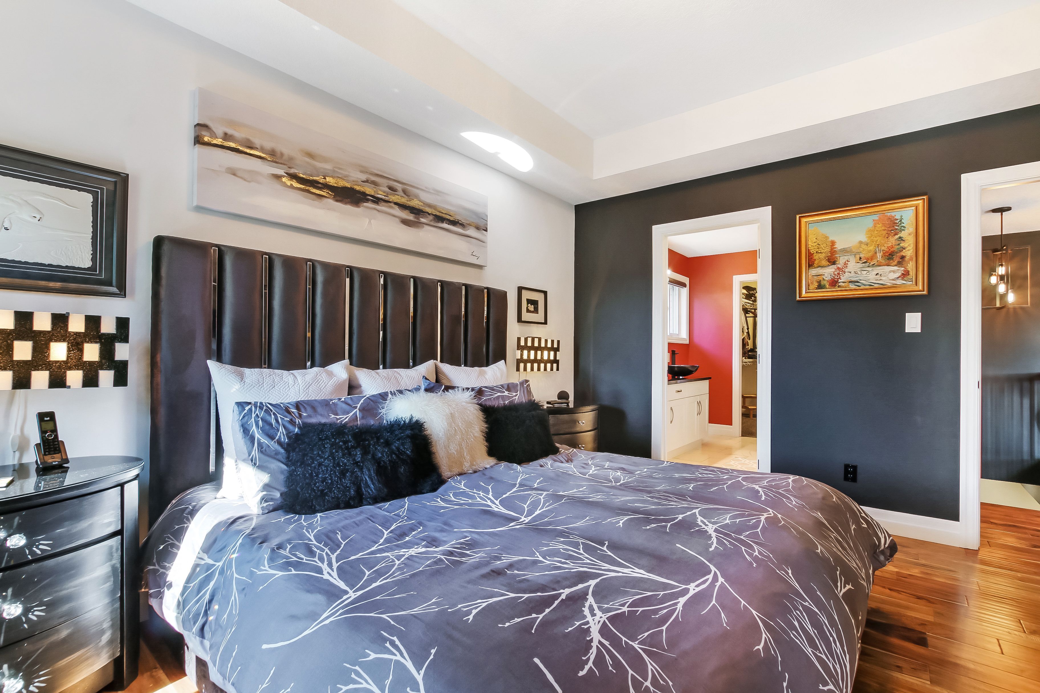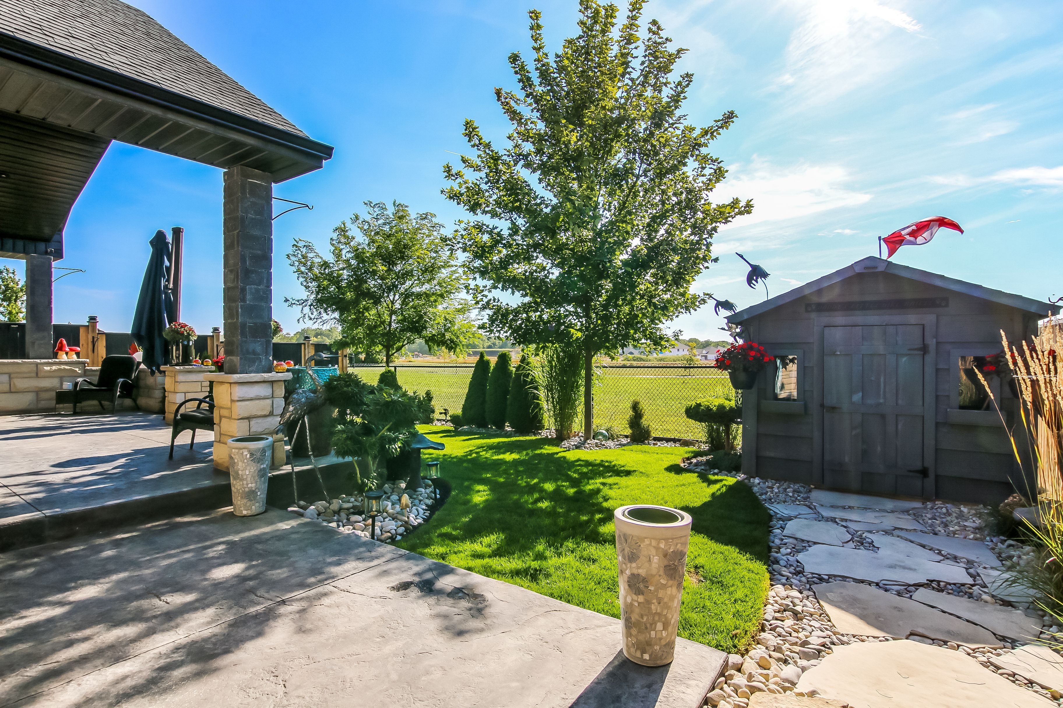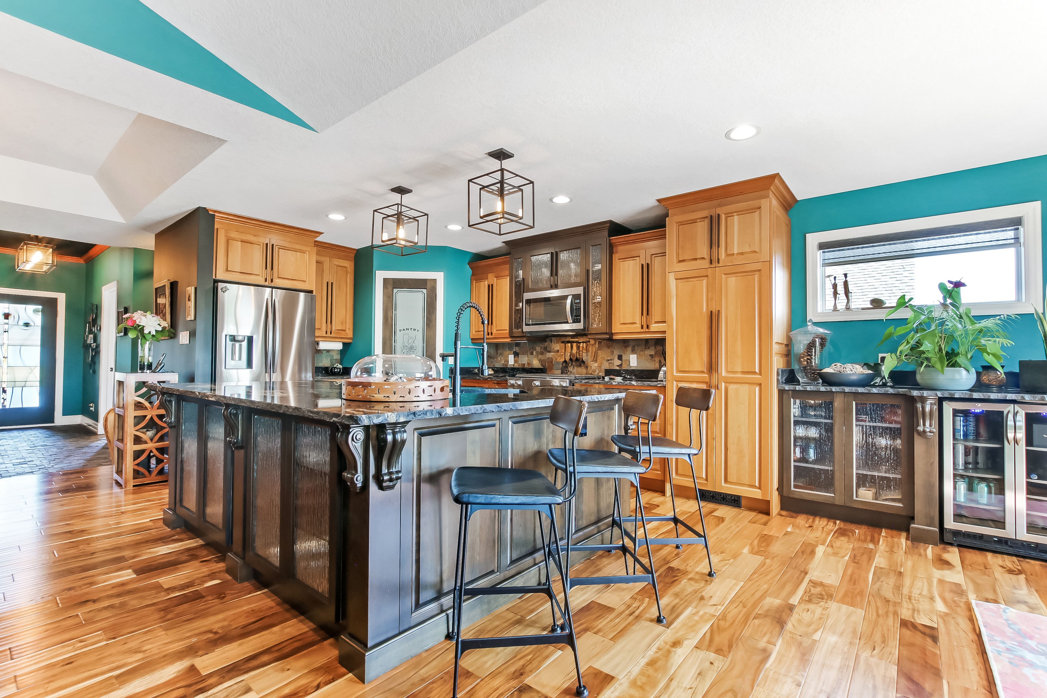 This beautiful bungalow located in shaw valley is sure to impress. From the moment you see the home you will find that pride of ownership is evident throughout and no expenses has been spared. Starting from the curb you will find a stone exterior with custom wrought iron railings, professional landscaping, concrete laneway with parking for 4 and a heated double attached garage with basement access. Entering the home you will find a welcoming foyer with views through the home. Off to the side is the guest bedroom, a custom full bathroom, and laundry room with access to the garage. The main living space at the back of the home is ideal for day to day living with a thoughtful layout consisting of a perfect sized dining room, large kitchen with cherry cabinets, walnut hardwood floors, live edge quartz countertops, oversized island, corner pantry and ss appliances. The breakfast nook has a serving hutch with a bar fridge and access to the patio. The bright living room has views of the backyard and green space with a gas fireplace as the focal point. Finishing off the main floor is the primary bedroom that offers ample space, tray ceilings, an ensuite with shower and a walk-in closet. The lower level continues to impress with potential for an in-law suite, a family room big enough for two entertaining areas, large egress windows in every room, a third bedroom with the potential to add a fourth bedroom, full bathroom with walk-in shower and a custom vanity. The backyard is an entertainers dream with a stamped patio spanning the back of the home with a canopy, outdoor cooking area, mature landscaping, a walkway to the shed and the side of the home and west facing views of the green space and park.