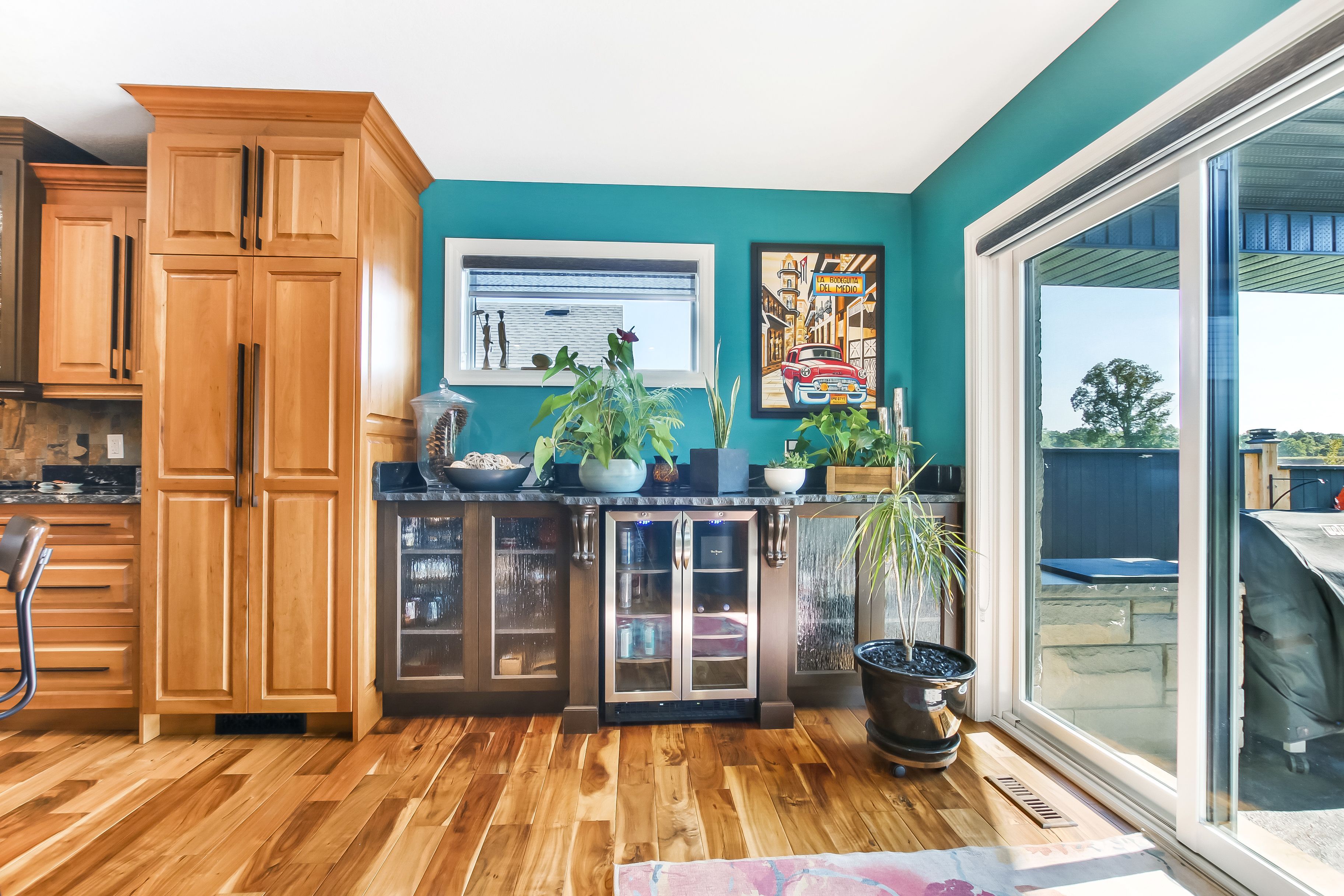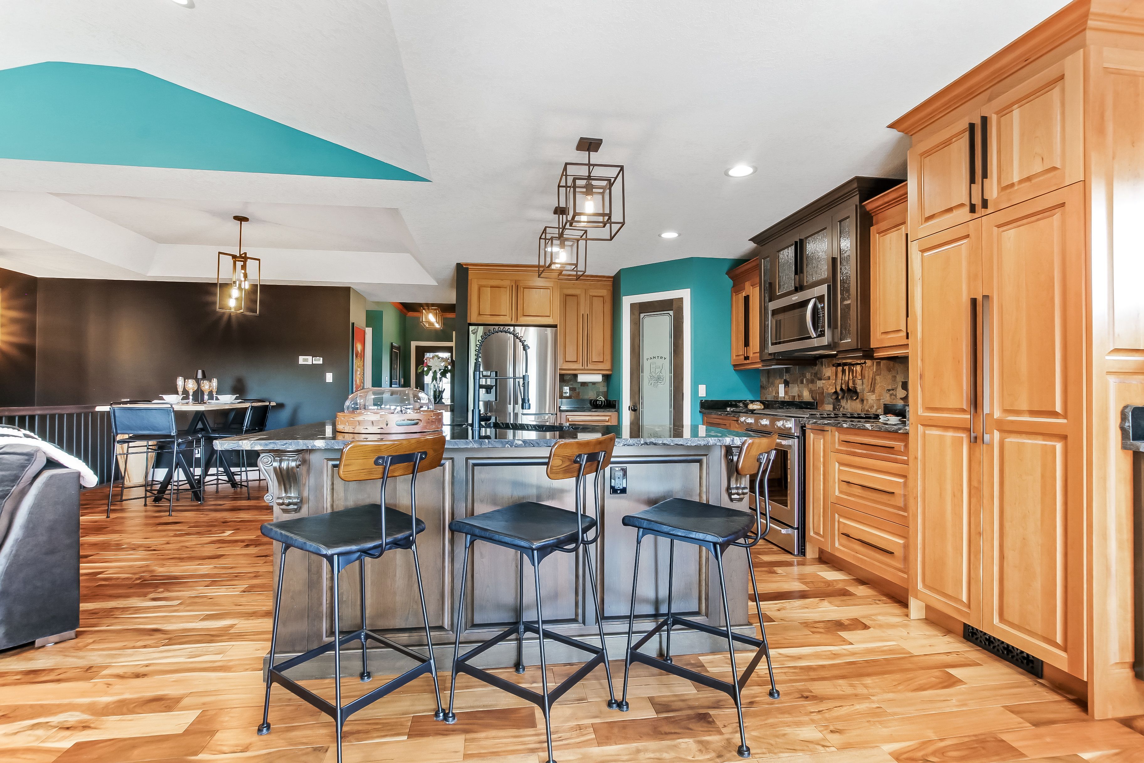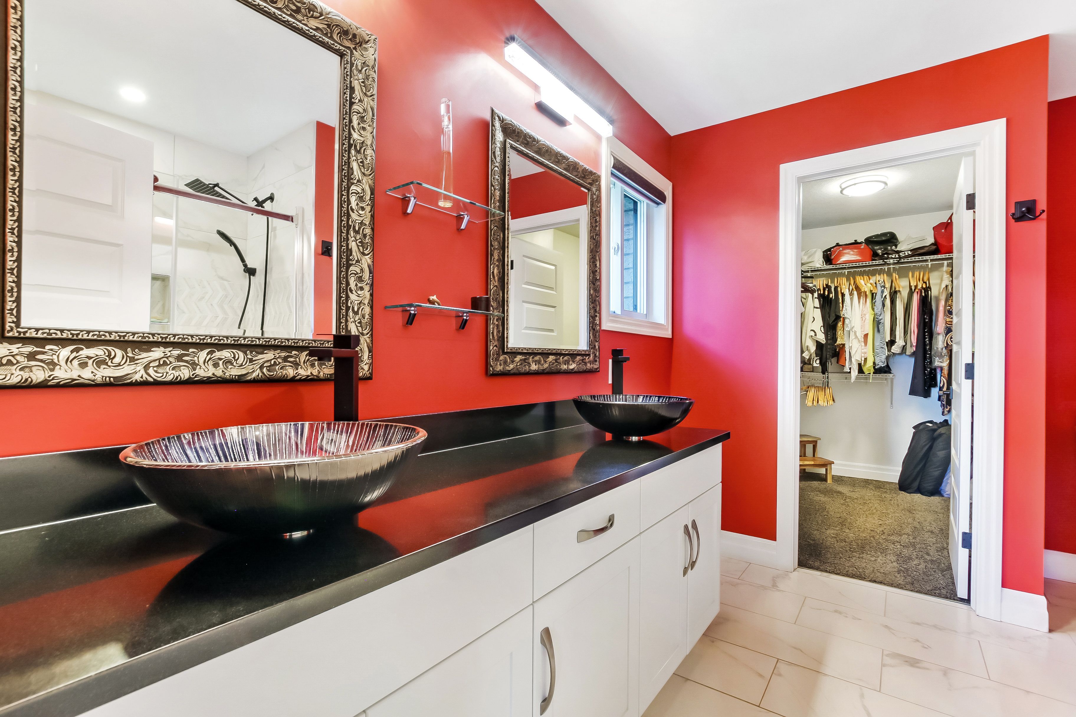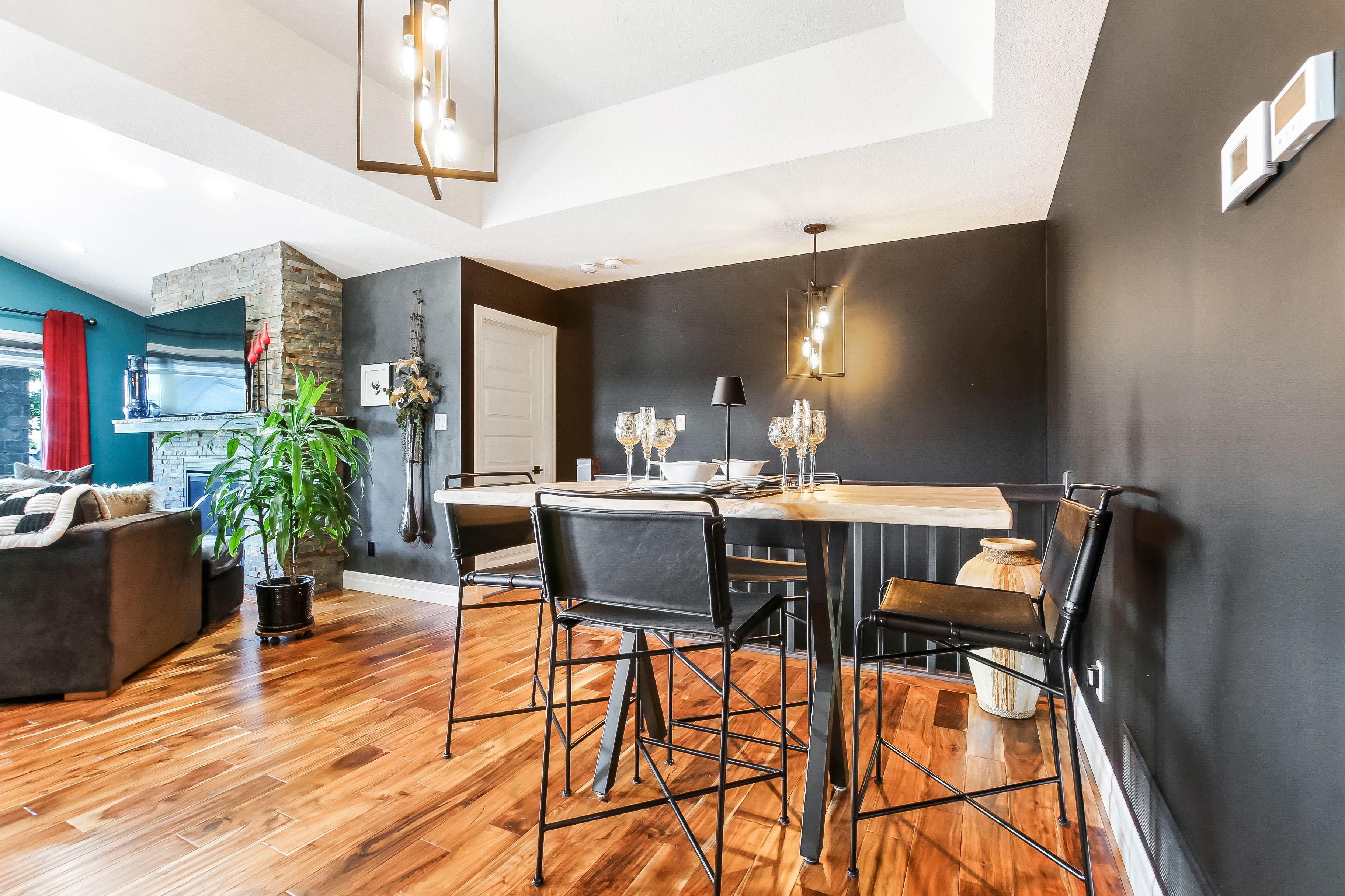 This beautiful bungalow located in shaw valley is sure to impress. From the moment you see the home you will find that pride of ownership is evident throughout and no expenses has been spared. Starting from the curb you will find a stone exterior with custom wrought iron railings, professional landscaping, concrete laneway with parking for 4 and a heated double attached garage with basement access. Entering the home you will find a welcoming foyer with views through the home. Off to the side is the guest bedroom, a custom full bathroom, and laundry room with access to the garage. The main living space at the back of the home is ideal for day to day living with a thoughtful layout consisting of a perfect sized dining room, large kitchen with cherry cabinets, walnut hardwood floors, live edge quartz countertops, oversized island, corner pantry and ss appliances. The breakfast nook has a serving hutch with a bar fridge and access to the patio. The bright living room has views of the backyard and green space with a gas fireplace as the focal point. Finishing off the main floor is the primary bedroom that offers ample space, tray ceilings, an ensuite with shower and a walk-in closet. The lower level continues to impress with potential for an in-law suite, a family room big enough for two entertaining areas, large egress windows in every room, a third bedroom with the potential to add a fourth bedroom, full bathroom with walk-in shower and a custom vanity. The backyard is an entertainers dream with a stamped patio spanning the back of the home with a canopy, outdoor cooking area, mature landscaping, a walkway to the shed and the side of the home and west facing views of the green space and park.