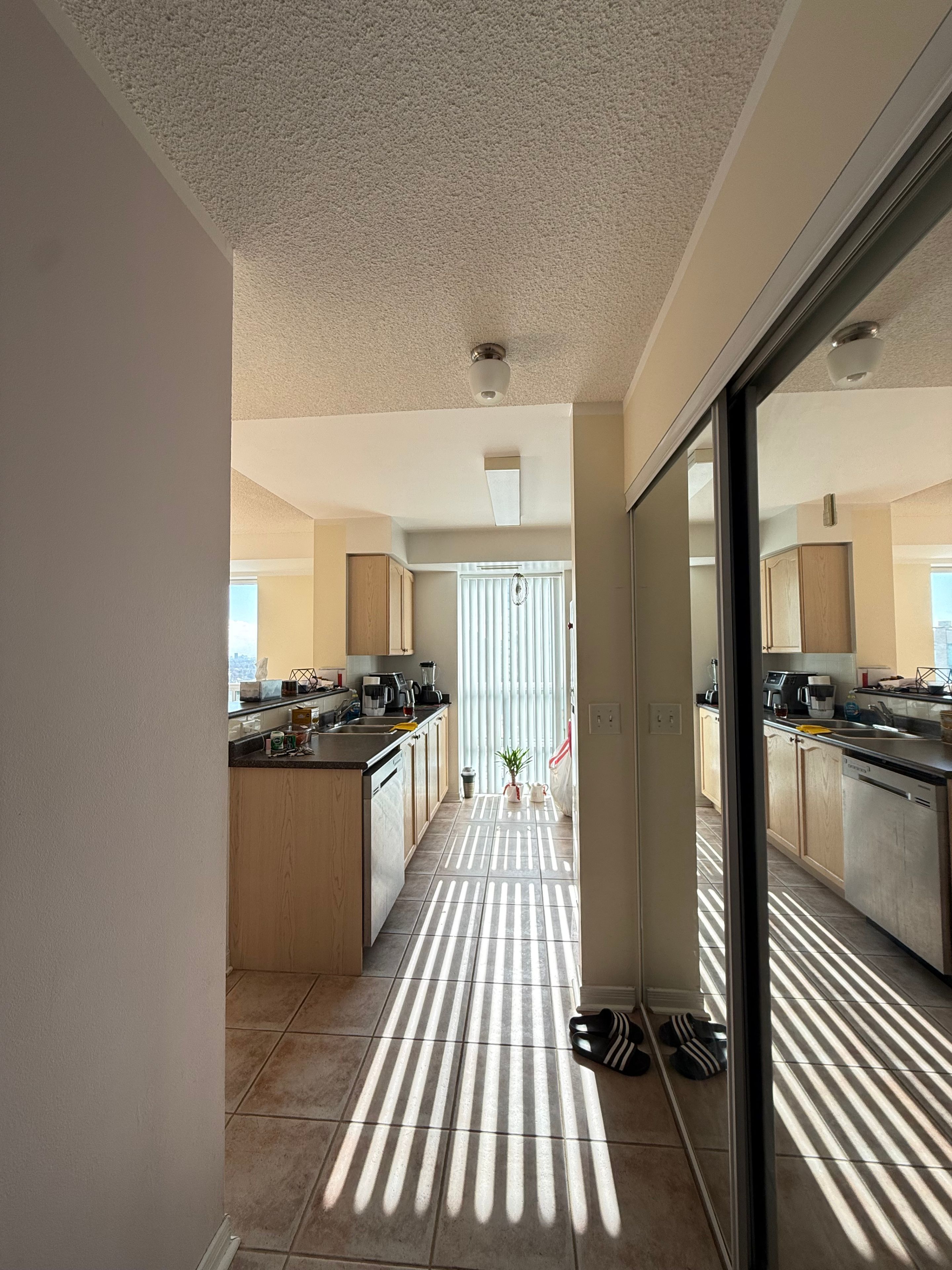 Se corner 1 bedroom unit on higher floor, bright & spacious, minutes to subway station, restaurants, and supermarkets. 24 hour security gated house. 1 parking & 1 storage locker included. Maintenance fee include all utilities.