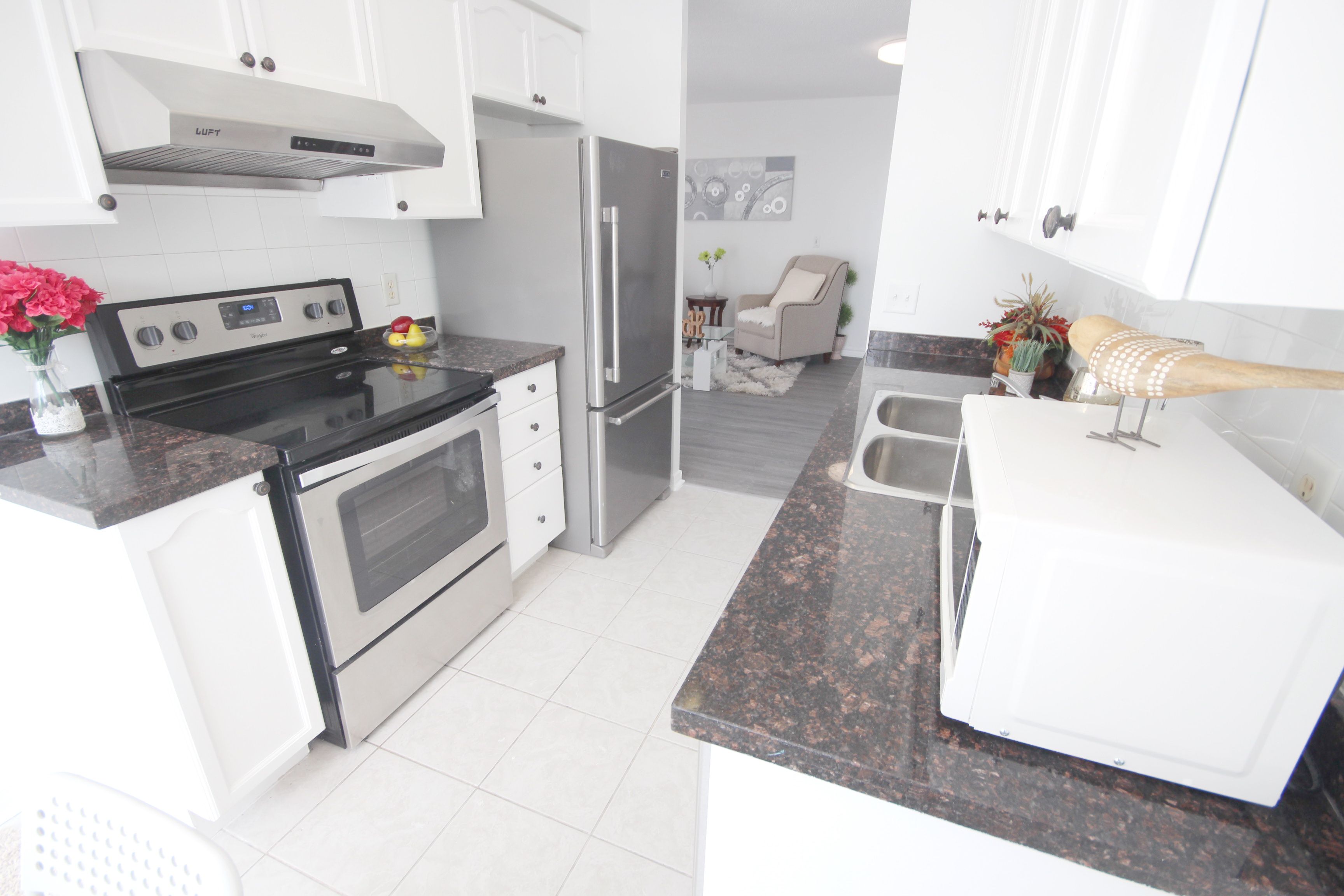 • Corner unit providing a functional split layout and eat-in kitchen.