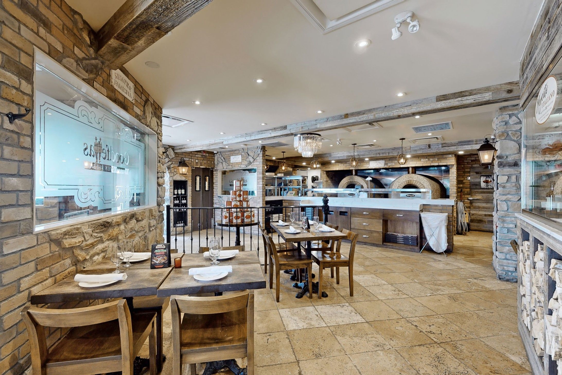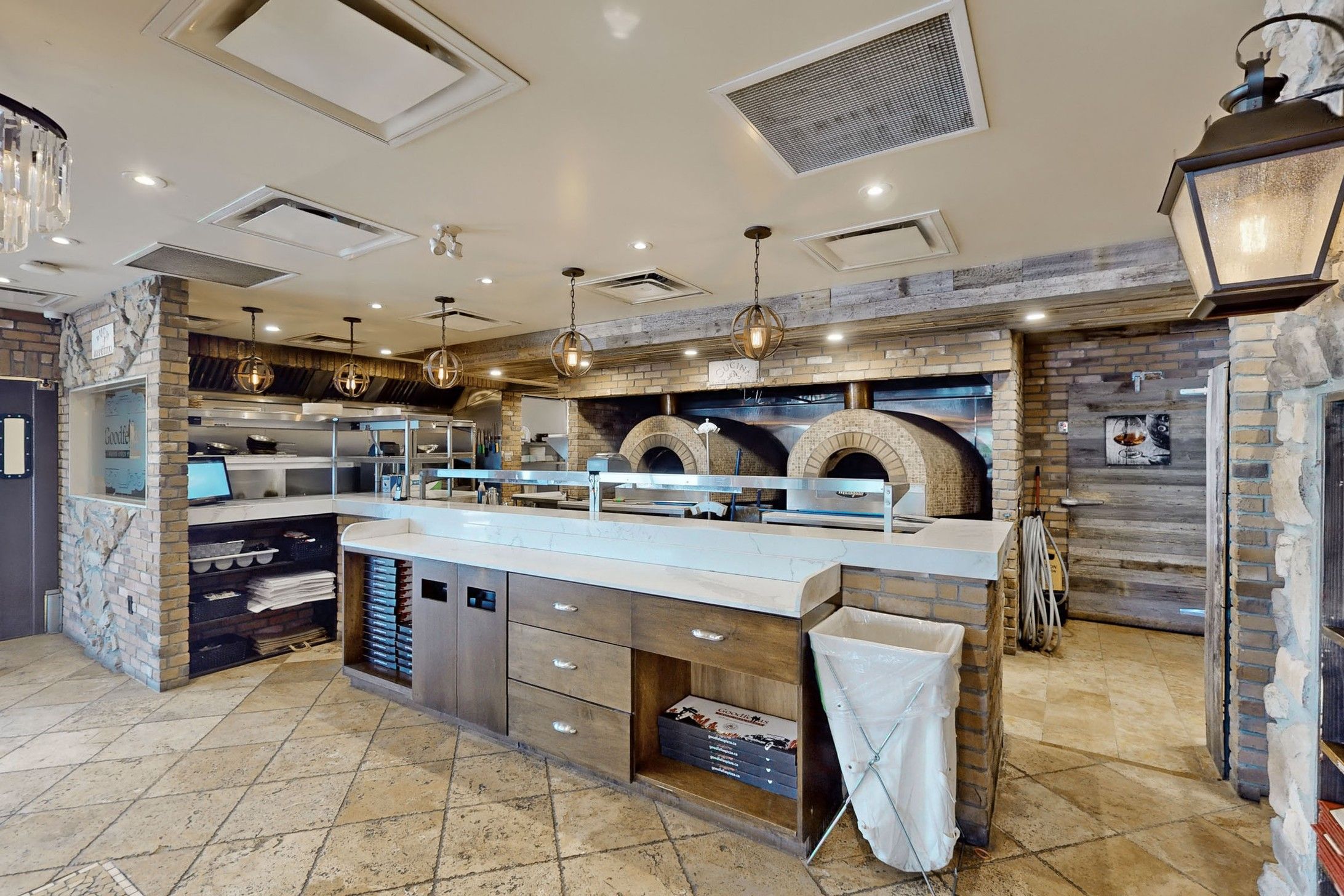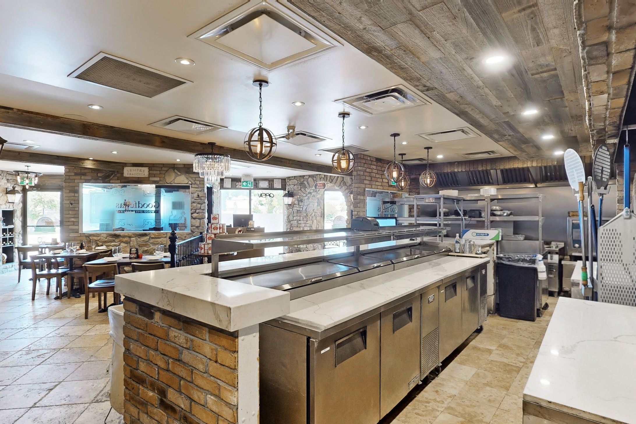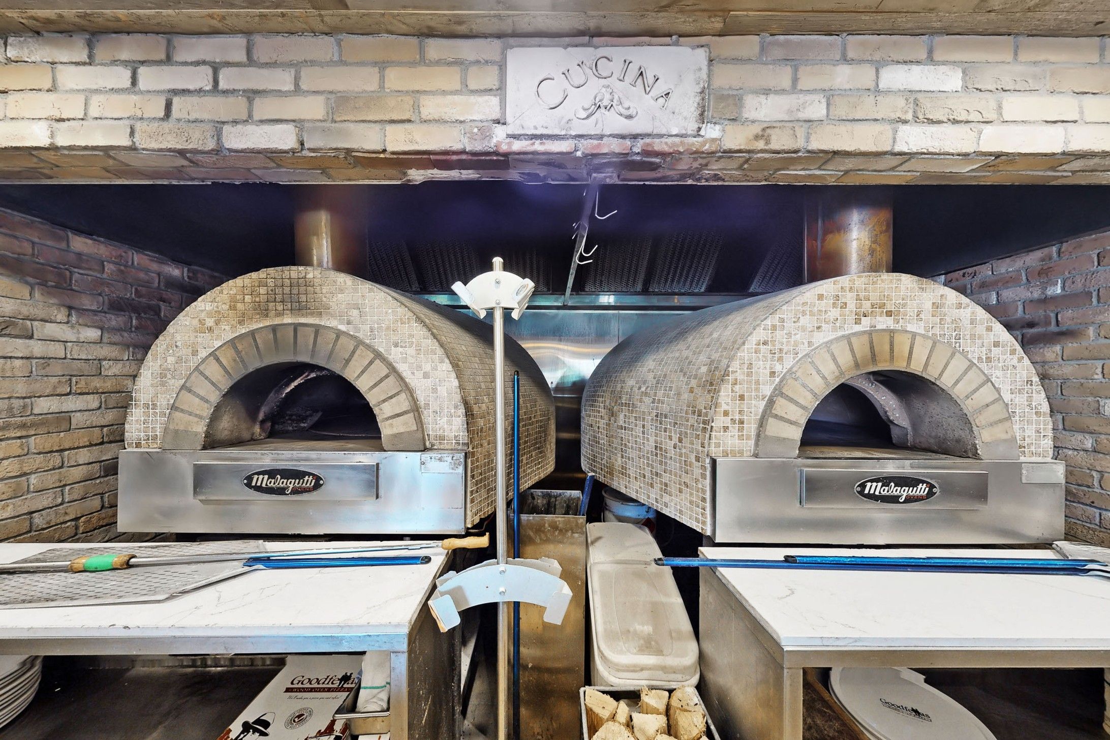 • Well-equipped kitchen with wood-burning pizza ovens and ample utilities.