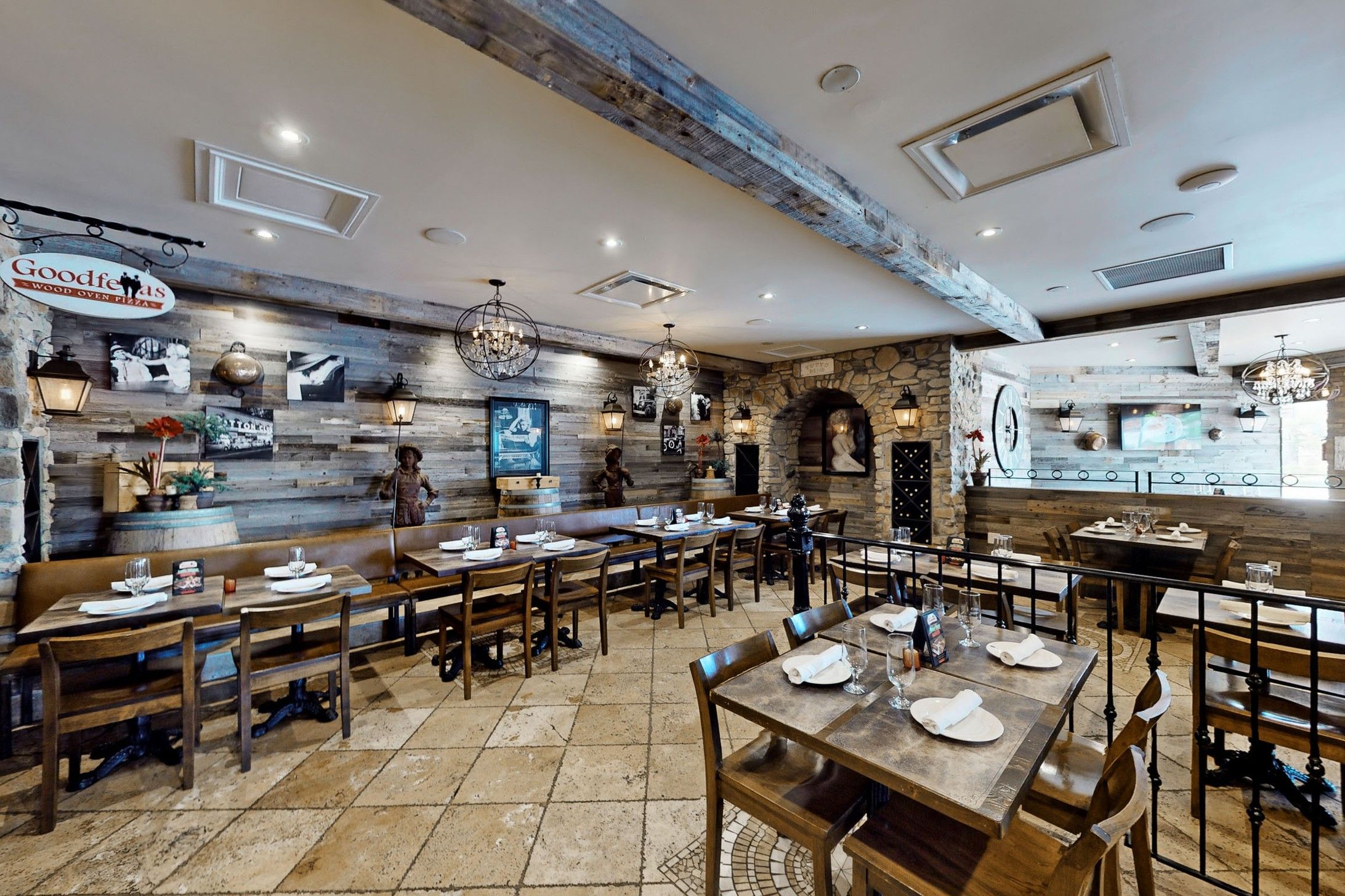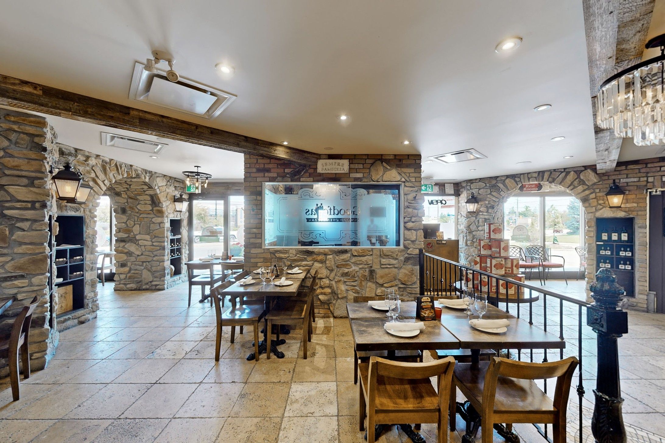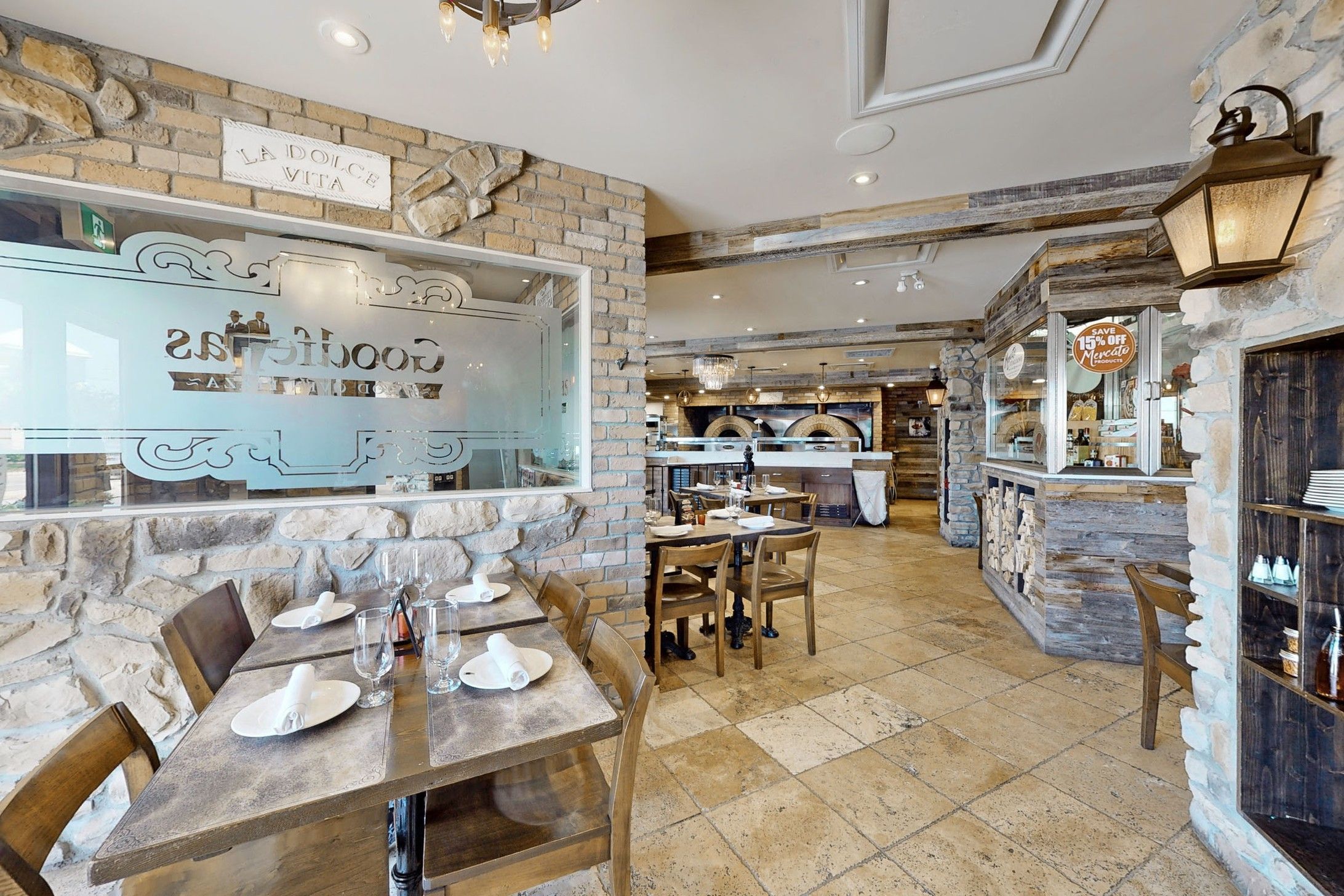 • Well-equipped kitchen with wood-burning pizza ovens and ample utilities.