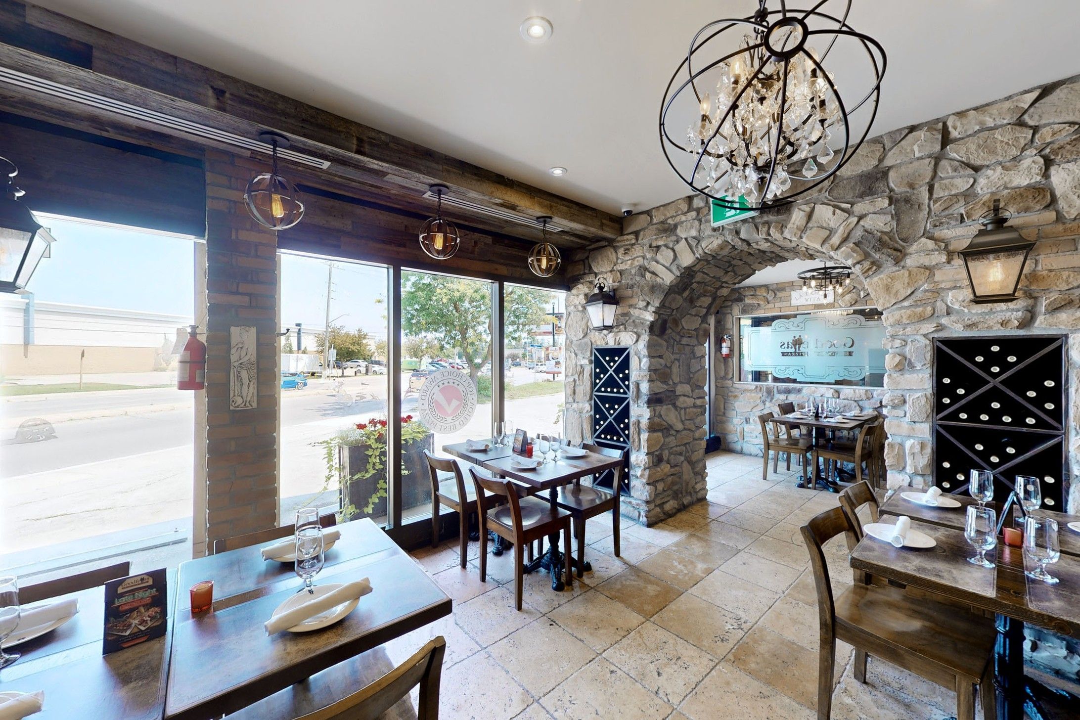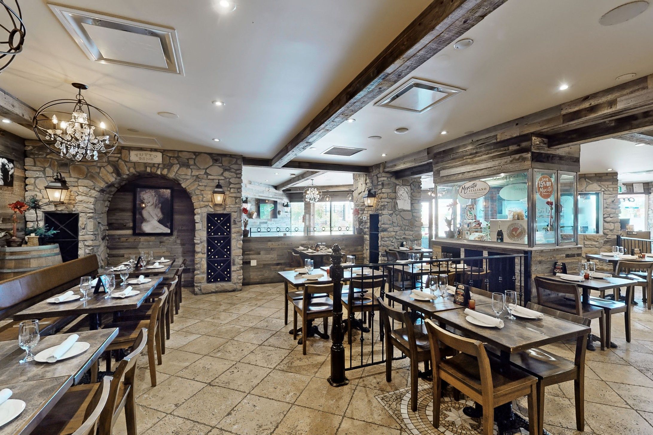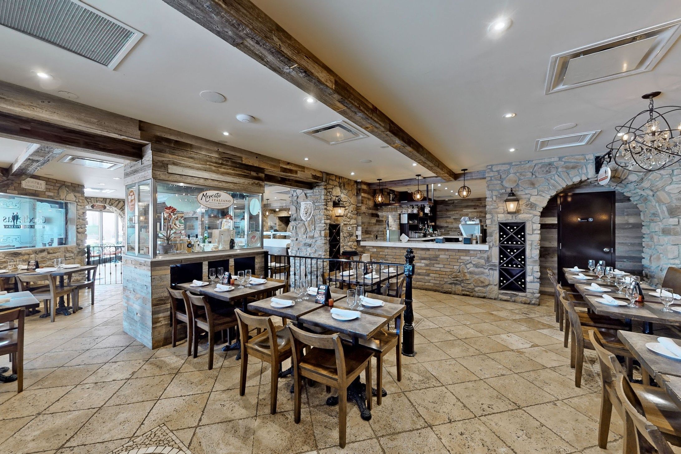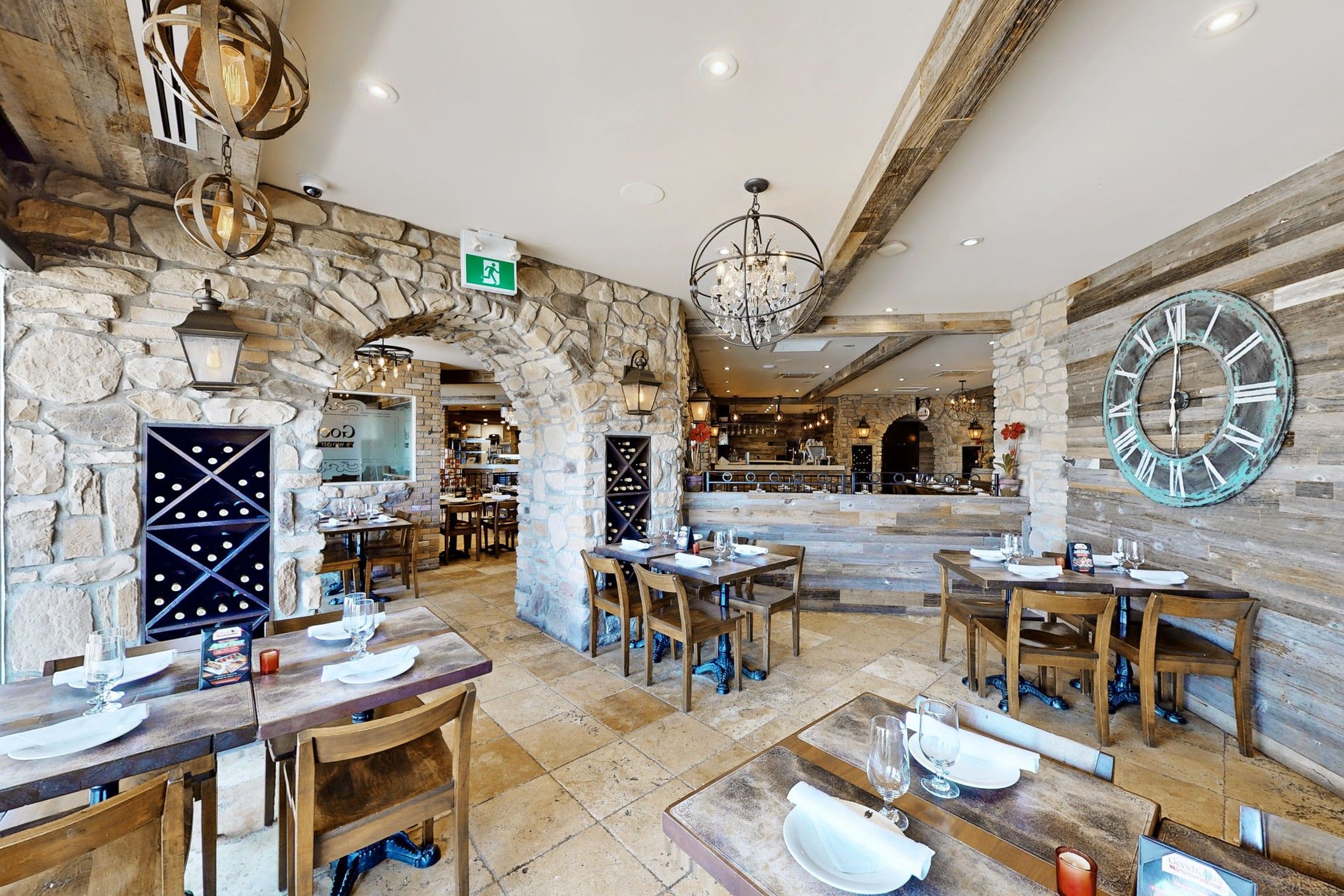 • Well-equipped kitchen with wood-burning pizza ovens and ample utilities.
