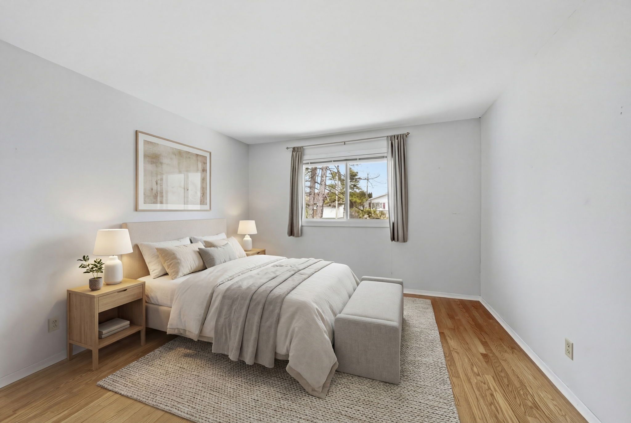 • Bright interior with three bedrooms and two full bathrooms.