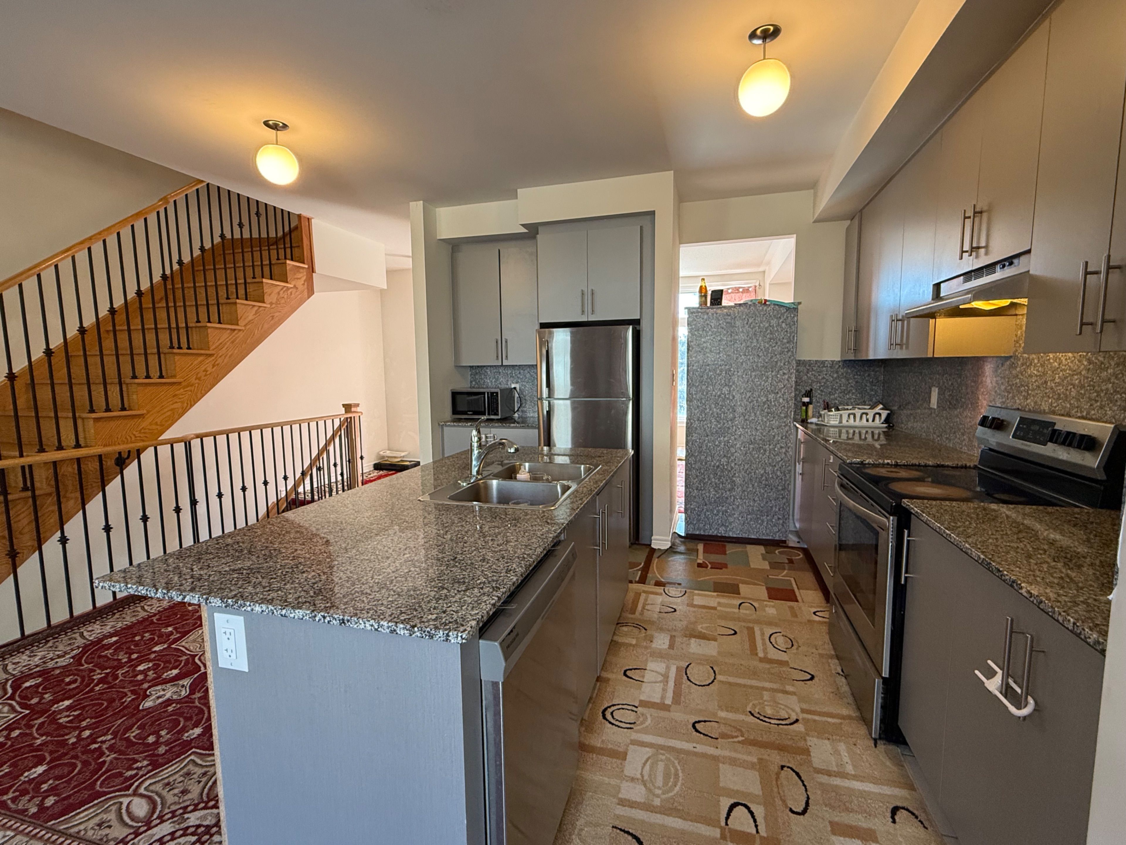 Bright and spacious townhouse with private driveway this beautifully maintained townhouse offers a generous living space ideal for large families. Featuring five spacious bedrooms and five bathrooms, this home provides comfort and convenience throughout. Enjoy a separate dining room with a server area, and a modern kitchen equipped with granite countertops, a center island, and a stylish backsplash. The property includes two separate laundry areas, adding exceptional functionality. Set on a ravine lot, it offers a peaceful outdoor setting perfect for summer enjoyment. Conveniently located just minutes from eldorado park, schools, shopping, transit, and all essential amenities. The entire house is available for lease.