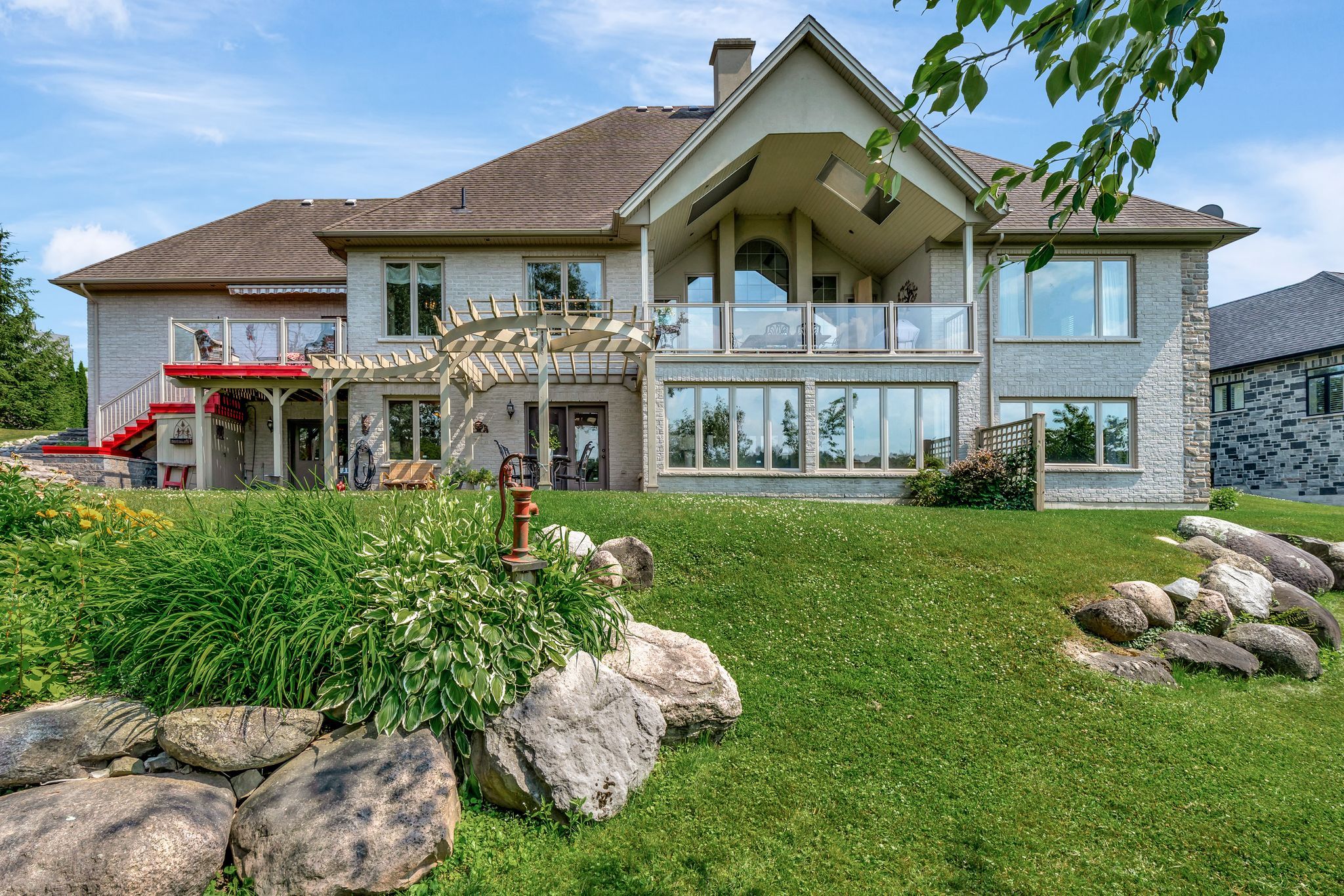 Tucked into one of brightons most desirable areas, this custom-built executive home spans a rare double lot and is designed for living large, with every detail thoughtfully considered. Totalling over 5000 sqft of finished living space with 4 beds, 4 baths, it is truly one of a kind! Step onto the interlock walkway and into a grand foyer that opens into a stunning great room, where soaring ceilings, gas fireplace w/ dimmer light, hardwood flooring, and cherry built-in entertainment wall set the tone for the homes elegant flow. The main level offers seamless transitions between the formal living room, dining room complete with walkout to the elevated, covered deck overlooking protected land and an executive maple & cherry kitchen outfitted w/ granite counters, centre island, gas cooktop, double wall ovens, walk-in pantry & breakfast nook w/ second walkout to the uncovered, upper deck w/ retractable awning. The serene primary suite featuring a water closet, glass walk-in shower, whirlpool tub, custom double-sink vanity & spacious walk-in closet has you relaxing in luxury. A main-floor office w/ extensive built-ins overlooks professionally landscaped grounds w/ 7 zone, in-ground sprinkler system for easy maintenance, while the main floor laundry room is what dreams are made of. A wide staircase leads to the lower level which is fully finished w/ walkout! Expanding your living space and lending to a in-law suite or any hobby, this level features a kitchenette, 3 bedrooms, 2pc powder room & 4pc bath, cozy 4-season sunroom currently used as a second office, plus a cedar closet, cold cellar, & a walkout workshop built under the garage. Heated floors run throughout the entire lower level, as well as inside the oversized 2-car garage w/ inside entry. Built with quality & care, the features are extensive. Just minutes from brightons amenities, trails, and the shores of presquile bay, this is a home where quality and natural beauty meet- ready for your next chapter.