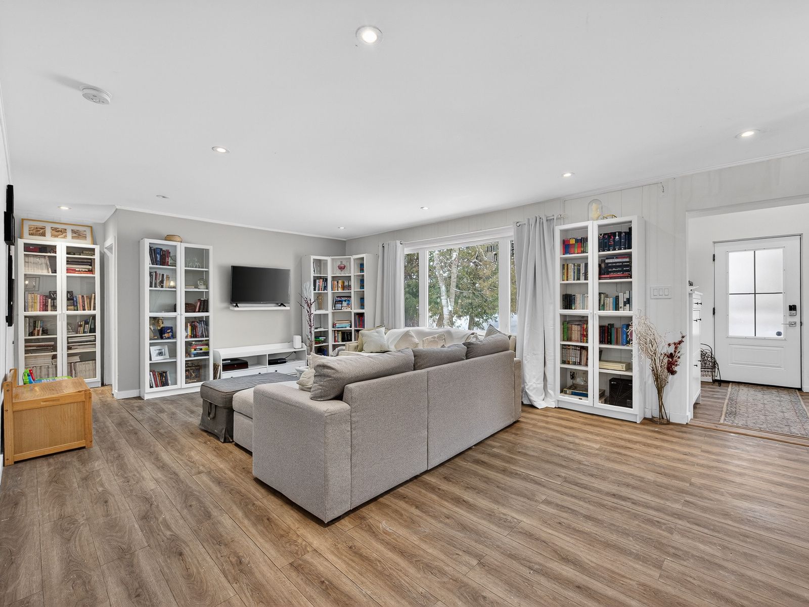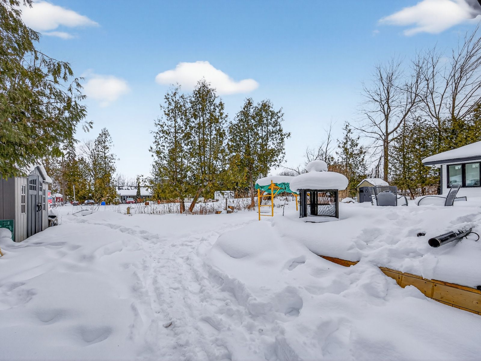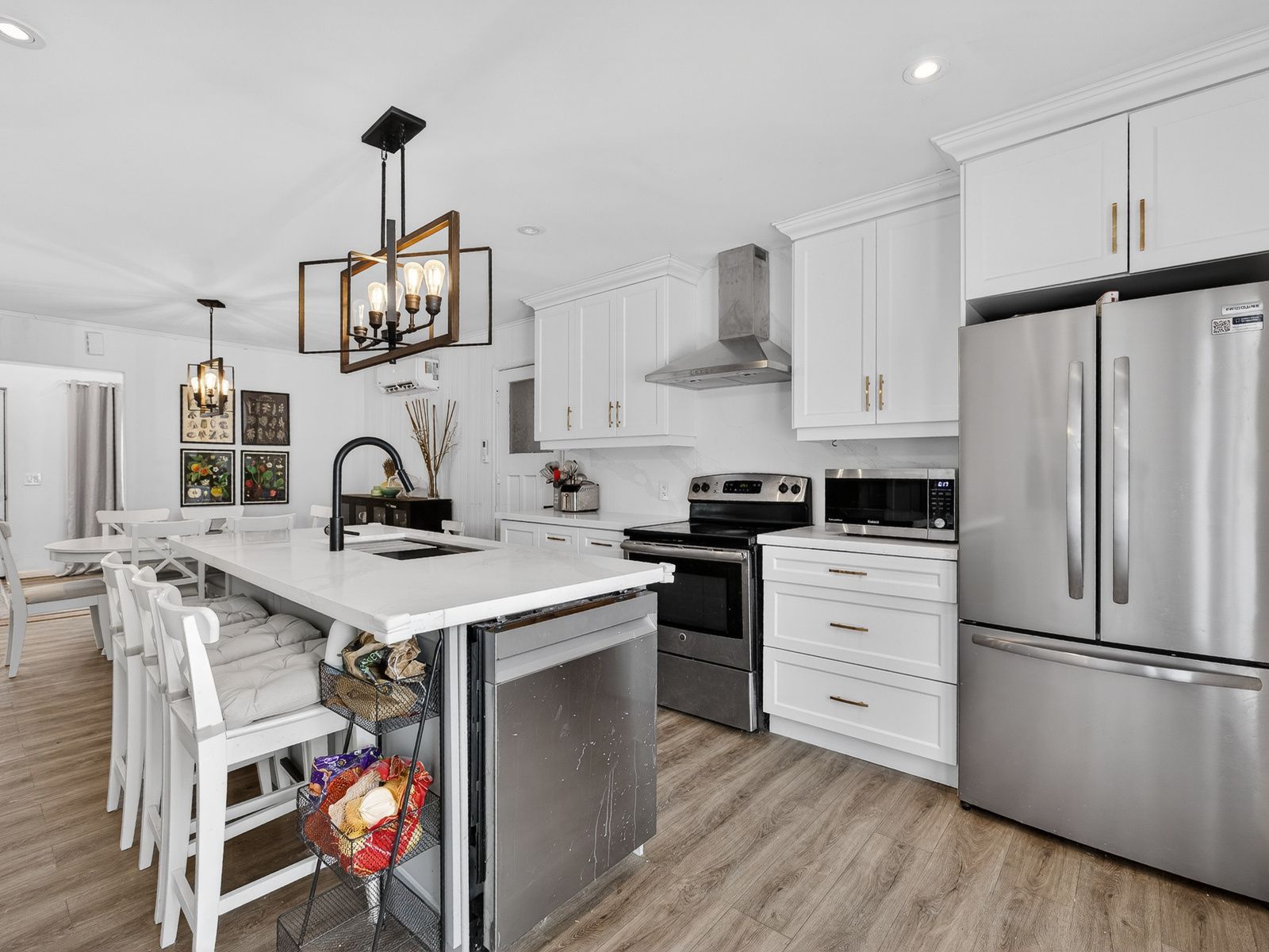 Fabulous 3-bedroom two bathroom home, completely gutted and beautifully renovated throughout. Featuring a modern quartz kitchen with seamless backsplash, double undermount sink, built-in dishwasher, glass-top stove, and a one-year-old fridge/freezer. Thoughtfully designed with built-in spice drawers, a charming coffee nook, and integrated garbage and recycling bins. Pot lights illuminate the home, complemented by large picture windows that fill the space with an abundance of natural light. Quality workmanship is evident throughout. The primary bedroom is surrounded by numerous windows, creating a bright and airy retreat. The spacious bathroom offers an oversized tub, delivering spa-like comfort and relaxation. Step outside to a captivating backyard oasis with an expansive deck - perfect for entertaining or unwinding. Situated on a quiet dead-end street, just minutes to the corner park, lake simcoe beaches, marina, pines of georgina golf course, schools, and all amenities. This little shangri-la truly feels like home.