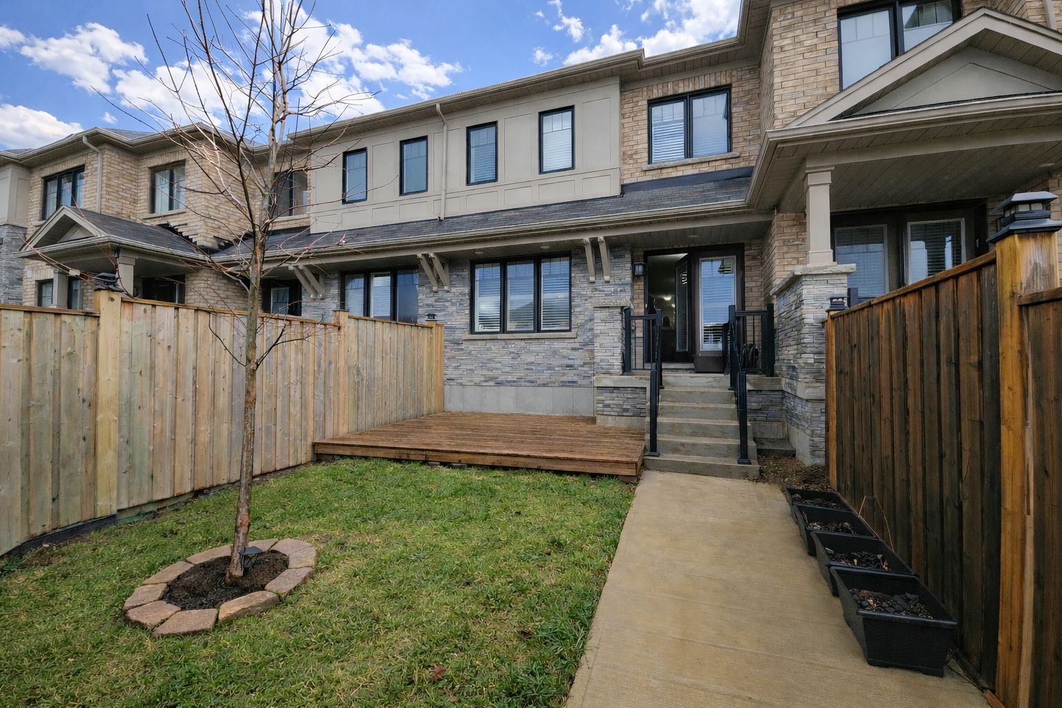 • Fully fenced backyard with a deck for barbecues and children's play.