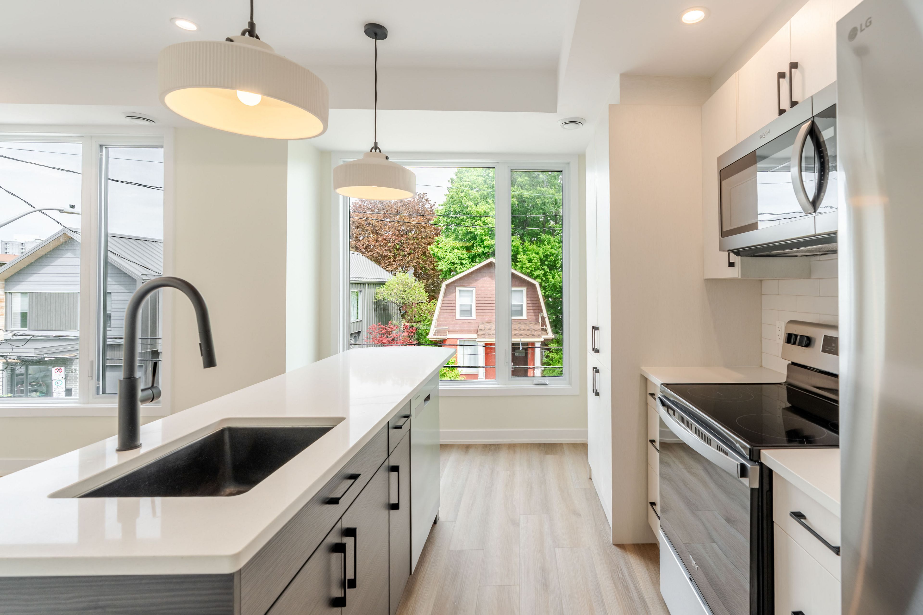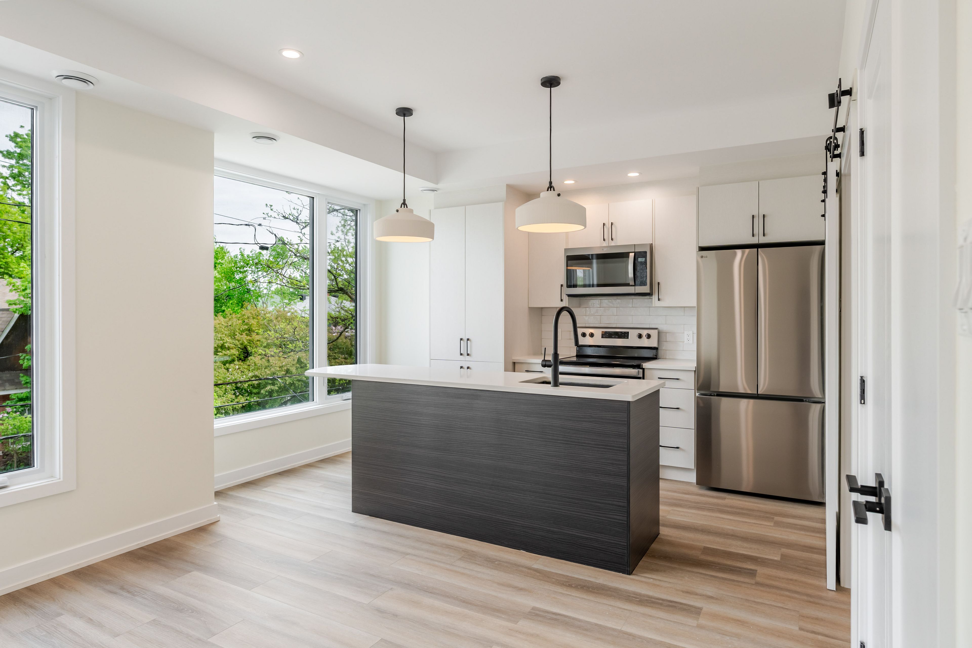 Welcome to 22 sims avenue, where comfort and convenience come together in this bright and well-designed brand new 1-bedroom, 1-bath apartment offering 465 sq. Ft. Of modern living space. Thoughtfully finished with quartz countertops, upscale flooring, and a fully equipped kitchen, this unit also features the added convenience of in-unit laundry and a dishwasher-everything you need for easy, everyday living. Stay comfortable in every season with efficient gas heating and central air conditioning. Covered bike parking is available on-site, with additional street parking close by. Ideally situated in a walkable neighbourhood, you'll be just moments from local shops, restaurants, parks, and public transit-perfect for those who love a connected urban lifestyle. Water is included in the rent; tenants are responsible for heat, electricity, and internet. A stylish, low-maintenance space in a prime location-your next chapter starts here. Street parking permit available for an additional cost. Offering first month's rent free!