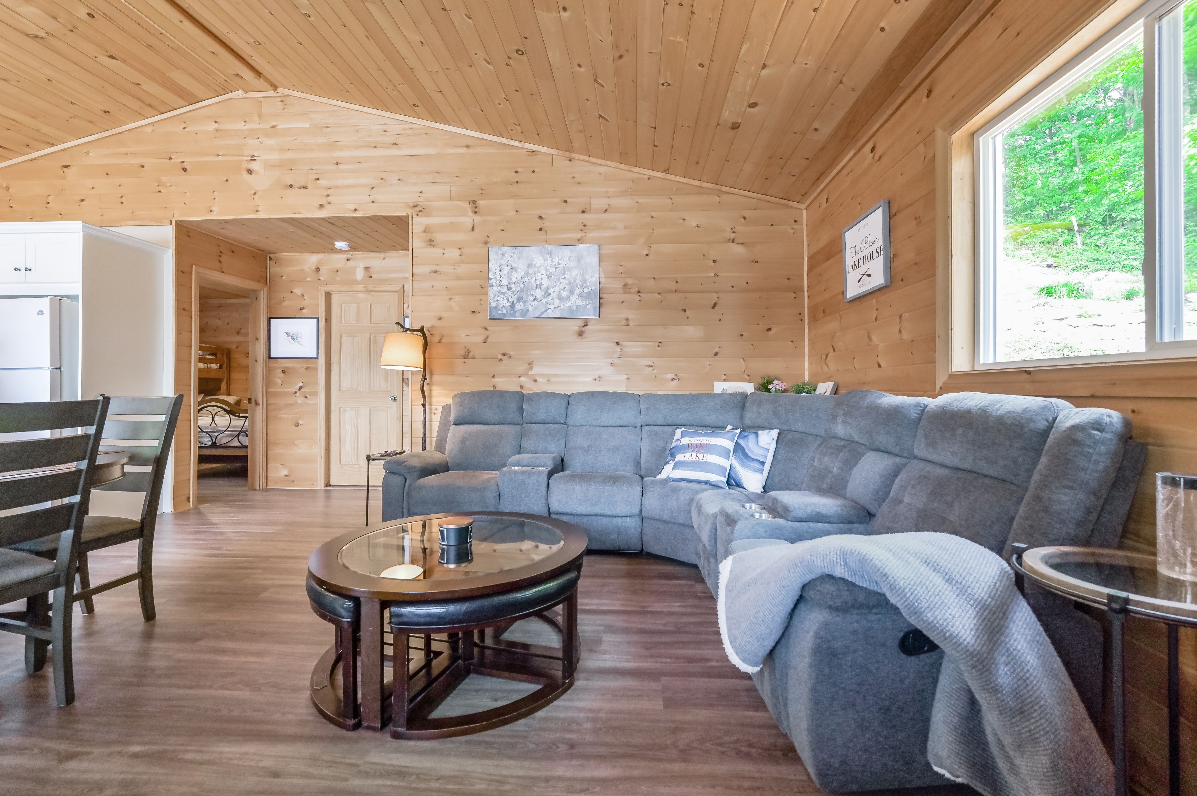 • Open-concept living area features vaulted ceilings and ample natural light.