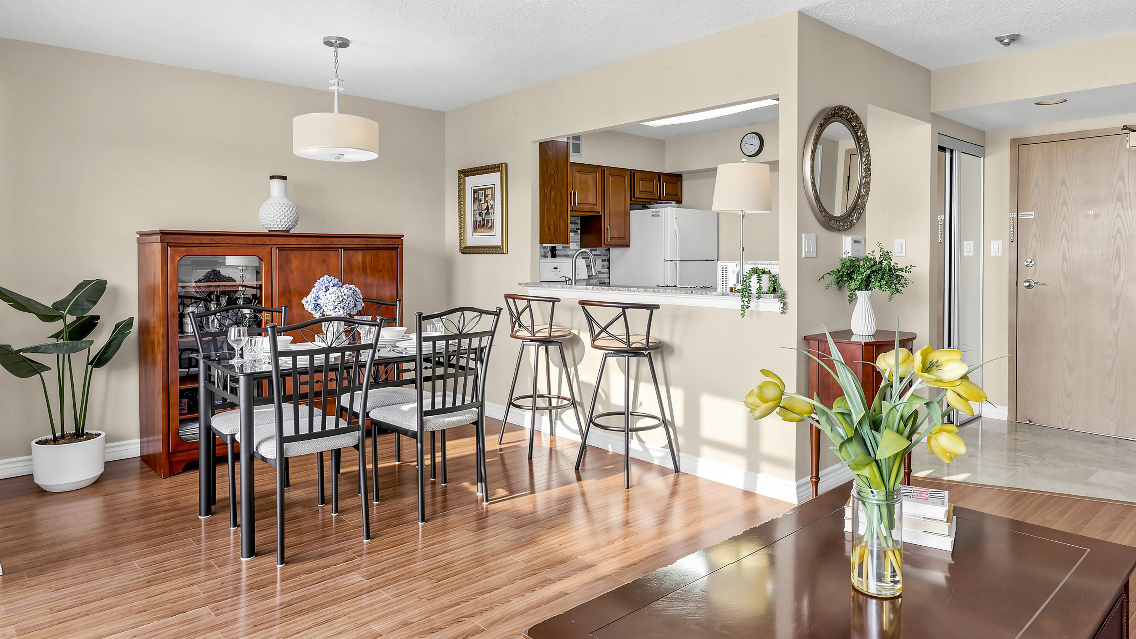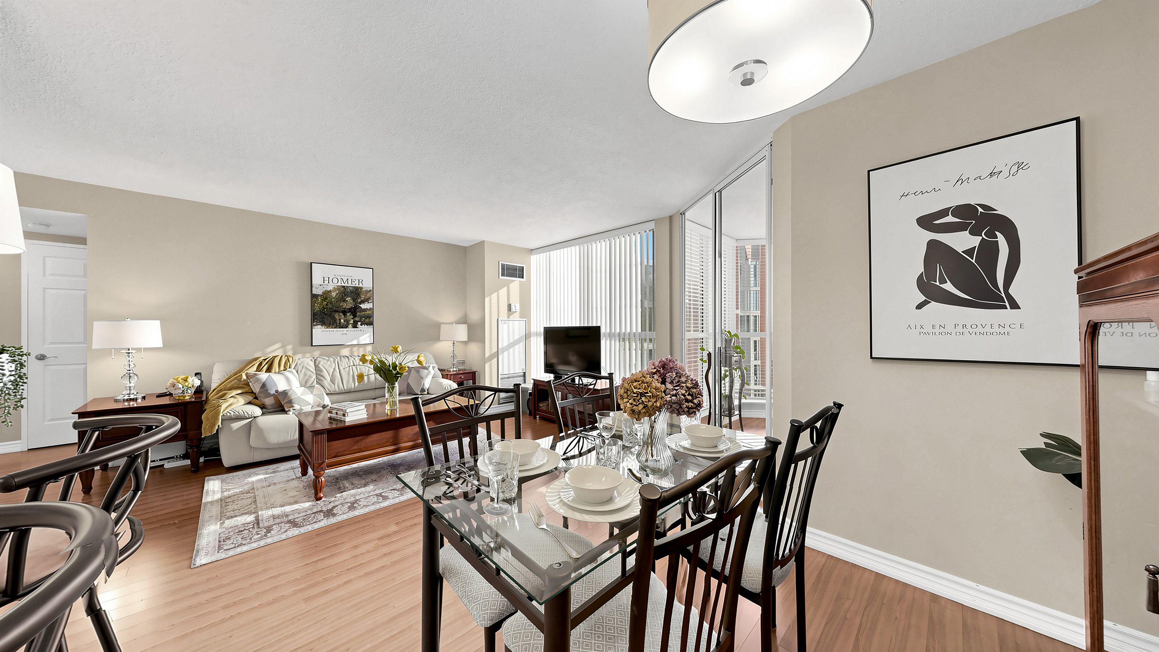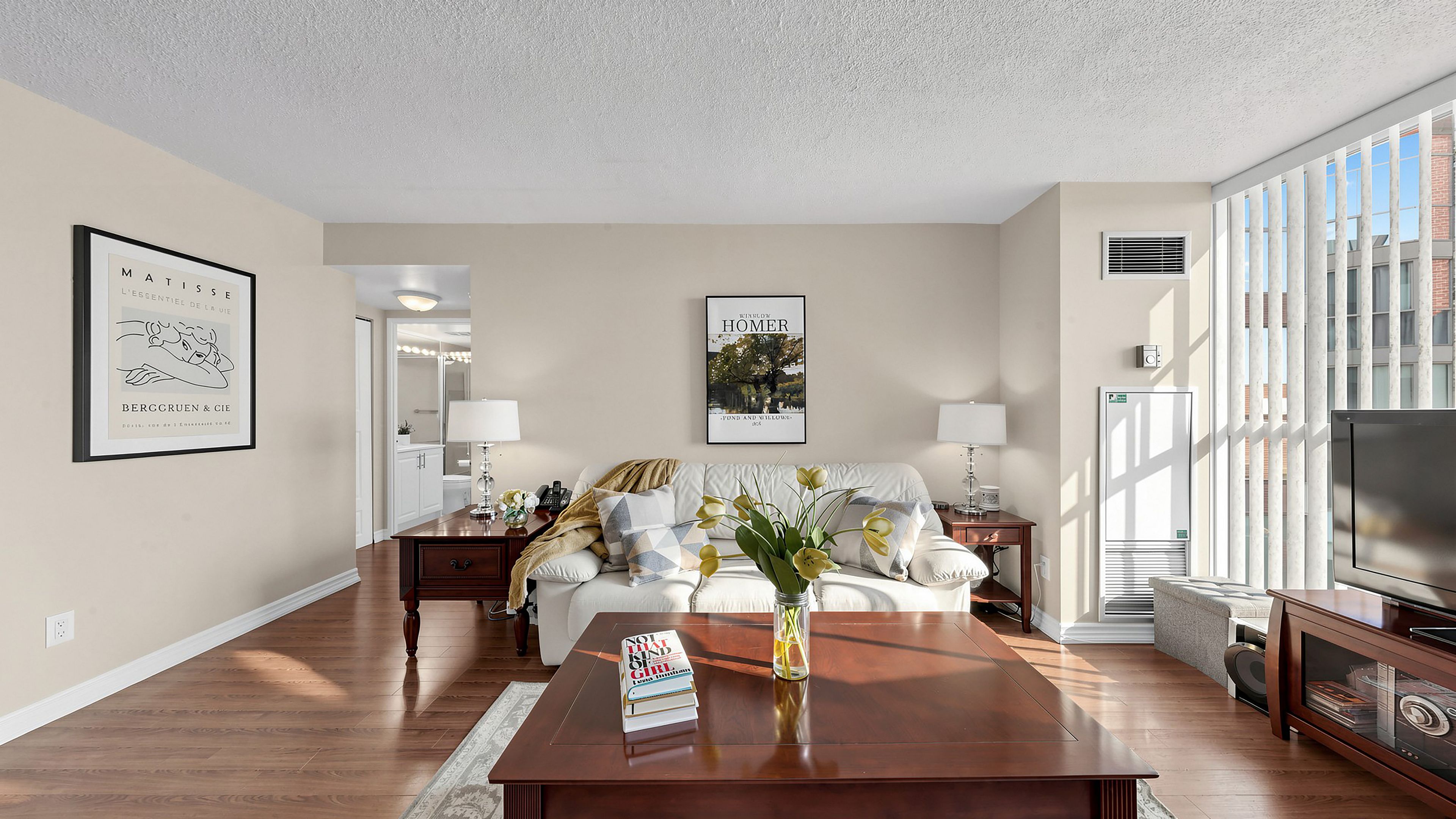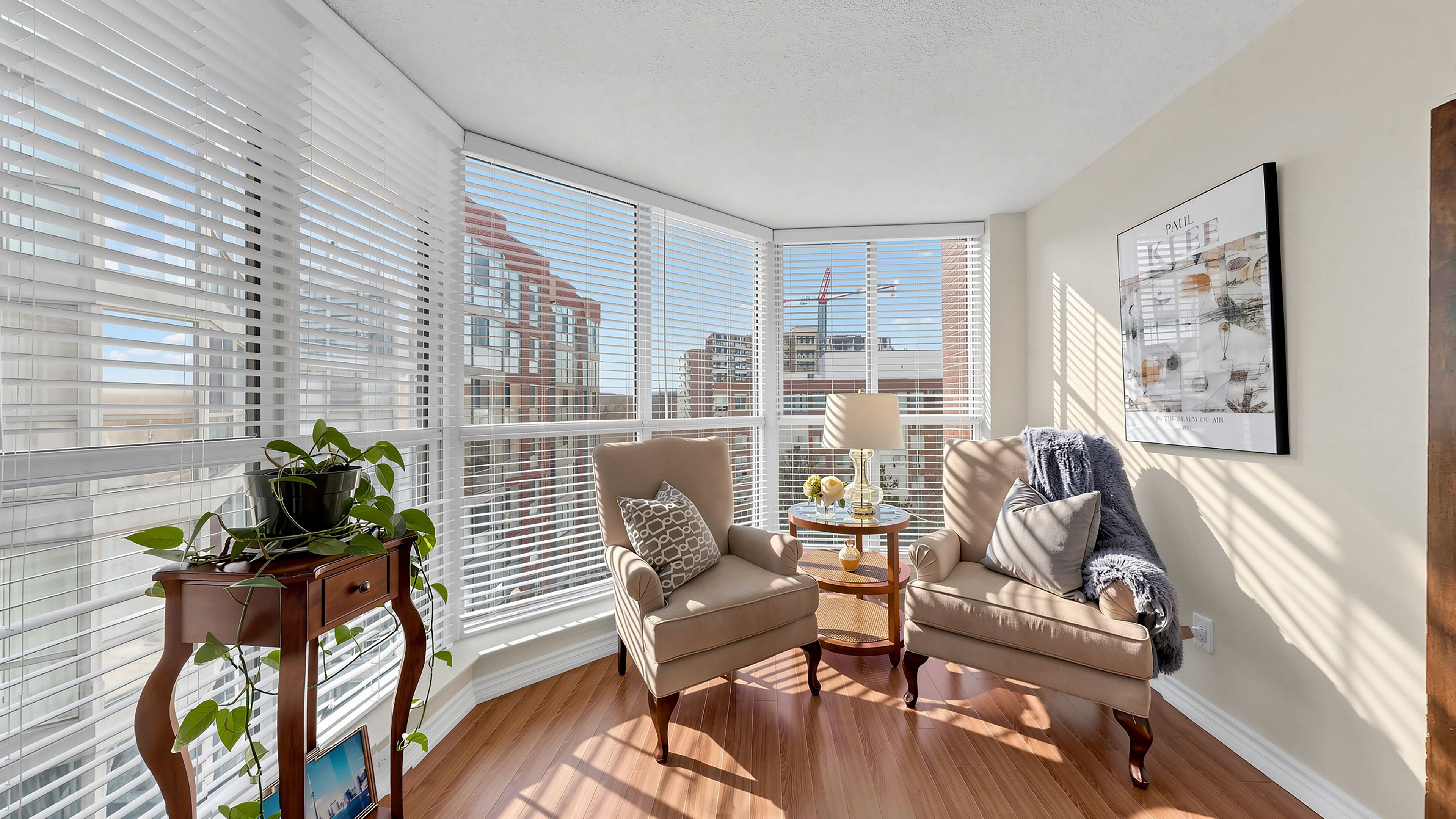 Behind the gates of south kingsway village, where the city softens into trees and quiet paths, this luminous 1+1 bed, 2 bath suite offers a refined balance of design, comfort, & calm in toronto's coveted high park-swansea neighbourhood. Large northeast-facing windows fill the open living and dining area with light, creating a polished, inviting space. The layout flows effortlessly, with rooms that feel considered - perfect for slow mornings with coffee, lively evenings, or quiet moments at day's end. A sleek breakfast bar anchors the kitchen, with ample cabinetry for storage and entertaining. Just beyond, a glass-wrapped den with sliding doors & floor-to-ceiling windows offers generous space that can rival a bedroom. *rare in the building* this suite offers smart storage: entry storage room, a secondary closet near bedroom, & a walk-in closet with extra wardrobe in the primary bedroom. The primary bedroom boasts plush broadloom, a 4-pc ensuite, w/i closet & a large window. Enjoy the convenience of ensuite laundry, 1 tandem parking spot, a large locker, & maintenance fees covering all utilities including high-speed internet & cable tv. Beyond the suite, south kingsway village unfolds like a private estate across a sprawling 400-acre oasis. Landscaped gardens, seating areas, a gazebo, secluded nooks, water features, & expansive bbq terraces create a seamless summer extension of the home. Enjoy resort-style amenities including an indoor pool, hot tub, gym, billiards, squash court, party lounge, guest suites, bike storage, visitor parking & 24-hour security. High park, grenadier pond & lake ontario trails are an 8-min walk. Ttc streetcar is at your door, gardiner 2 mins away, & mimico go station is 9 min drive. Shops, cafés, and markets of bloor west village are nearby. Perfect for families, downsizers, or anyone seeking a serene yet connected lifestyle - step into your next chapter at south kingsway village!