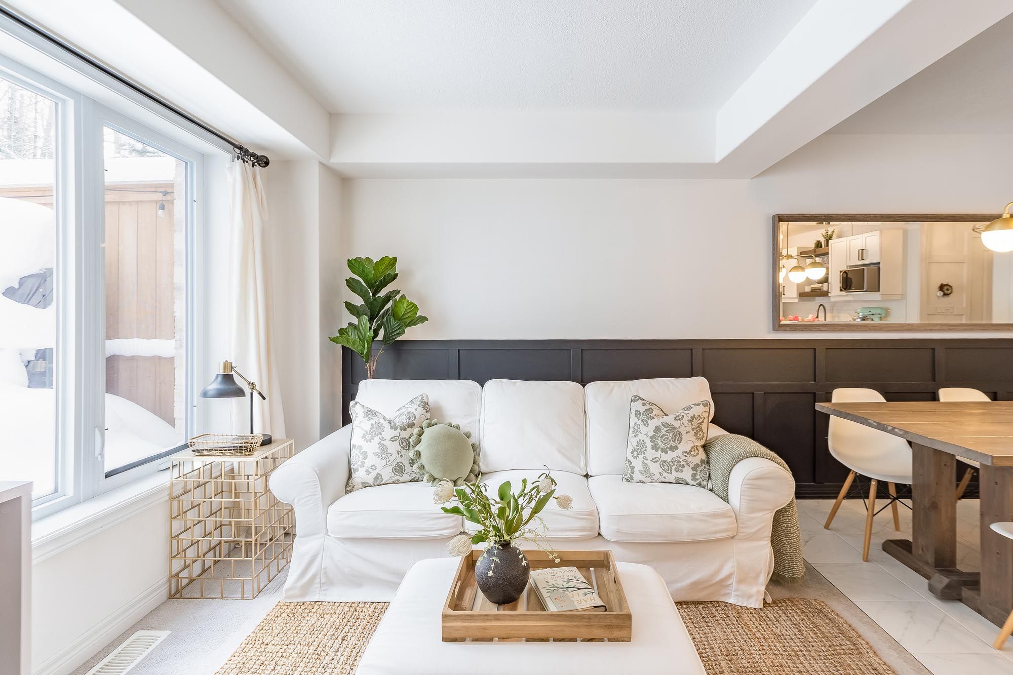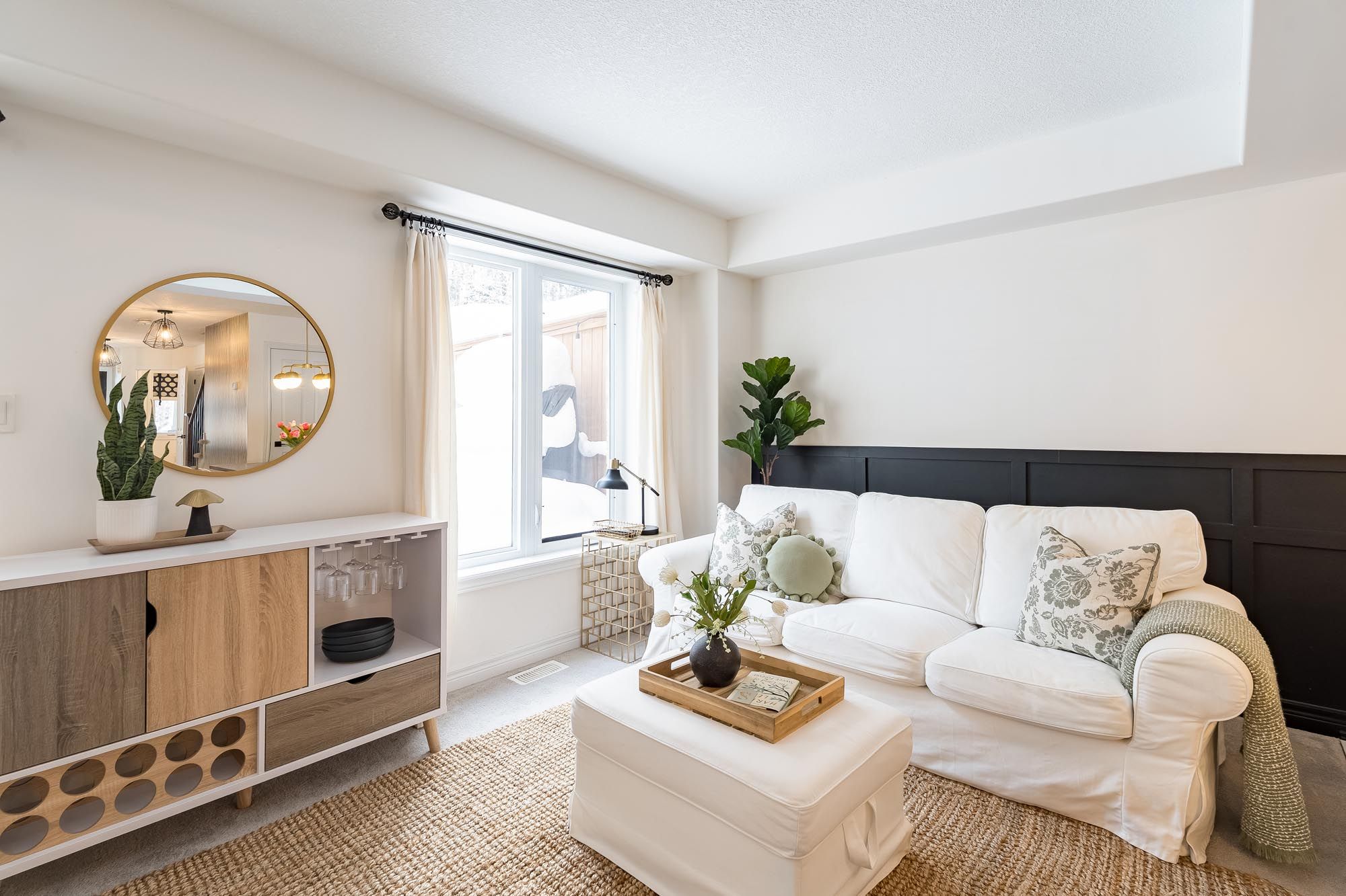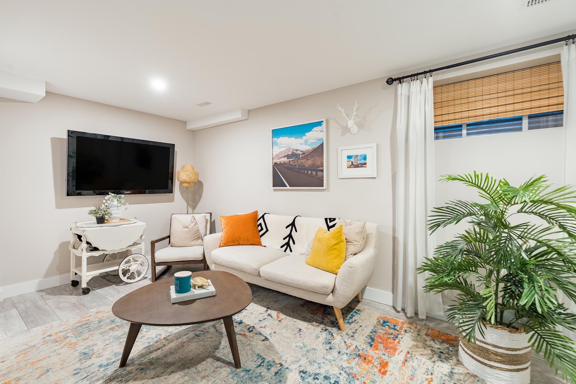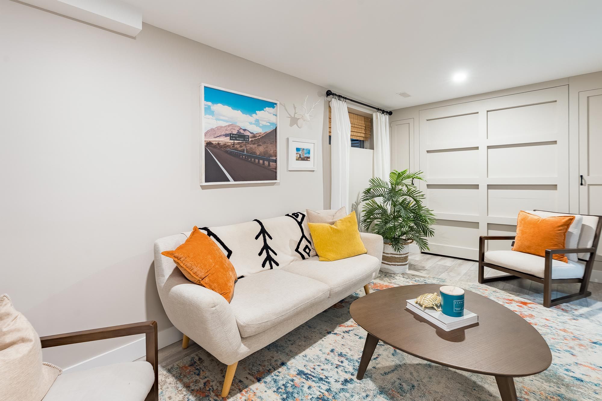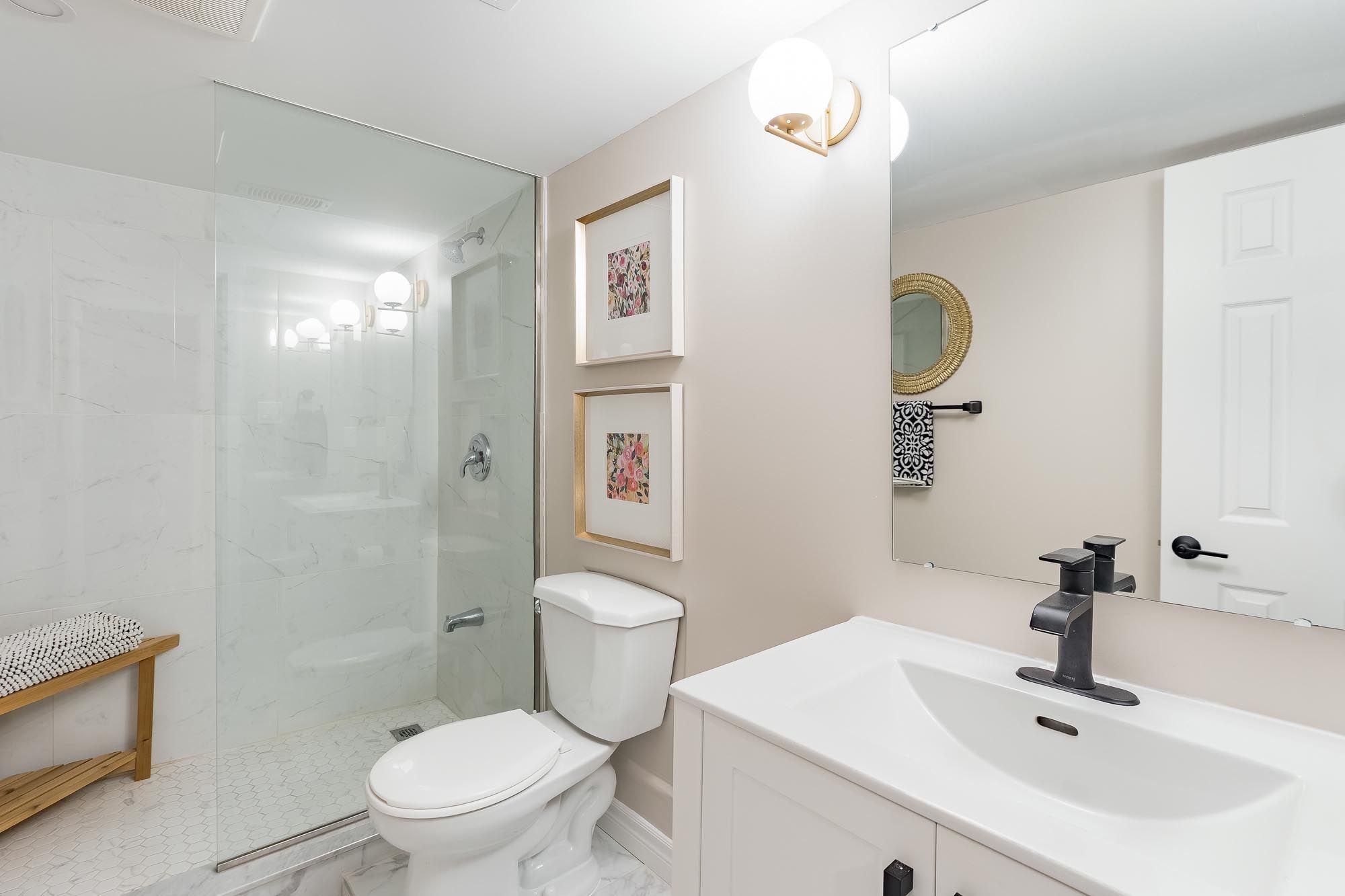 • Stylish basement with family room, murphy bed, and full bathroom.