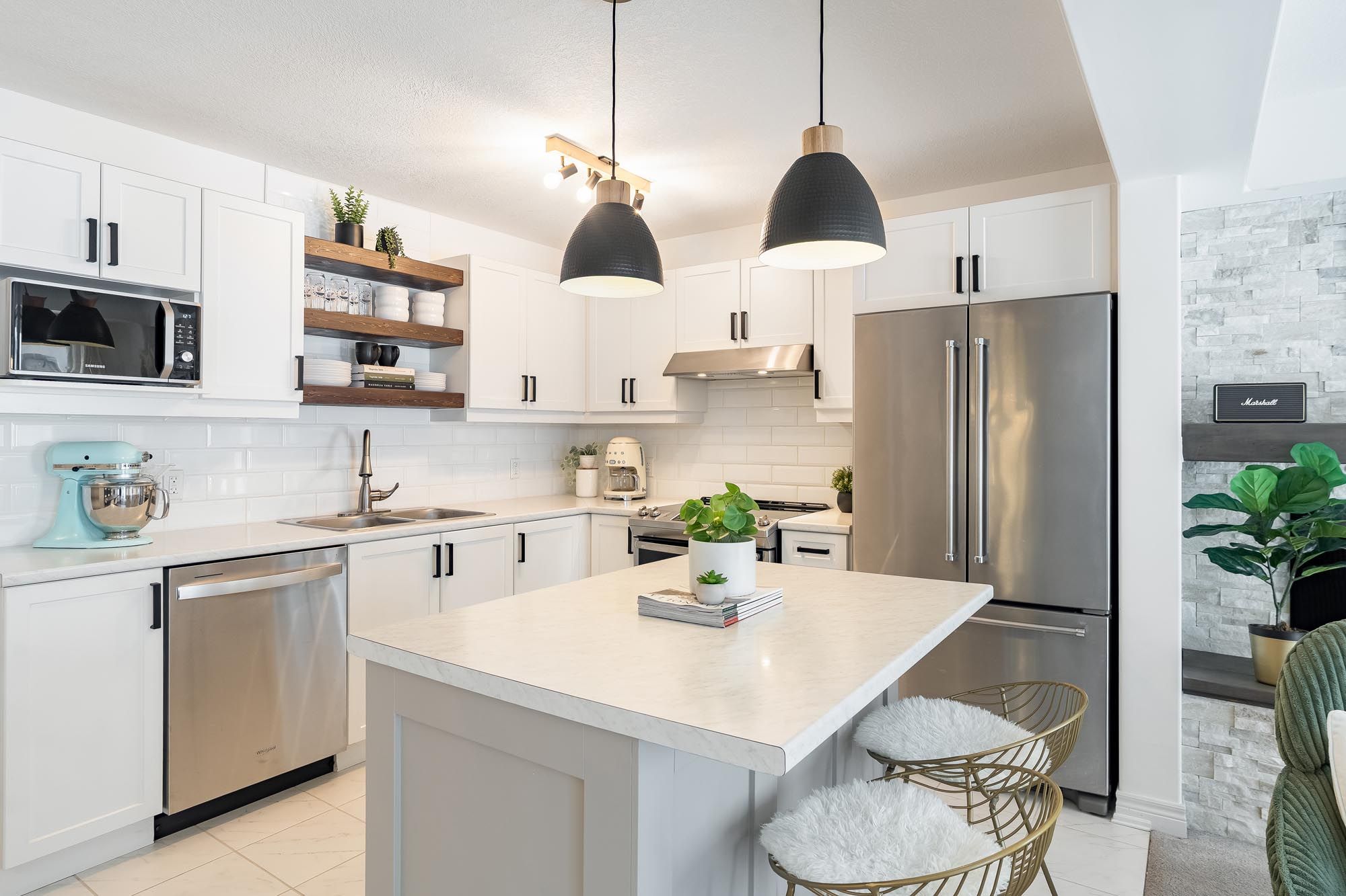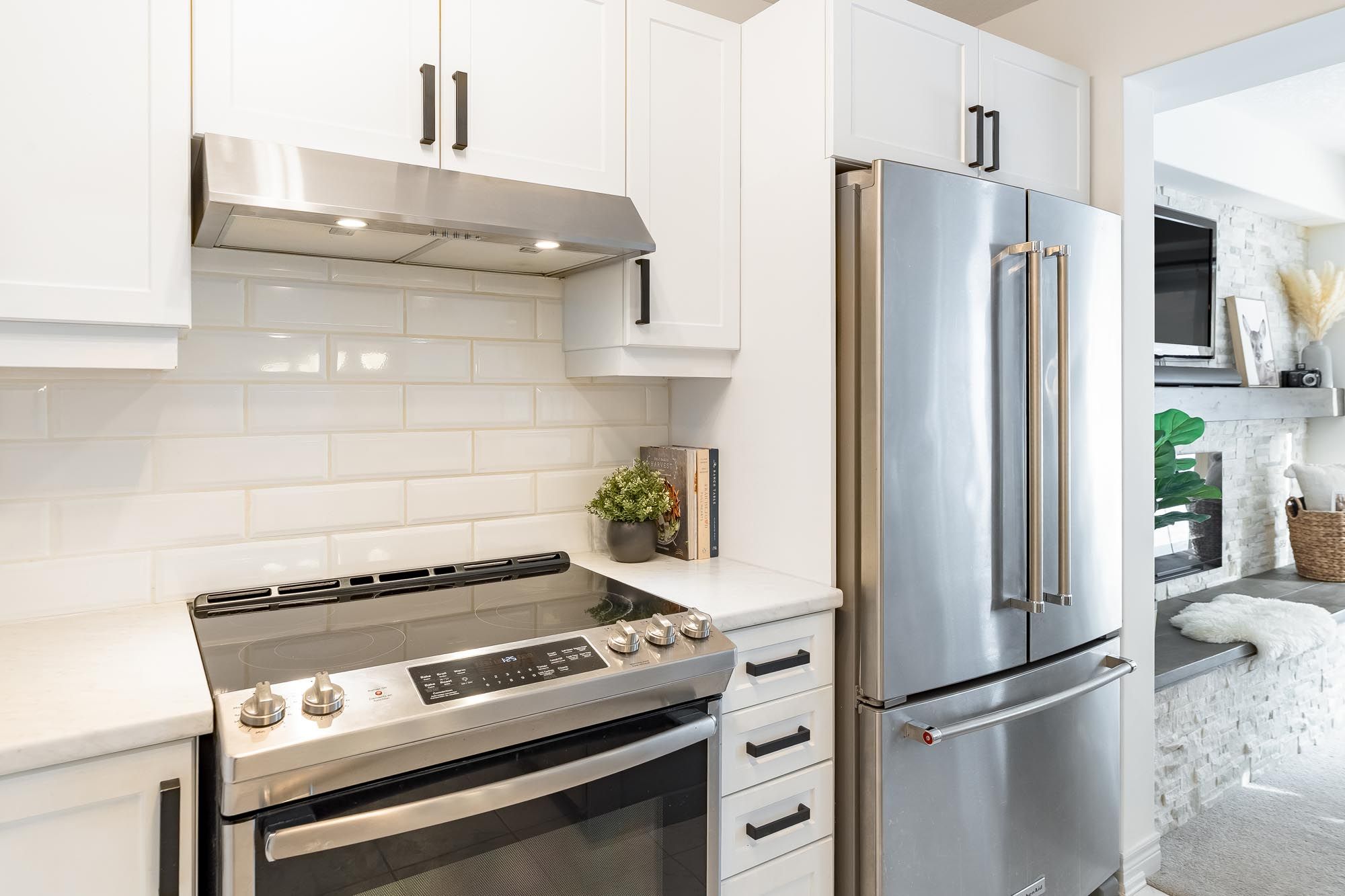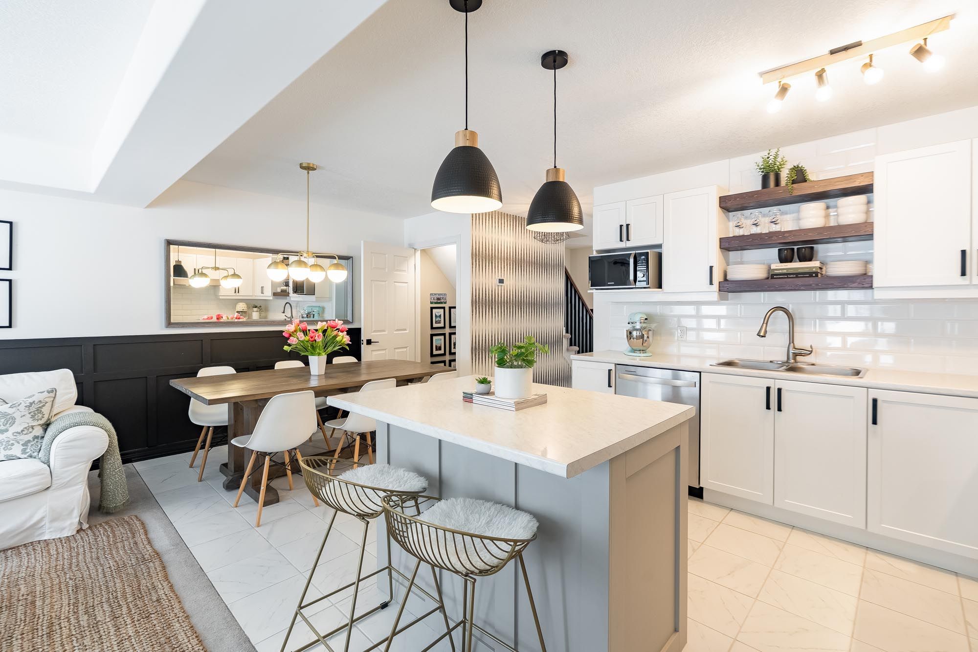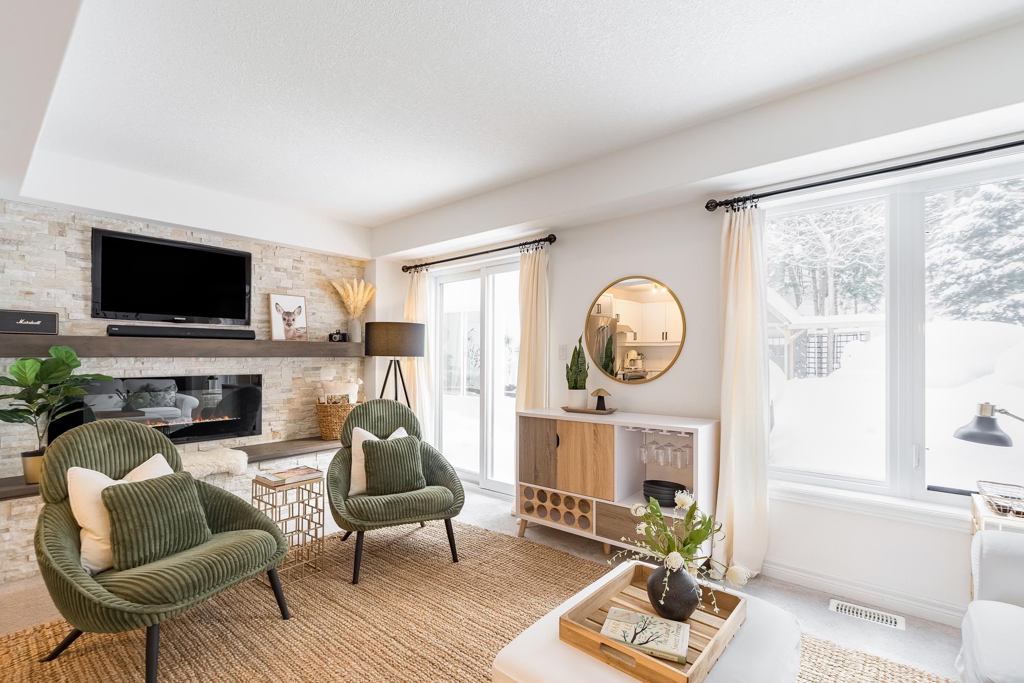 • Stylish basement with family room, murphy bed, and full bathroom.
