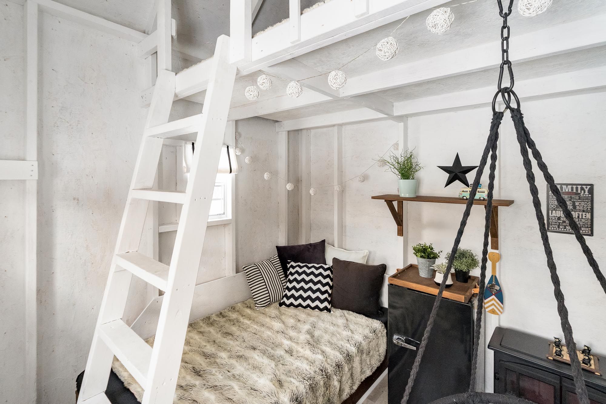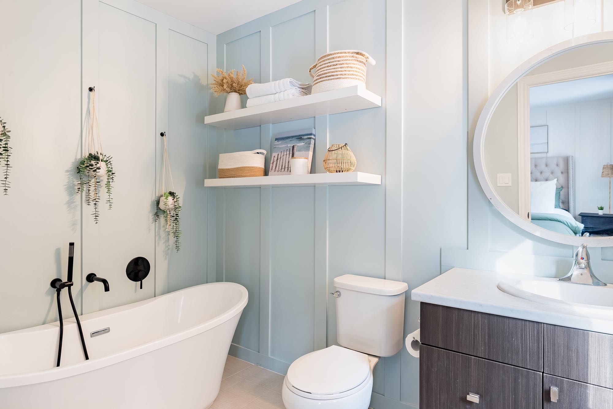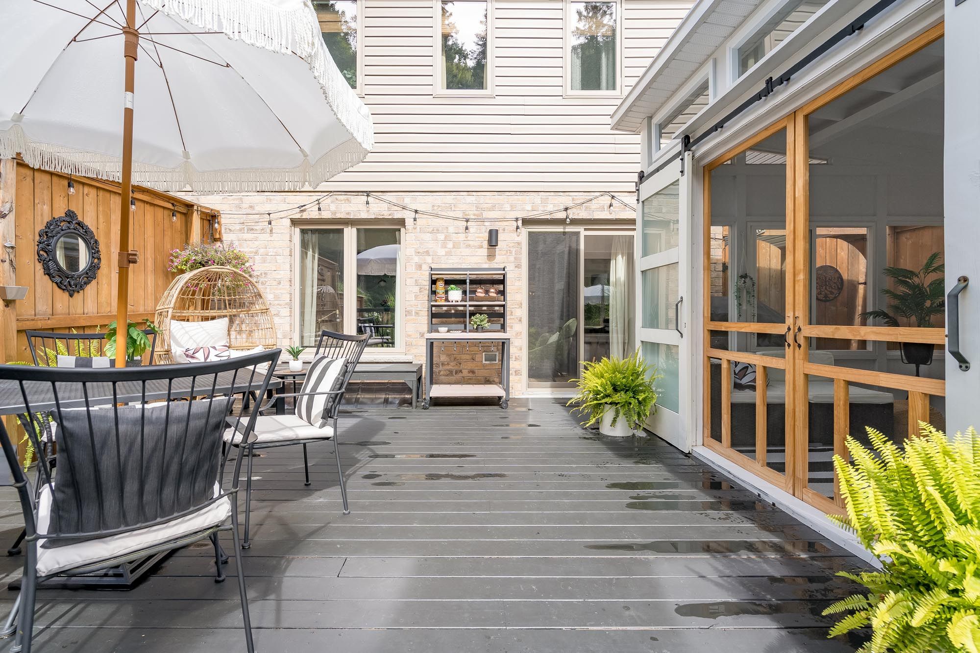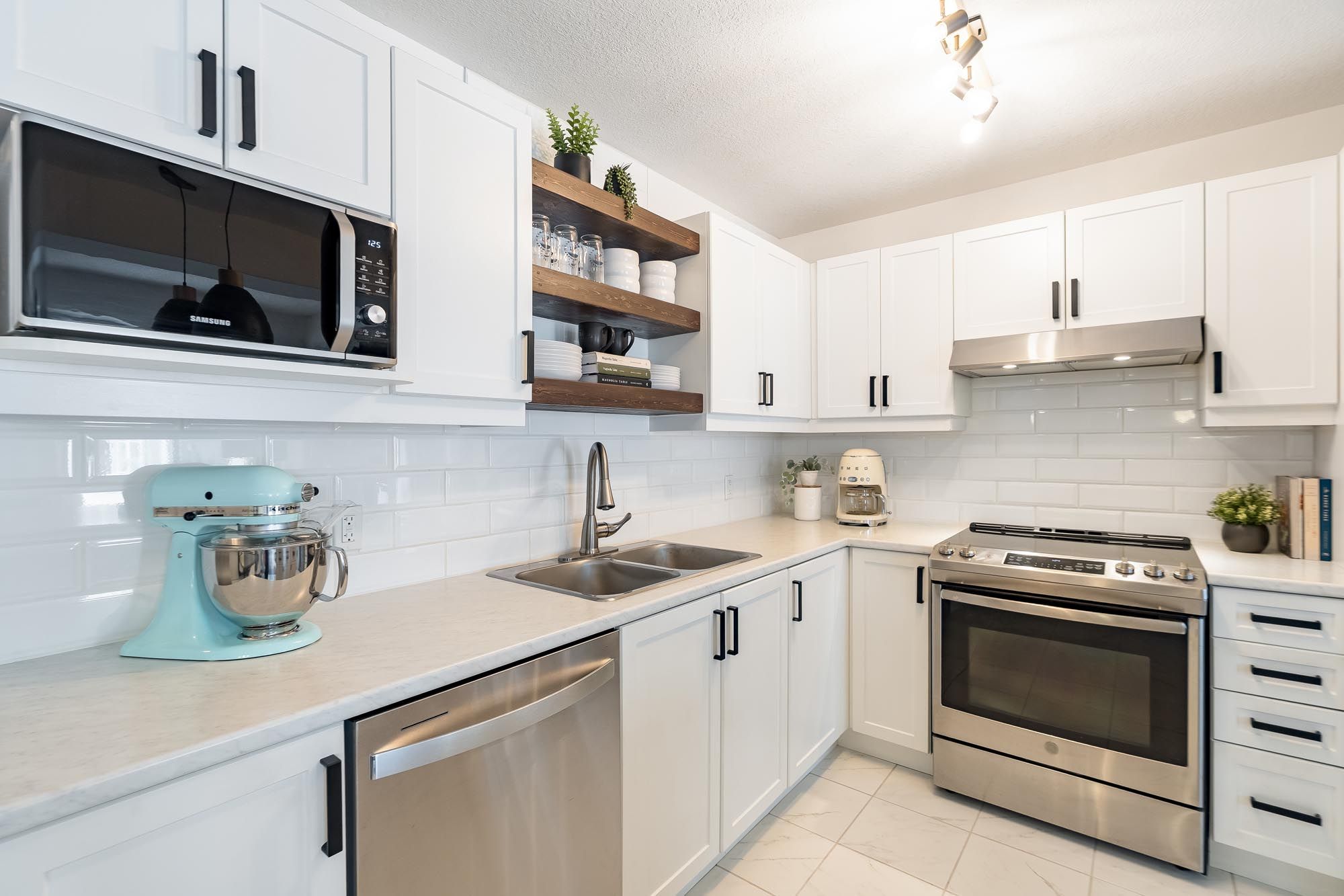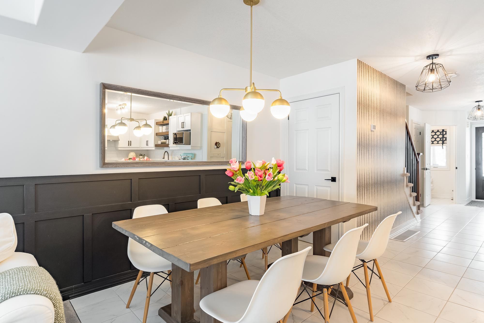 • Stylish basement with family room, murphy bed, and full bathroom.