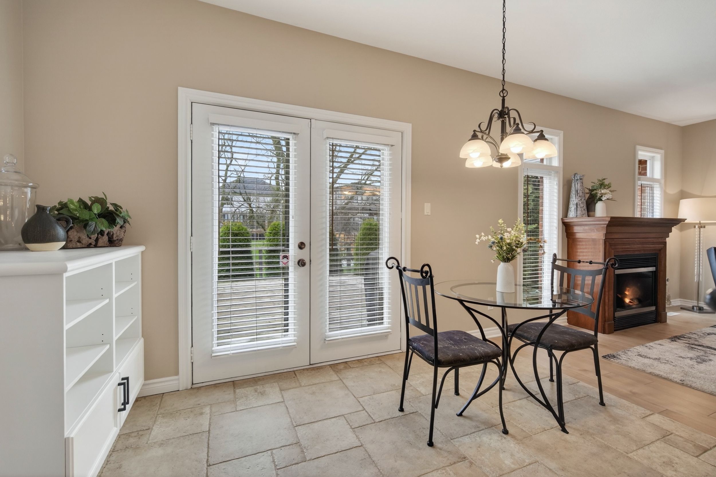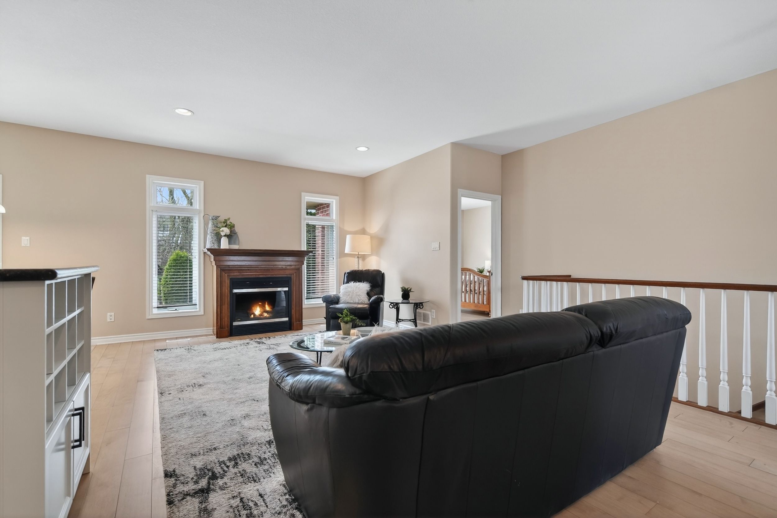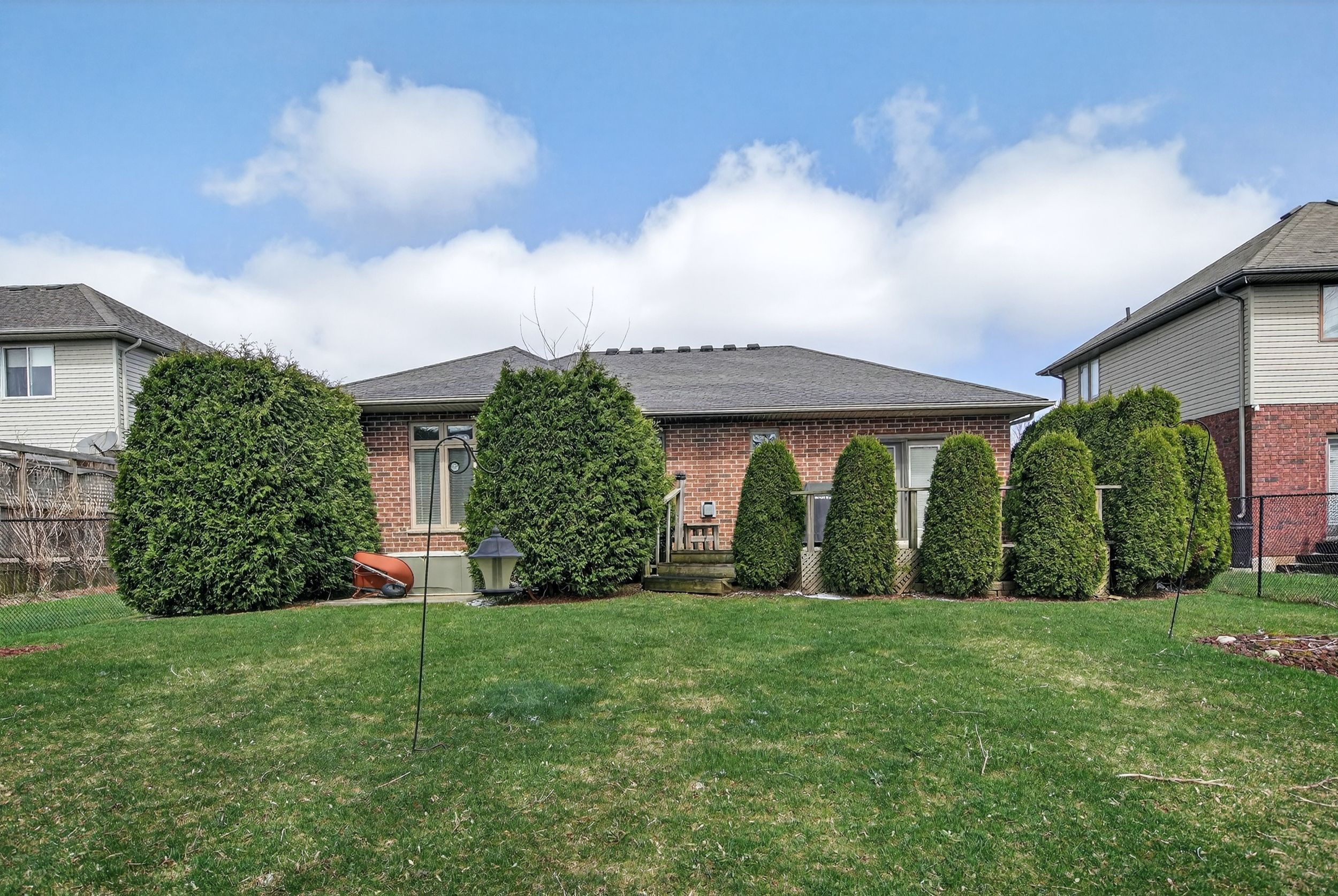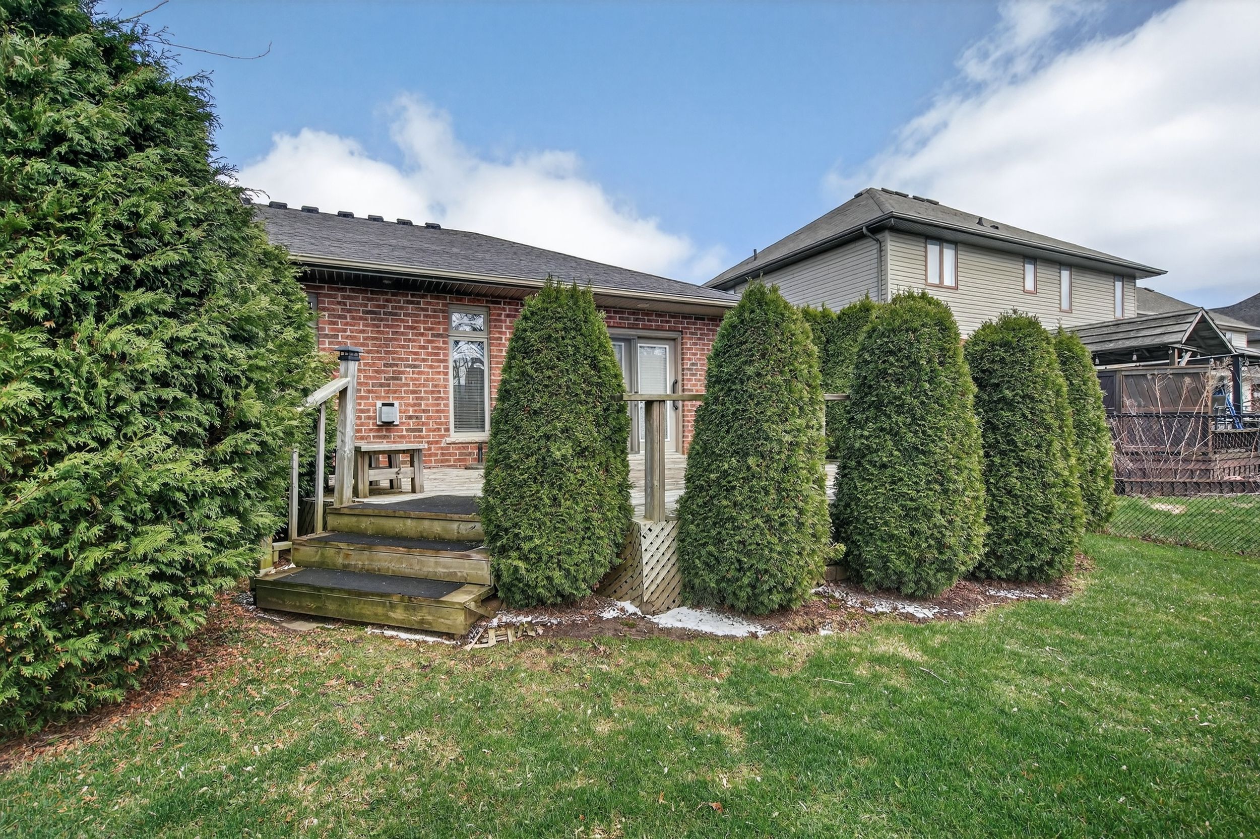 Welcome to this stylish 2+1 bedroom, 3 bathroom bungalow nestled in desirable kilworth - where comfort, style, and functionality come together. From the moment you arrive, you'll appreciate the double wide driveway and 2 car garage with inside entry. Step inside to a bright, open-concept main floor finished with newer flooring in the great room and tile in the foyer, kitchen and dining areas. Freshly painted throughout, the kitchen features a generous island that flows effortlessly into the great room, which is anchored by a warm gas fireplace with windows on either side. The sunlit dining area has garden doors that open onto a large newer deck, ideal for entertaining or quiet evenings outdoors where you can overlook a fenced yard. The spacious primary bedroom has newer flooring, a walk-in closet and 5 piece ensuite bathroom with double sinks, a soaker tub and a separate shower. A well-appointed second bedroom is great for guests or as a home office and is conveniently served by an updated 3 piece bathroom (2023). Convenient main floor laundry adds everyday practicality right where you need it. The partially finished lower level offers additional living space, including a third bedroom, a 3 piece bathroom and a flexible bonus area, with substantial unfinished square footage ready for your dream recreation room. Why pay condo fees when you can enjoy main floor living in a great neighbourhood close to many amenities and walking trails. Other notables: furnace 2024, a/c 2020, roof 2017, driveway pavers relevelled 2024 and french drain added, gas hook up on deck, patio stones underneath deck.