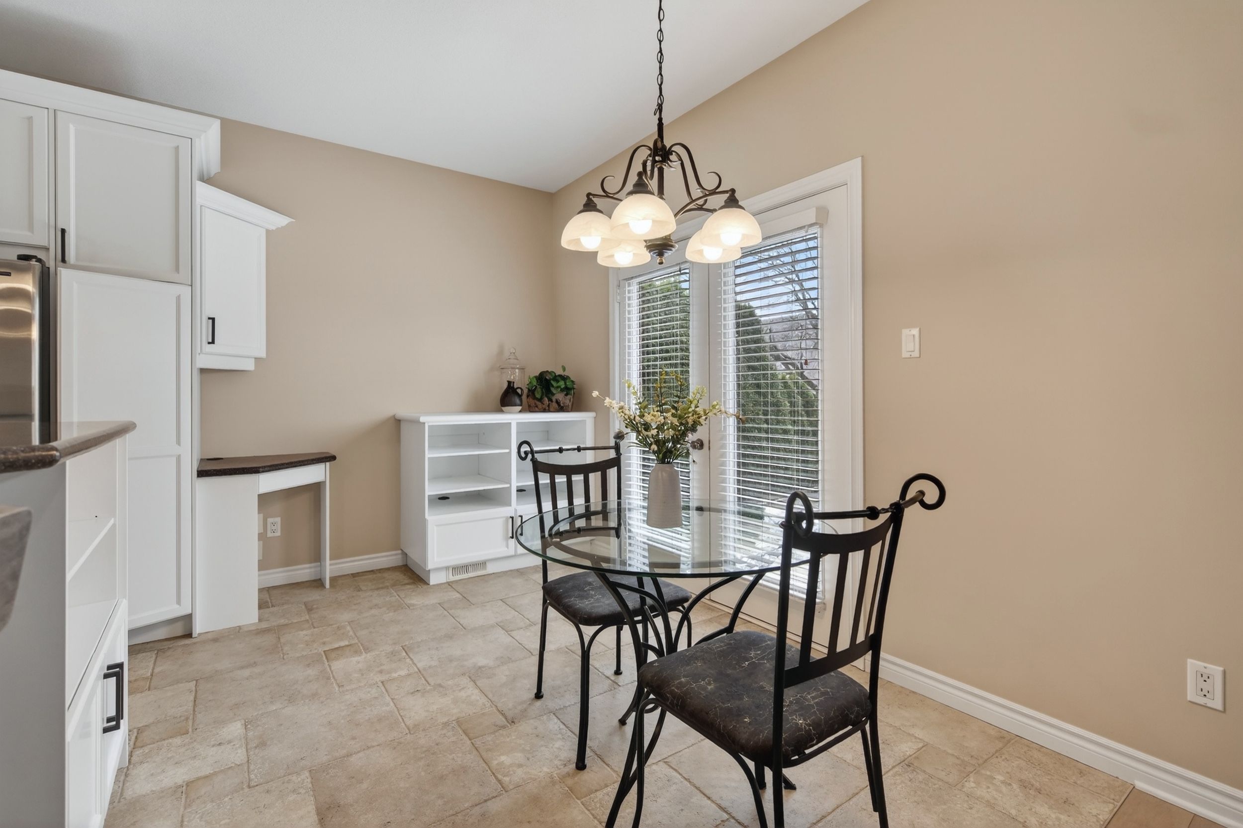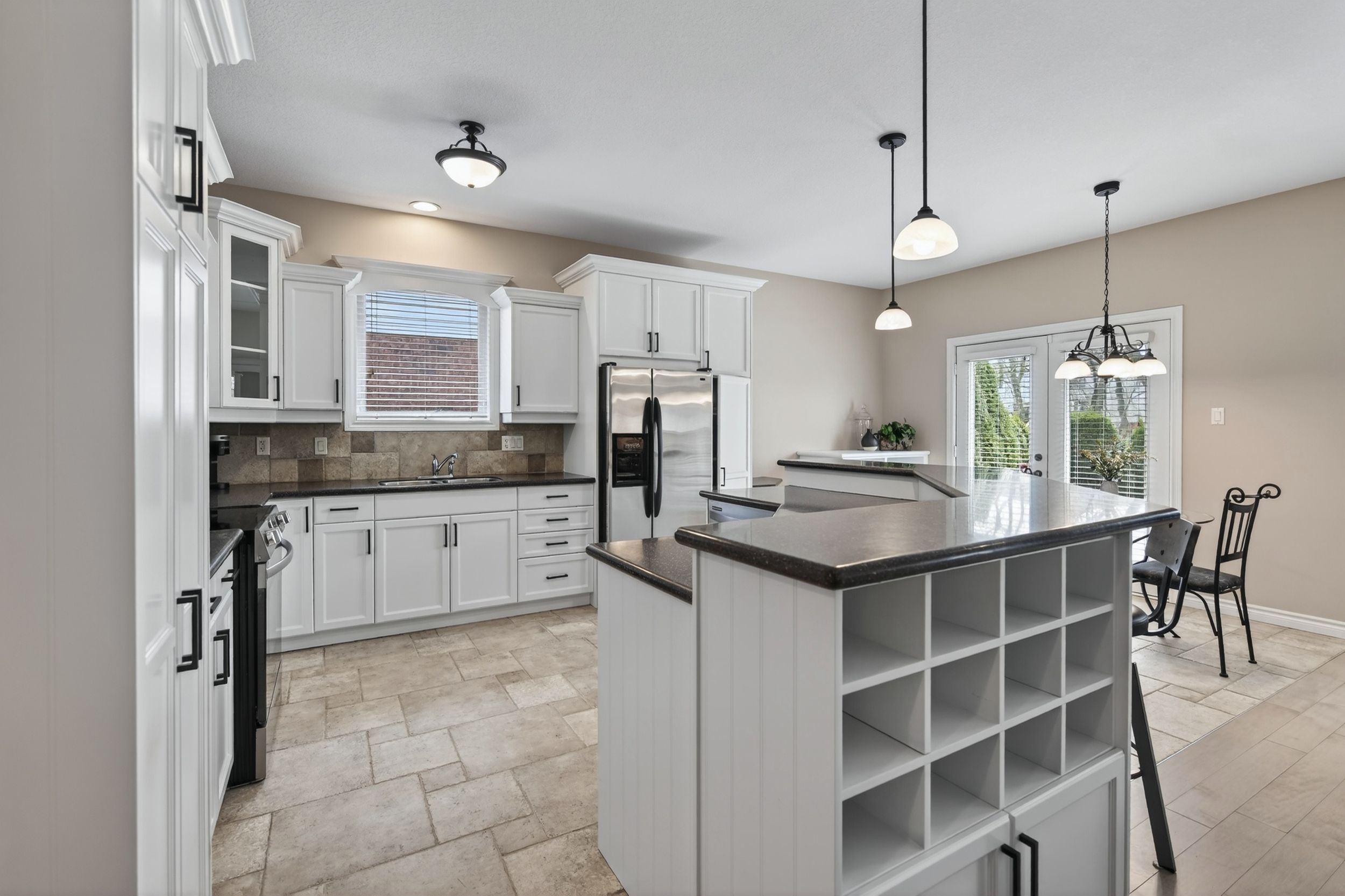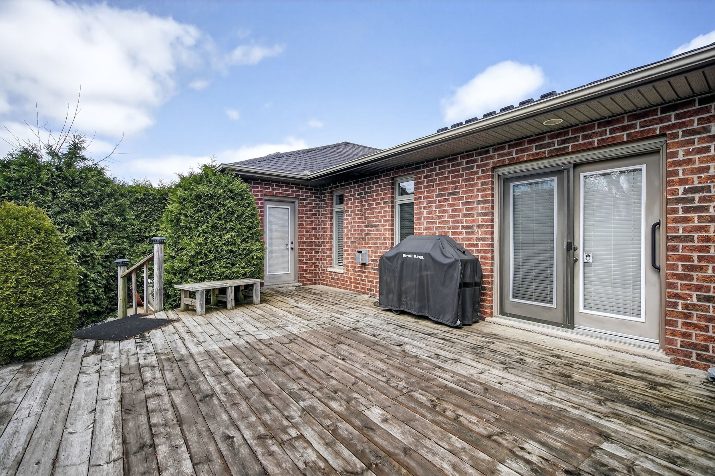 Welcome to this stylish 2+1 bedroom, 3 bathroom bungalow nestled in desirable kilworth - where comfort, style, and functionality come together. From the moment you arrive, you'll appreciate the double wide driveway and 2 car garage with inside entry. Step inside to a bright, open-concept main floor finished with newer flooring in the great room and tile in the foyer, kitchen and dining areas. Freshly painted throughout, the kitchen features a generous island that flows effortlessly into the great room, which is anchored by a warm gas fireplace with windows on either side. The sunlit dining area has garden doors that open onto a large newer deck, ideal for entertaining or quiet evenings outdoors where you can overlook a fenced yard. The spacious primary bedroom has newer flooring, a walk-in closet and 5 piece ensuite bathroom with double sinks, a soaker tub and a separate shower. A well-appointed second bedroom is great for guests or as a home office and is conveniently served by an updated 3 piece bathroom (2023). Convenient main floor laundry adds everyday practicality right where you need it. The partially finished lower level offers additional living space, including a third bedroom, a 3 piece bathroom and a flexible bonus area, with substantial unfinished square footage ready for your dream recreation room. Why pay condo fees when you can enjoy main floor living in a great neighbourhood close to many amenities and walking trails. Other notables: furnace 2024, a/c 2020, roof 2017, driveway pavers relevelled 2024 and french drain added, gas hook up on deck, patio stones underneath deck.