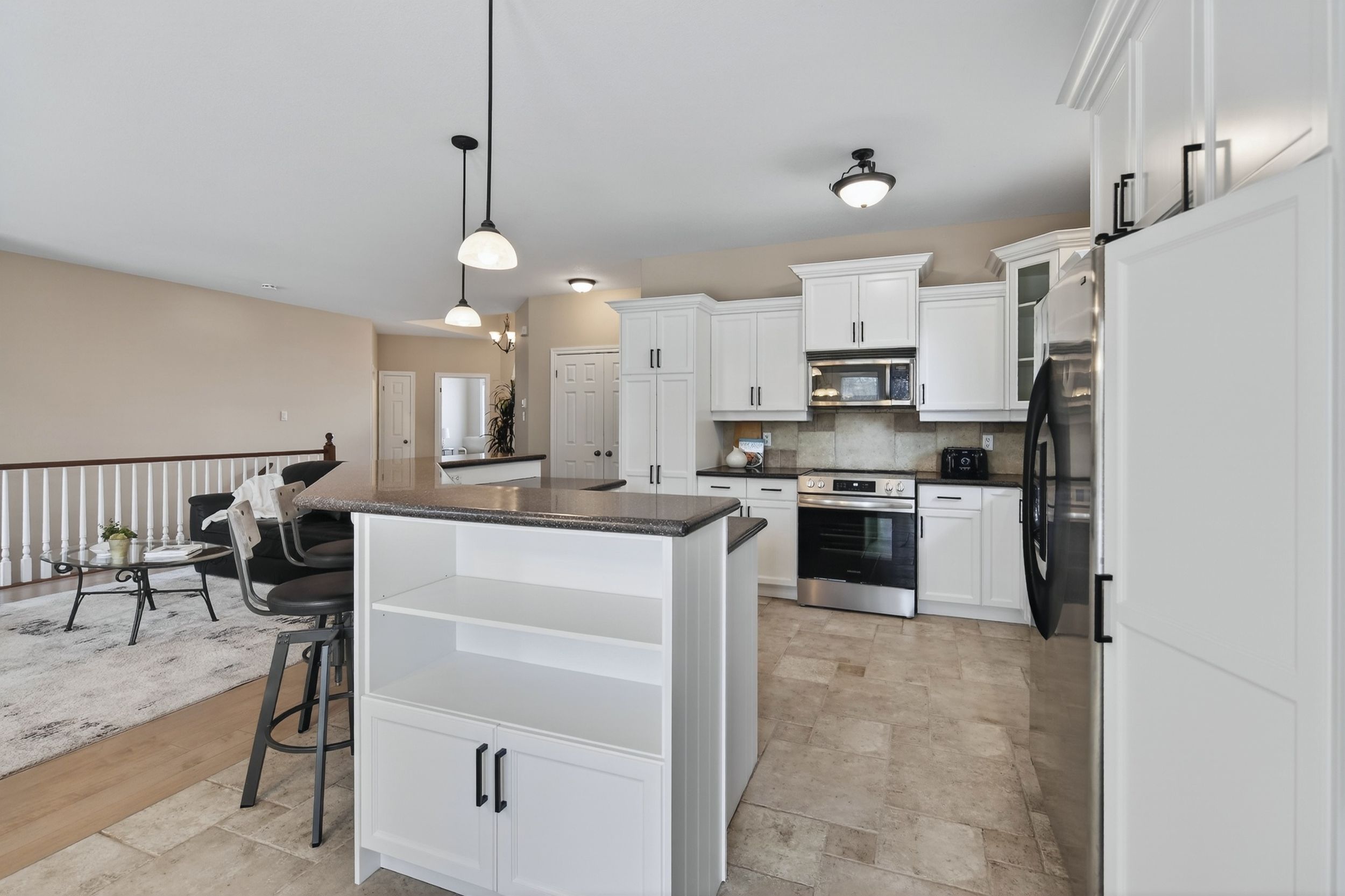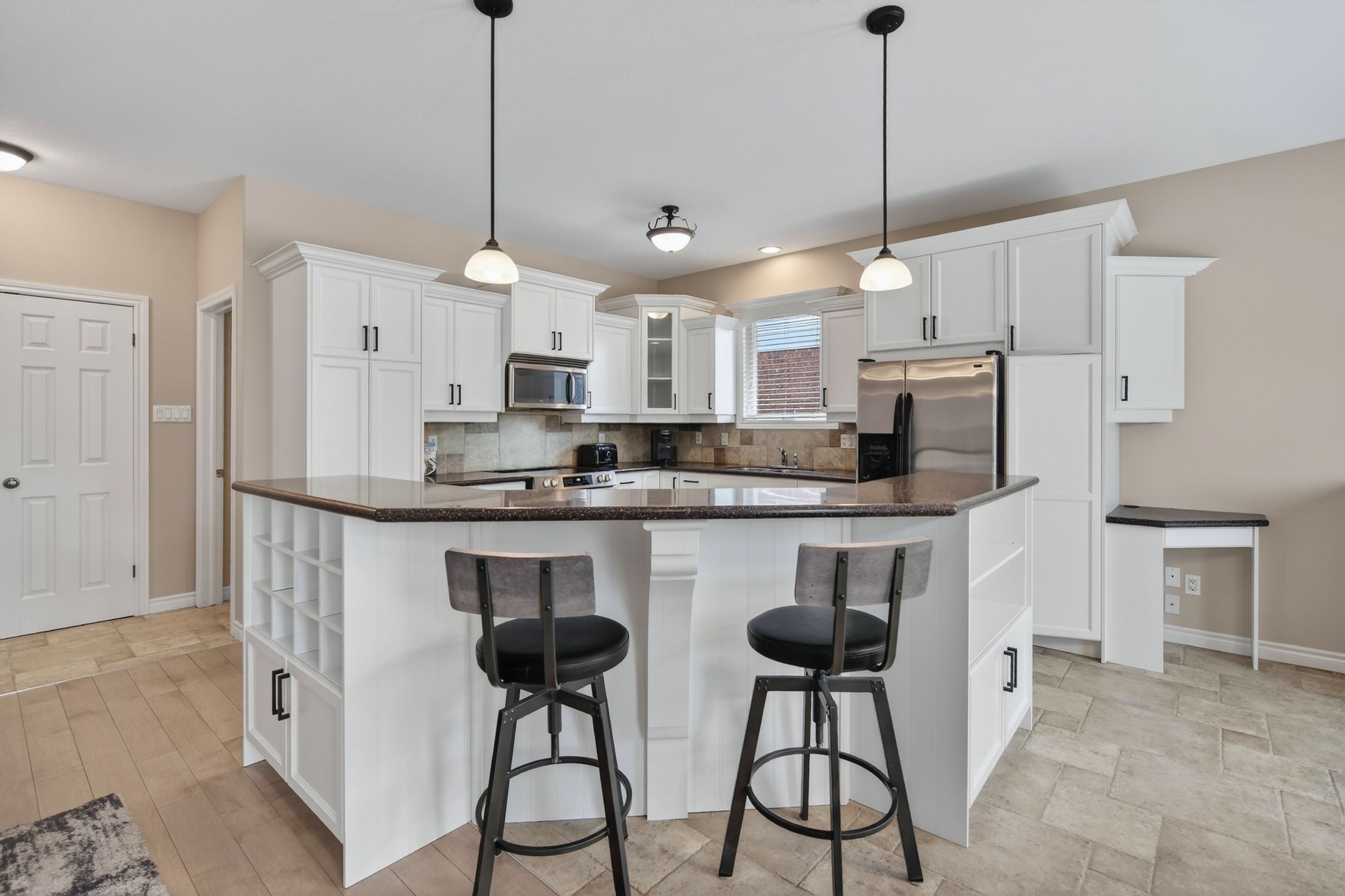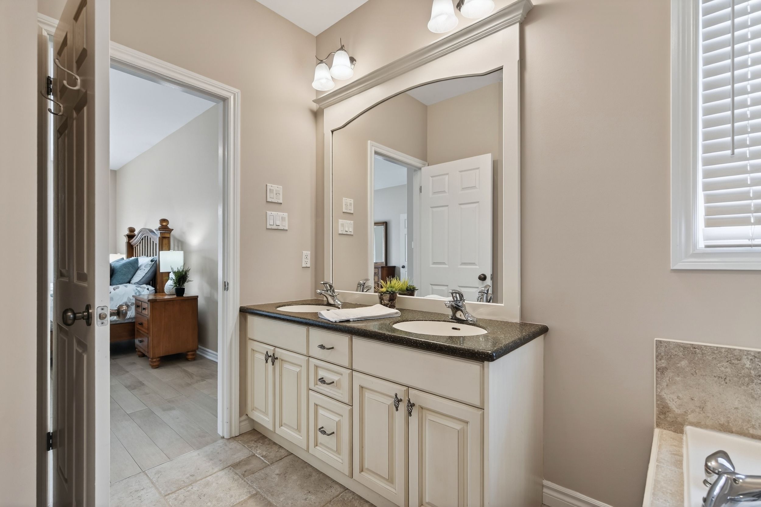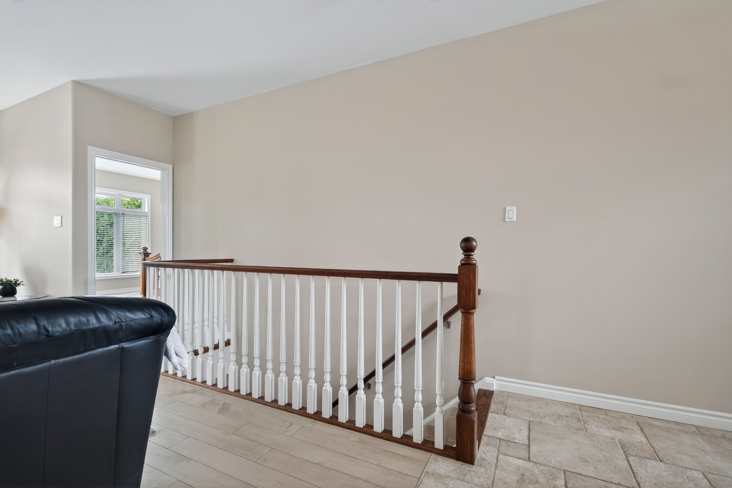 Welcome to this stylish 2+1 bedroom, 3 bathroom bungalow nestled in desirable kilworth - where comfort, style, and functionality come together. From the moment you arrive, you'll appreciate the double wide driveway and 2 car garage with inside entry. Step inside to a bright, open-concept main floor finished with newer flooring in the great room and tile in the foyer, kitchen and dining areas. Freshly painted throughout, the kitchen features a generous island that flows effortlessly into the great room, which is anchored by a warm gas fireplace with windows on either side. The sunlit dining area has garden doors that open onto a large newer deck, ideal for entertaining or quiet evenings outdoors where you can overlook a fenced yard. The spacious primary bedroom has newer flooring, a walk-in closet and 5 piece ensuite bathroom with double sinks, a soaker tub and a separate shower. A well-appointed second bedroom is great for guests or as a home office and is conveniently served by an updated 3 piece bathroom (2023). Convenient main floor laundry adds everyday practicality right where you need it. The partially finished lower level offers additional living space, including a third bedroom, a 3 piece bathroom and a flexible bonus area, with substantial unfinished square footage ready for your dream recreation room. Why pay condo fees when you can enjoy main floor living in a great neighbourhood close to many amenities and walking trails. Other notables: furnace 2024, a/c 2020, roof 2017, driveway pavers relevelled 2024 and french drain added, gas hook up on deck, patio stones underneath deck.