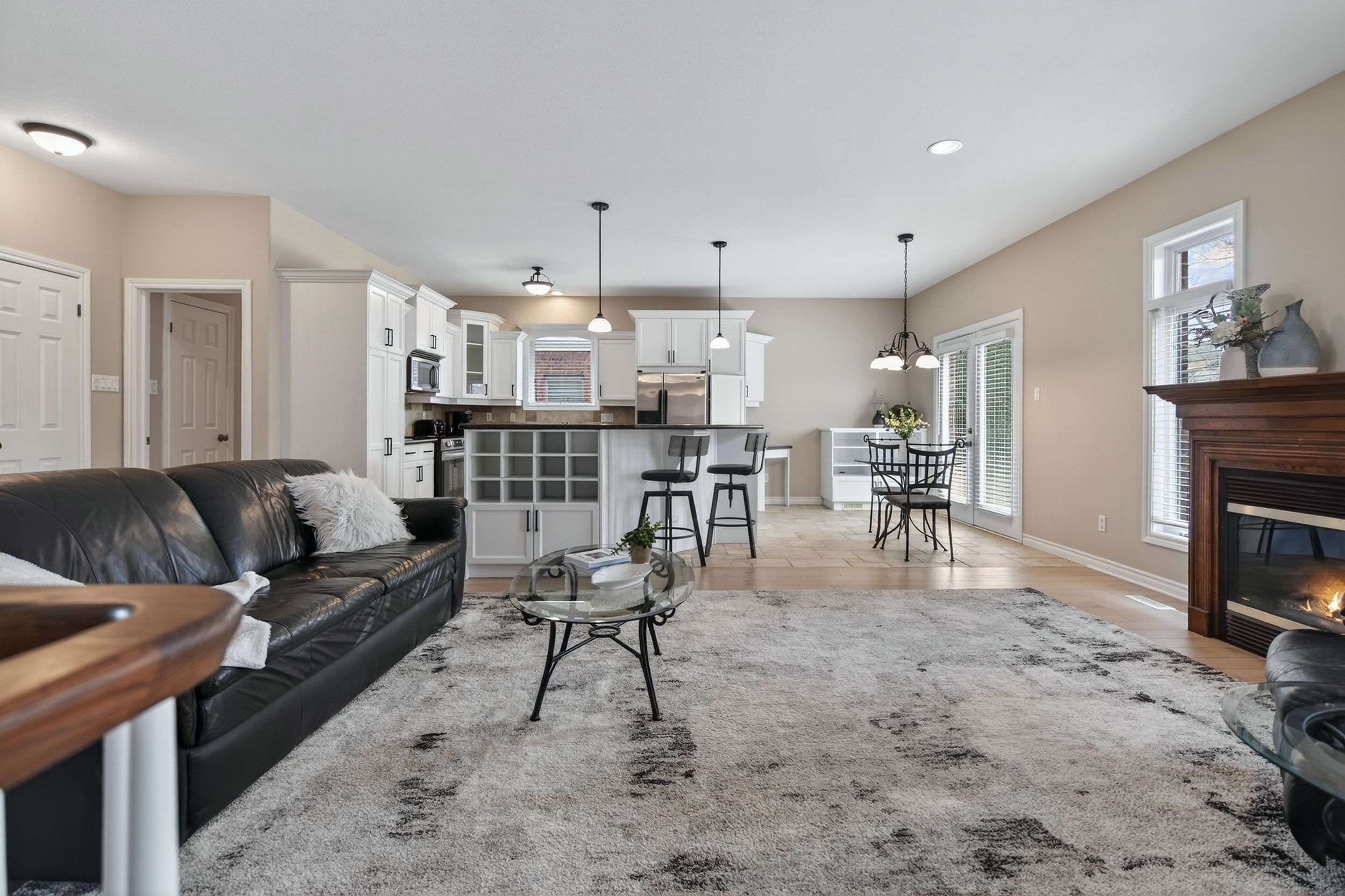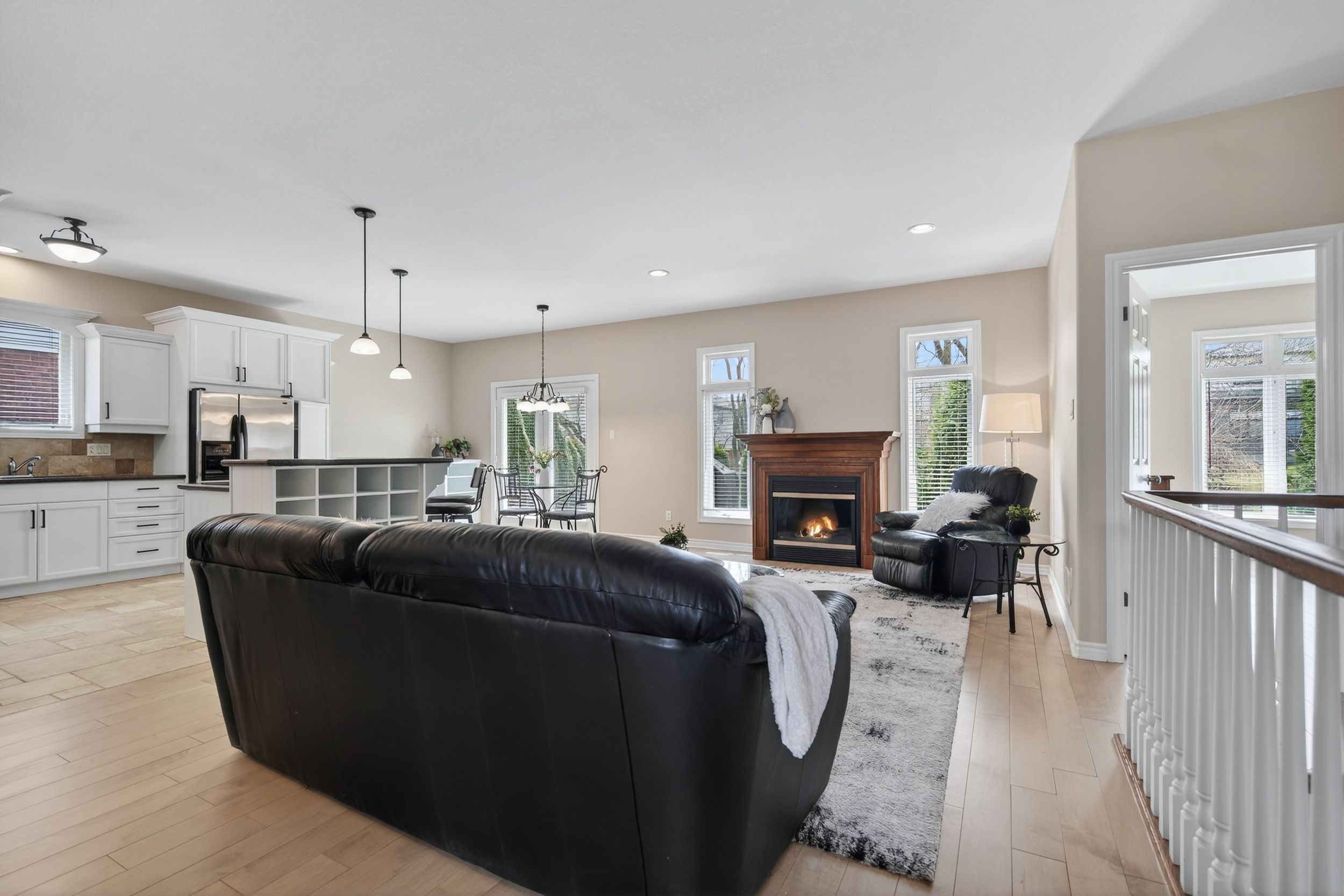 • Bright open-concept main floor with newer flooring and a cozy gas fireplace.