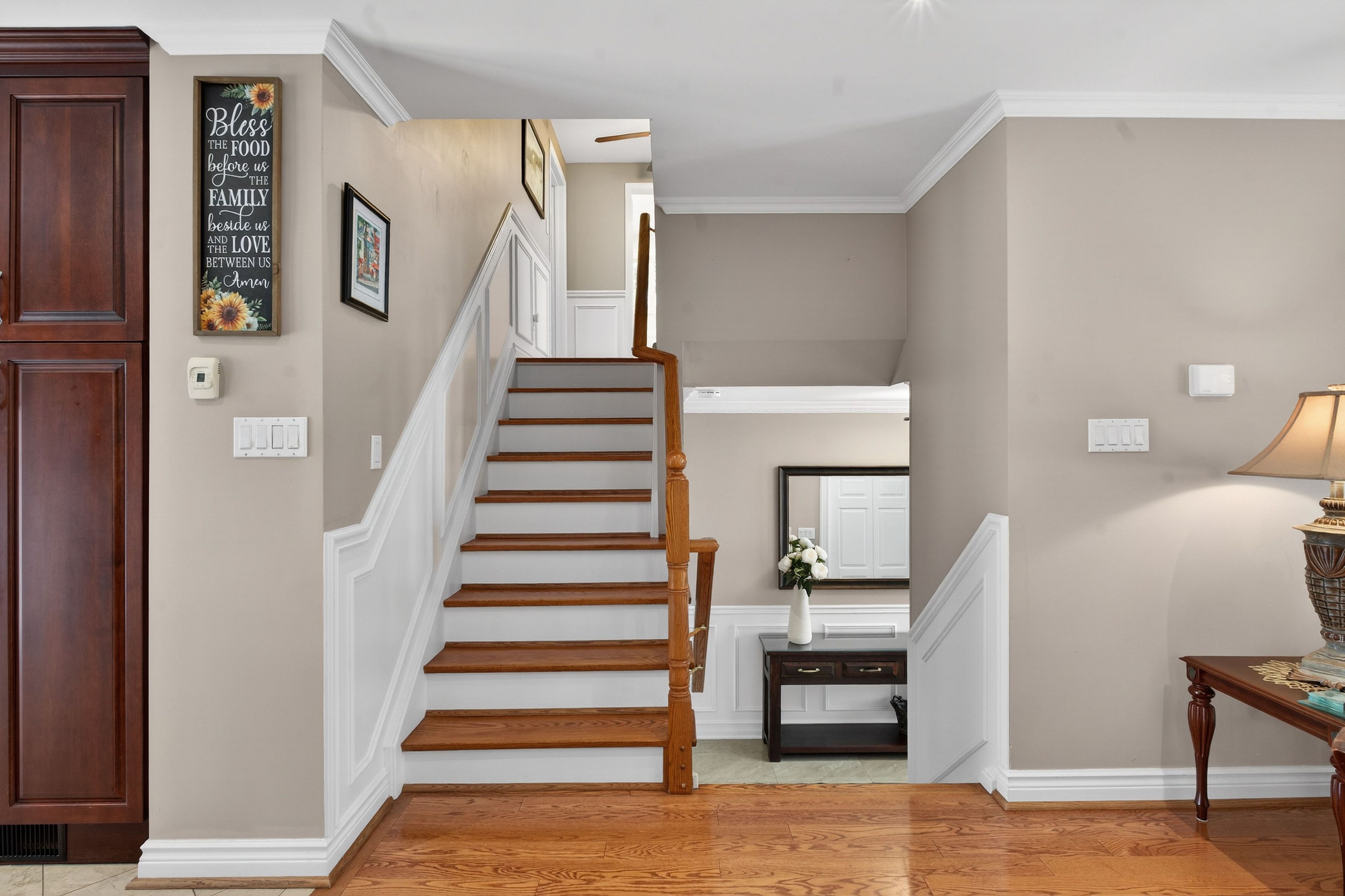 • Bright main level with open living, dining, and kitchen featuring heated floors.