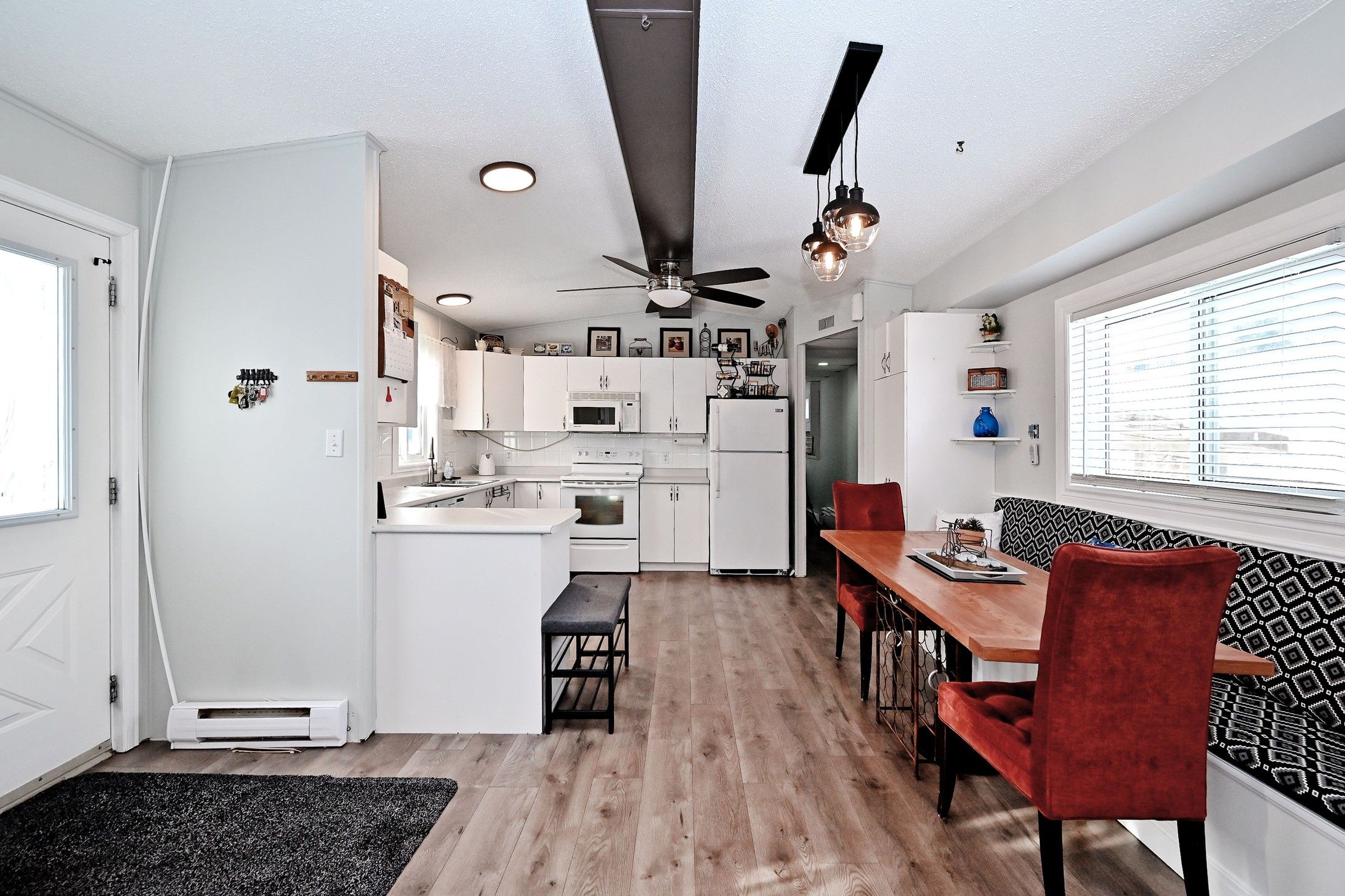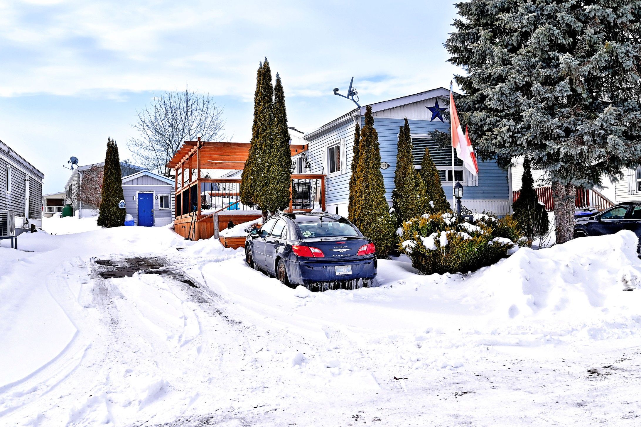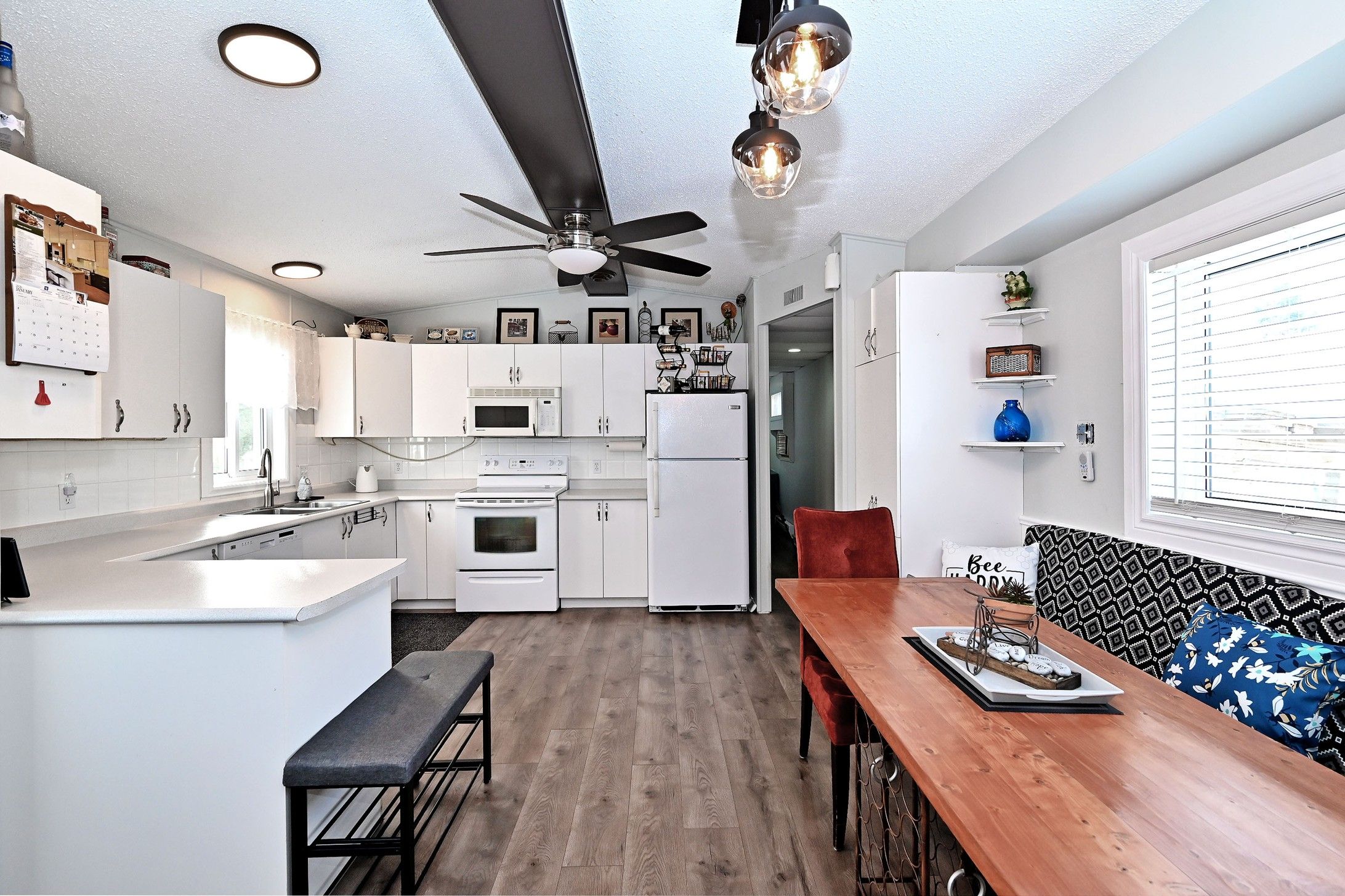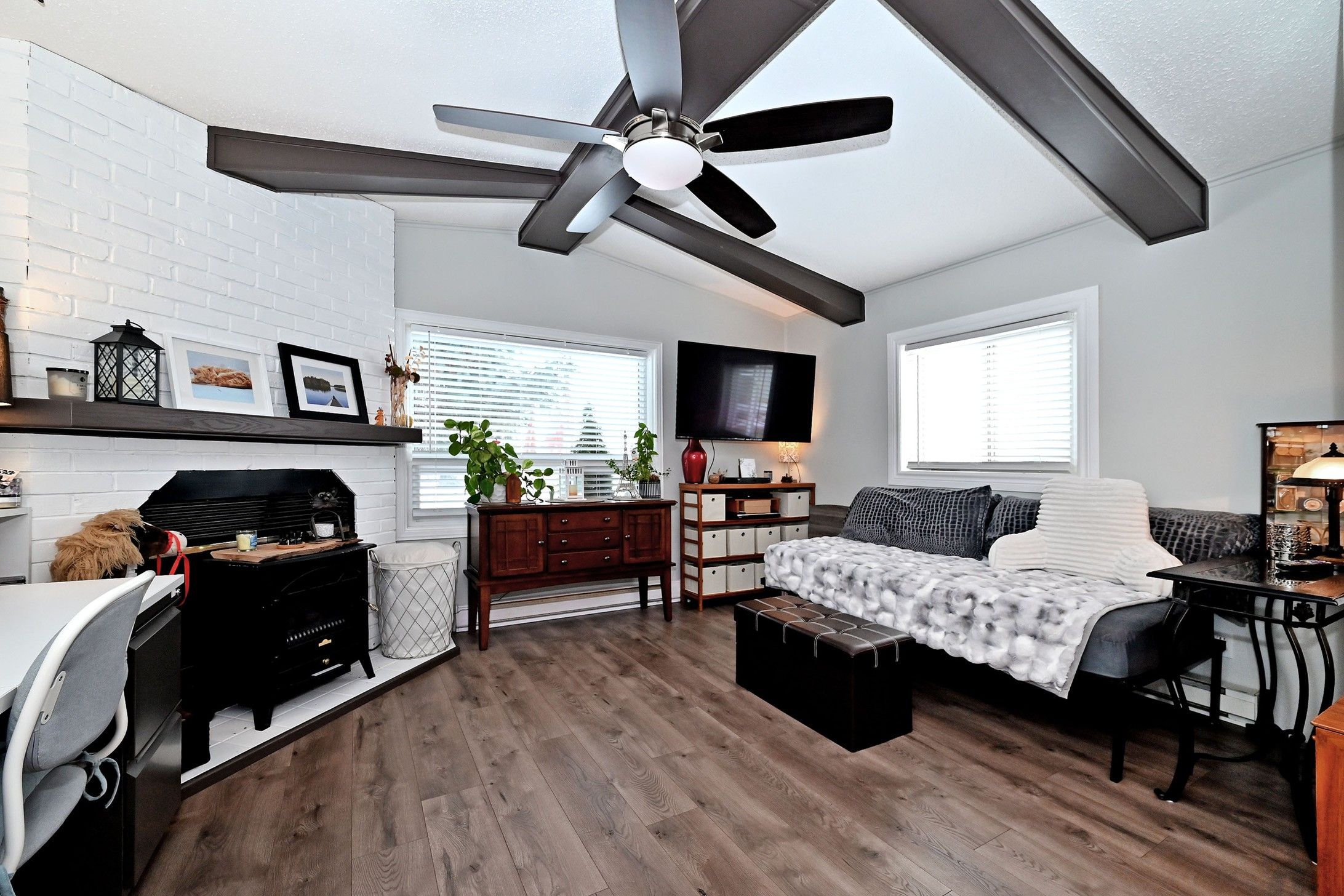 Wonderful opportunity for first time buyers or down sizers! Charming 2 bedroom modular home with spacious layout. Inviting living area features a chalet style beamed ceiling and cozy wood burning fireplace. Bright eat in kitchen with built in banquet seating. Two bedrooms and two bathrooms. The primary bdrm boasts a beautifully renovated ensuite. Outside enjoy a large deck with clear views of conservation - ideal for relaxing or entertaining . Recent upgrades include: shingles (2024) , deck (2021), new flooring (2021), primary bath (2021) , paved driveway (2021) , windows(2019). Located just minutes to bradford this land lease community has no age restrictions. Monthly land lease of $595 includes property taxes, water and road maintenance. Home owner responsible for hydro, internet and phone. A wonderful opportunity to enjoy affordable living in a serene setting.