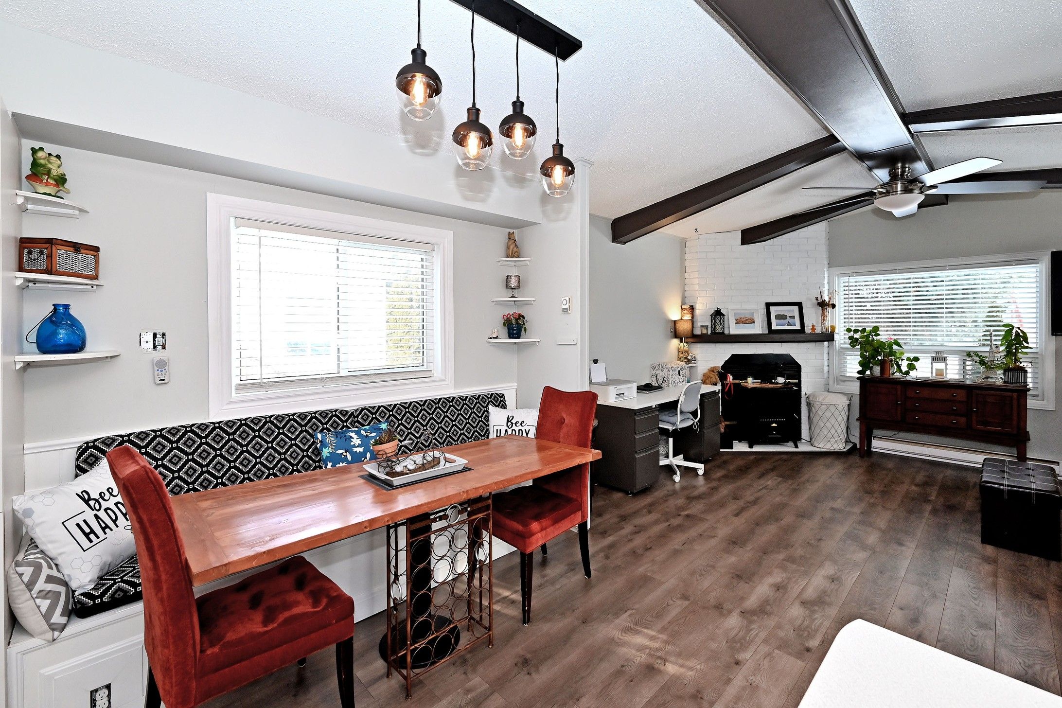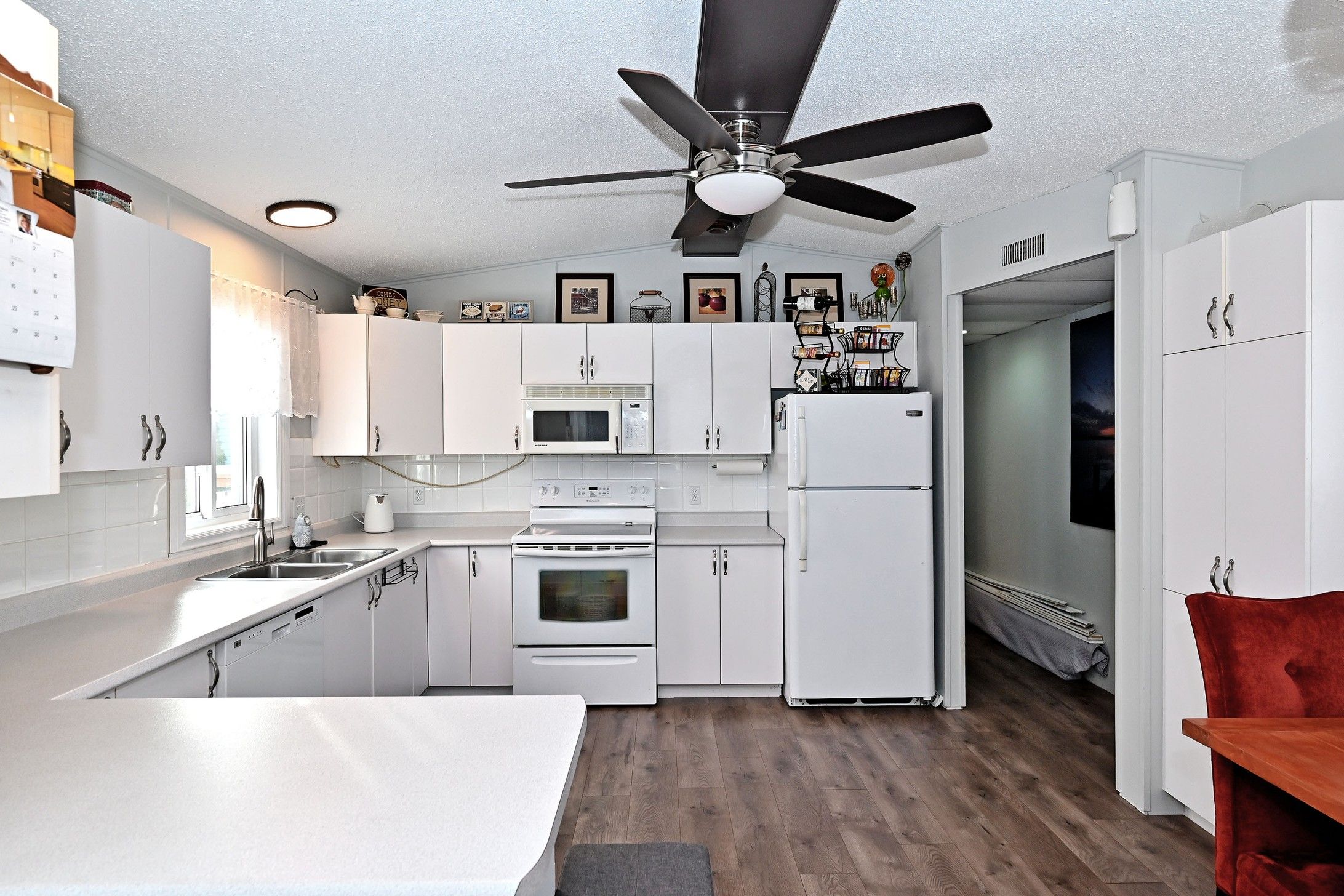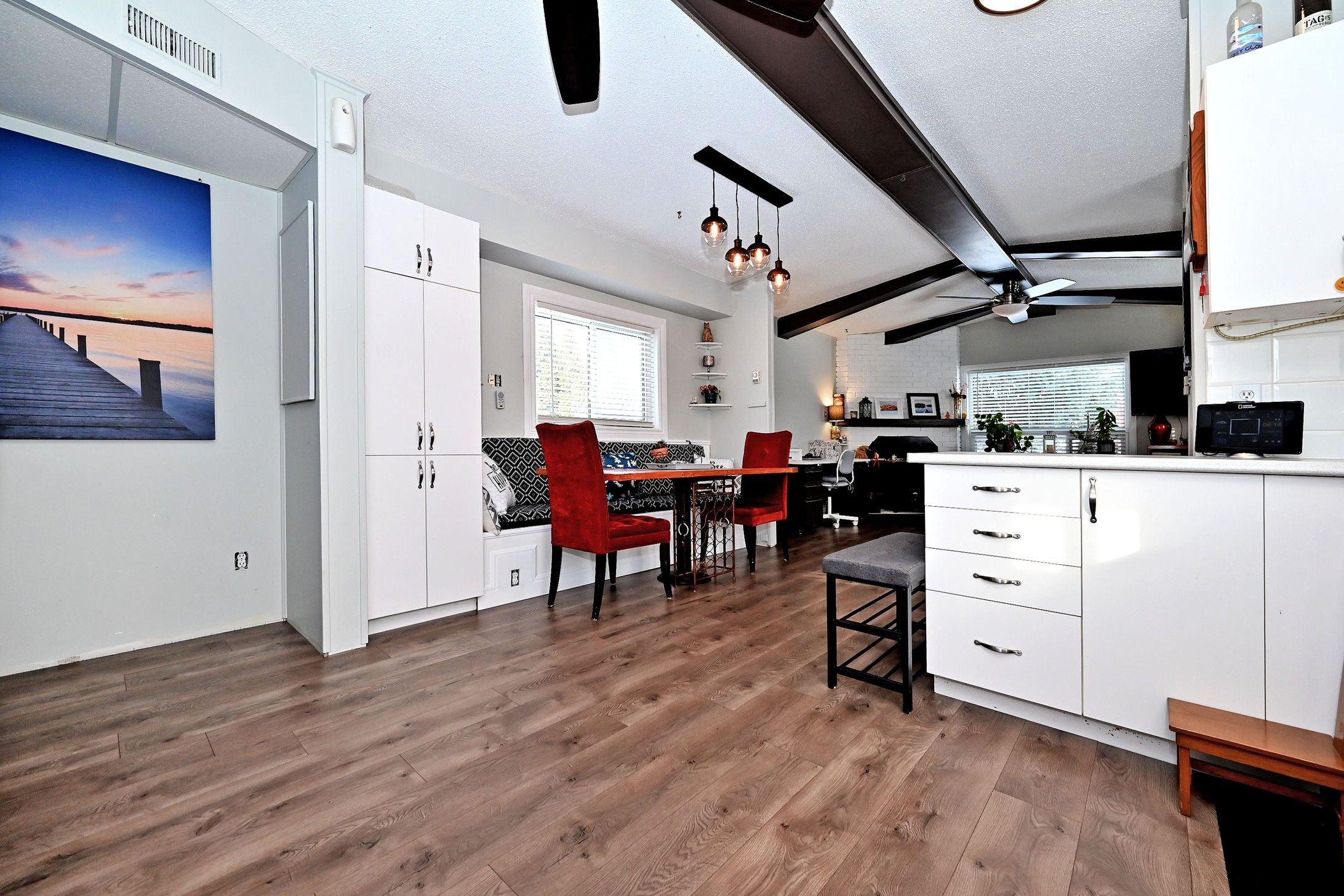 Wonderful opportunity for first time buyers or down sizers! Charming 2 bedroom modular home with spacious layout. Inviting living area features a chalet style beamed ceiling and cozy wood burning fireplace. Bright eat in kitchen with built in banquet seating. Two bedrooms and two bathrooms. The primary bdrm boasts a beautifully renovated ensuite. Outside enjoy a large deck with clear views of conservation - ideal for relaxing or entertaining . Recent upgrades include: shingles (2024) , deck (2021), new flooring (2021), primary bath (2021) , paved driveway (2021) , windows(2019). Located just minutes to bradford this land lease community has no age restrictions. Monthly land lease of $595 includes property taxes, water and road maintenance. Home owner responsible for hydro, internet and phone. A wonderful opportunity to enjoy affordable living in a serene setting.