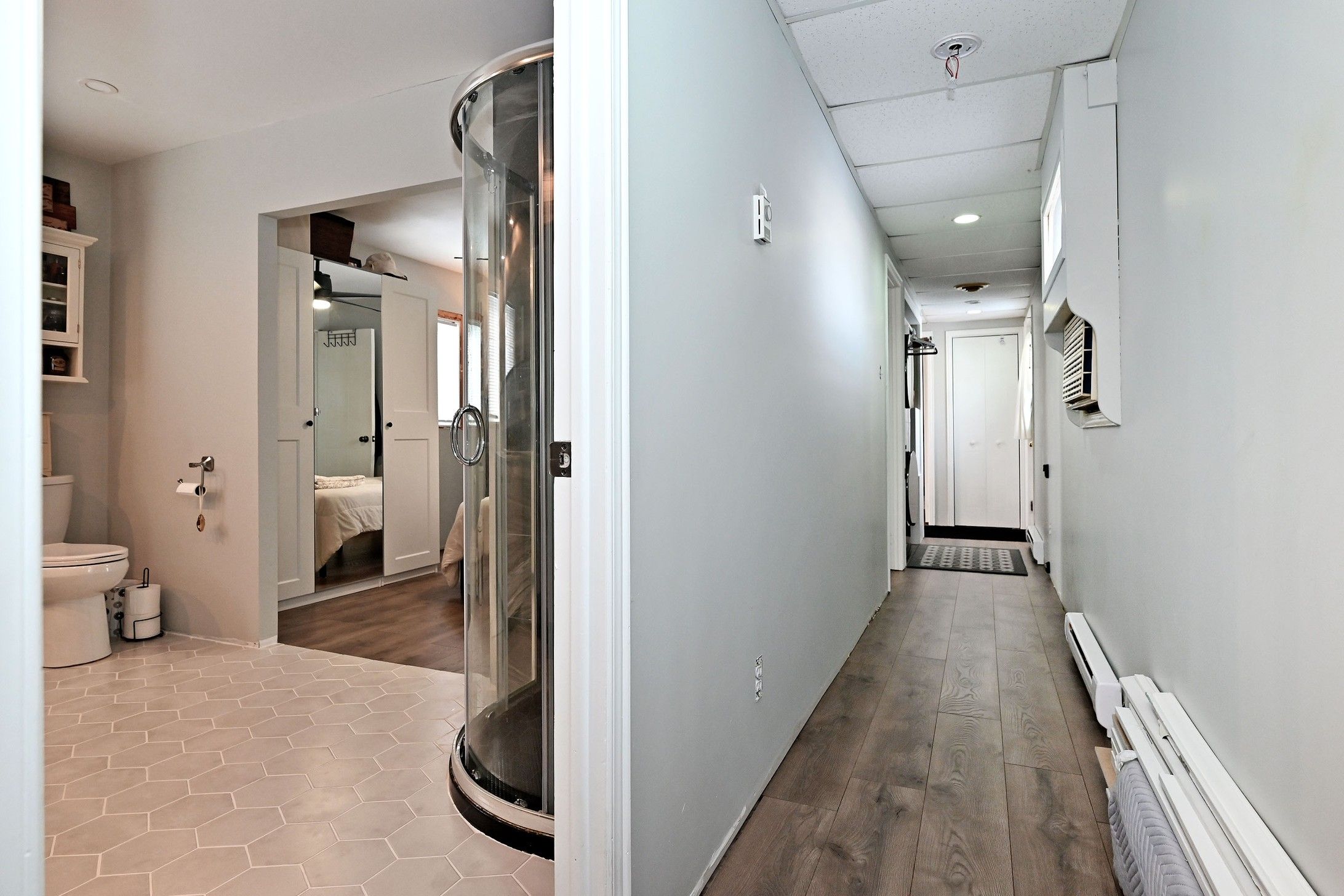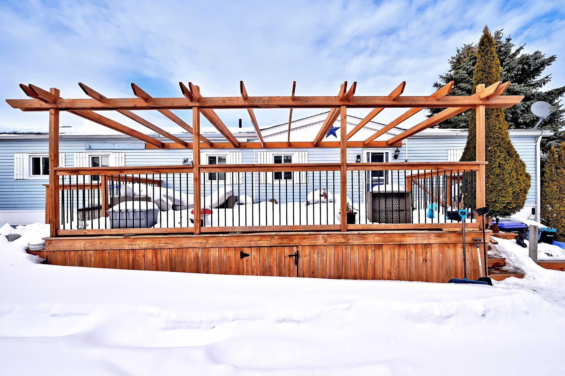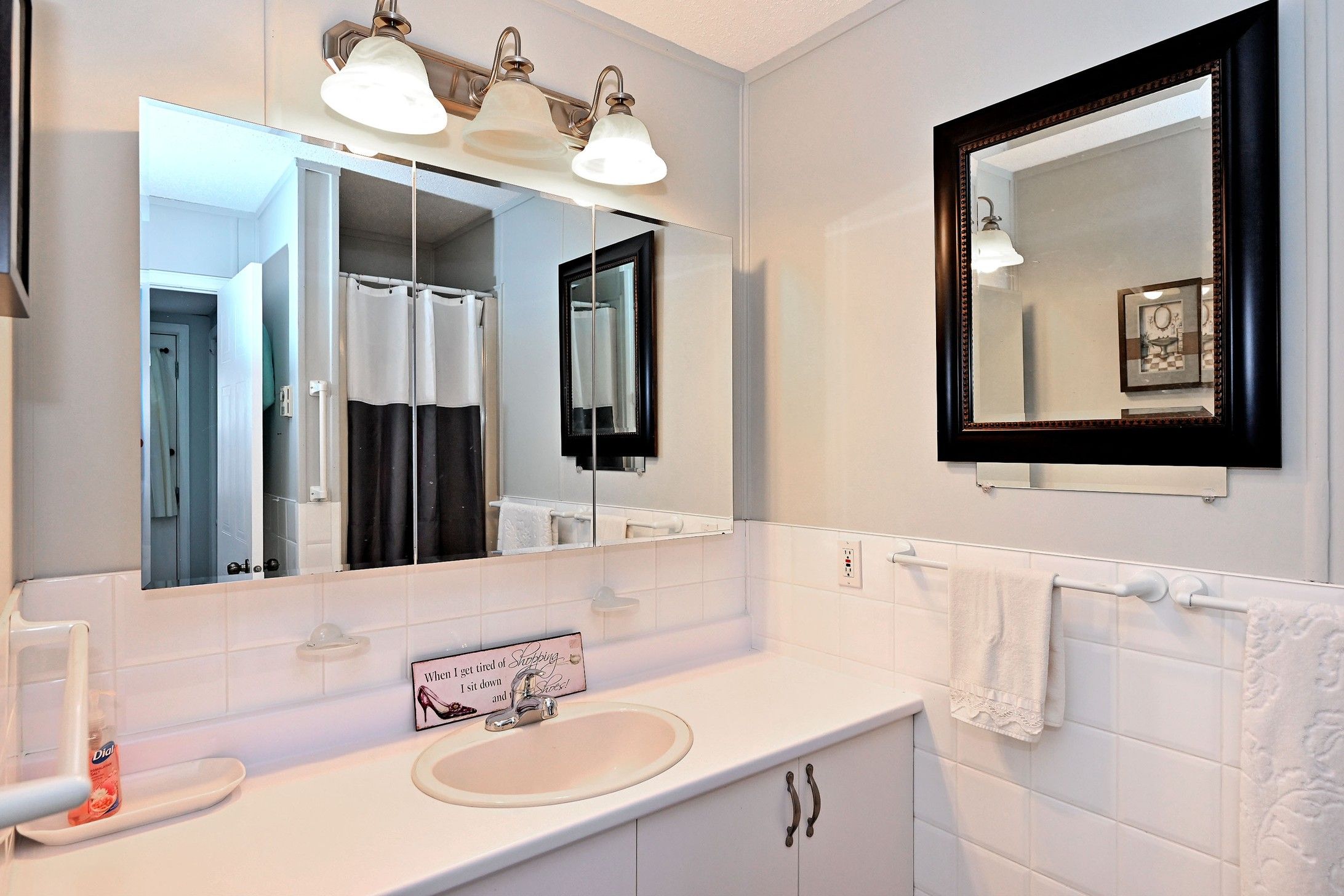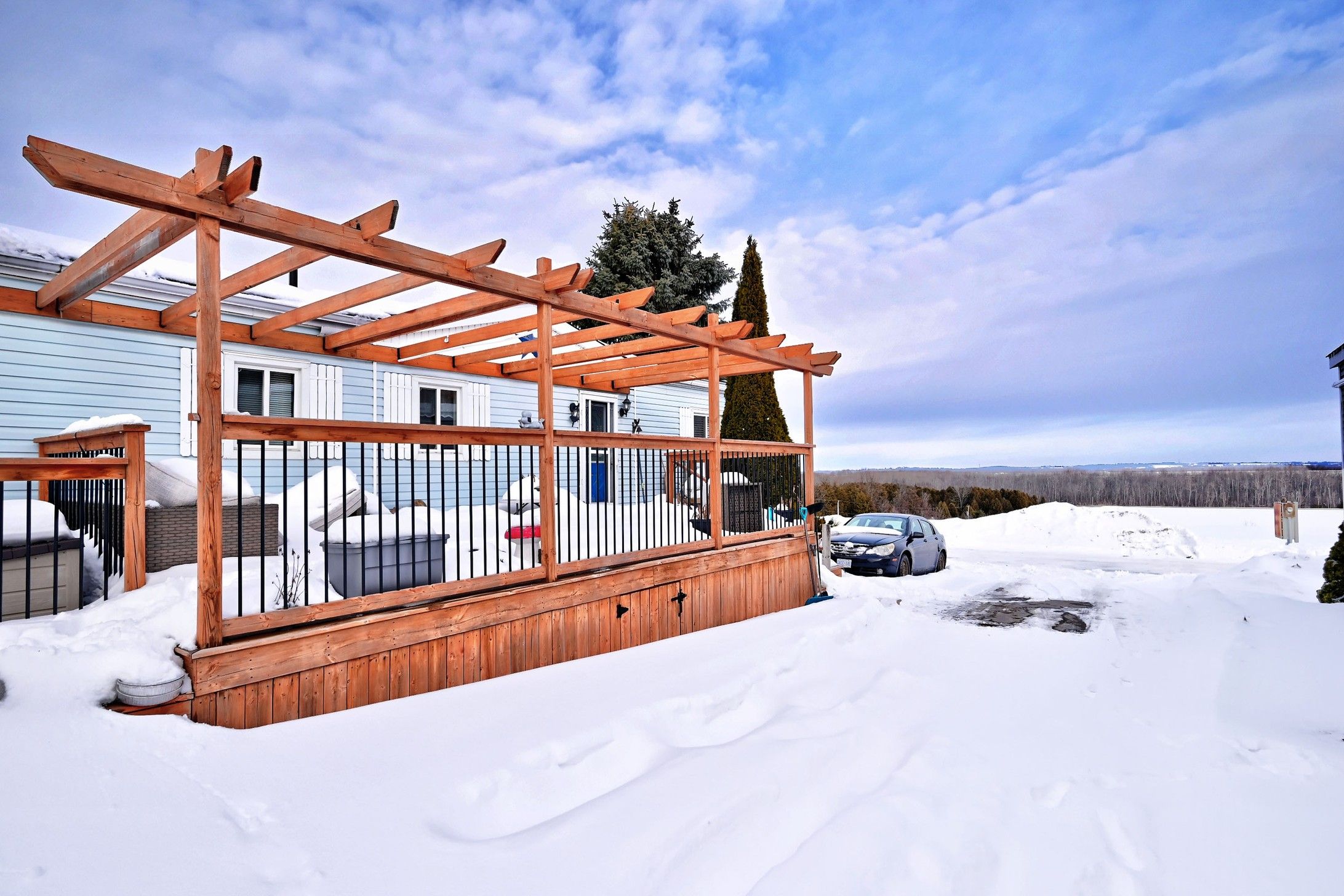 Wonderful opportunity for first time buyers or down sizers! Charming 2 bedroom modular home with spacious layout. Inviting living area features a chalet style beamed ceiling and cozy wood burning fireplace. Bright eat in kitchen with built in banquet seating. Two bedrooms and two bathrooms. The primary bdrm boasts a beautifully renovated ensuite. Outside enjoy a large deck with clear views of conservation - ideal for relaxing or entertaining . Recent upgrades include: shingles (2024) , deck (2021), new flooring (2021), primary bath (2021) , paved driveway (2021) , windows(2019). Located just minutes to bradford this land lease community has no age restrictions. Monthly land lease of $595 includes property taxes, water and road maintenance. Home owner responsible for hydro, internet and phone. A wonderful opportunity to enjoy affordable living in a serene setting.