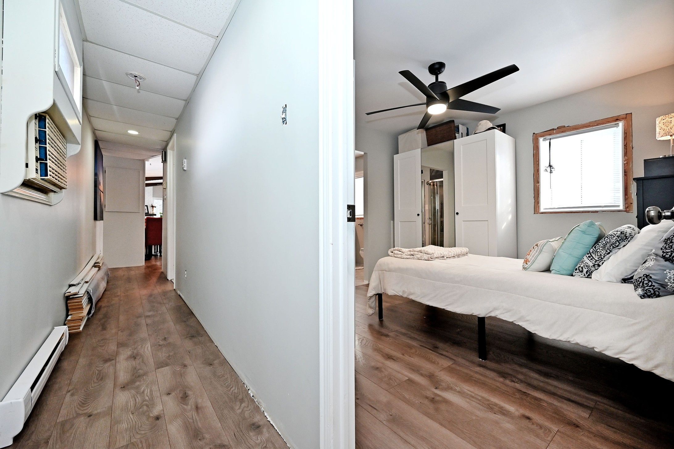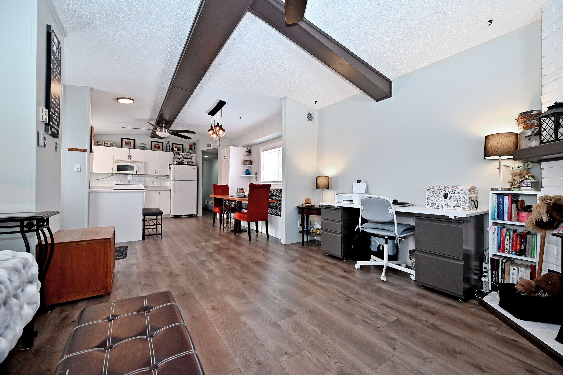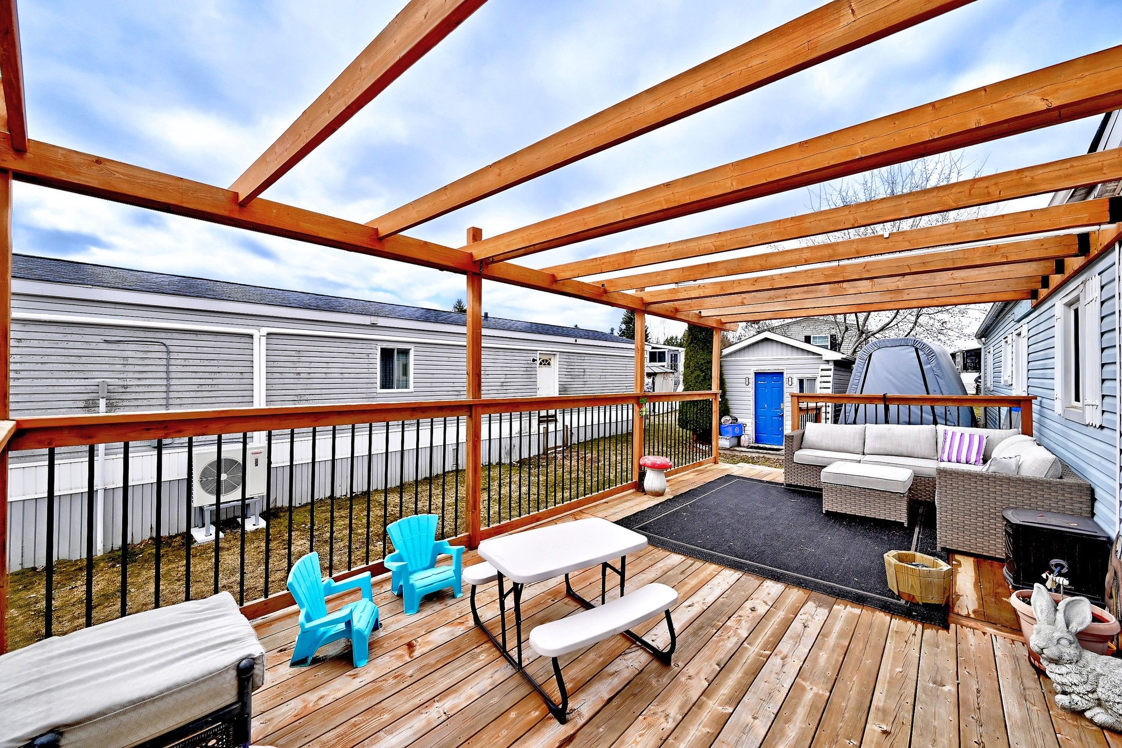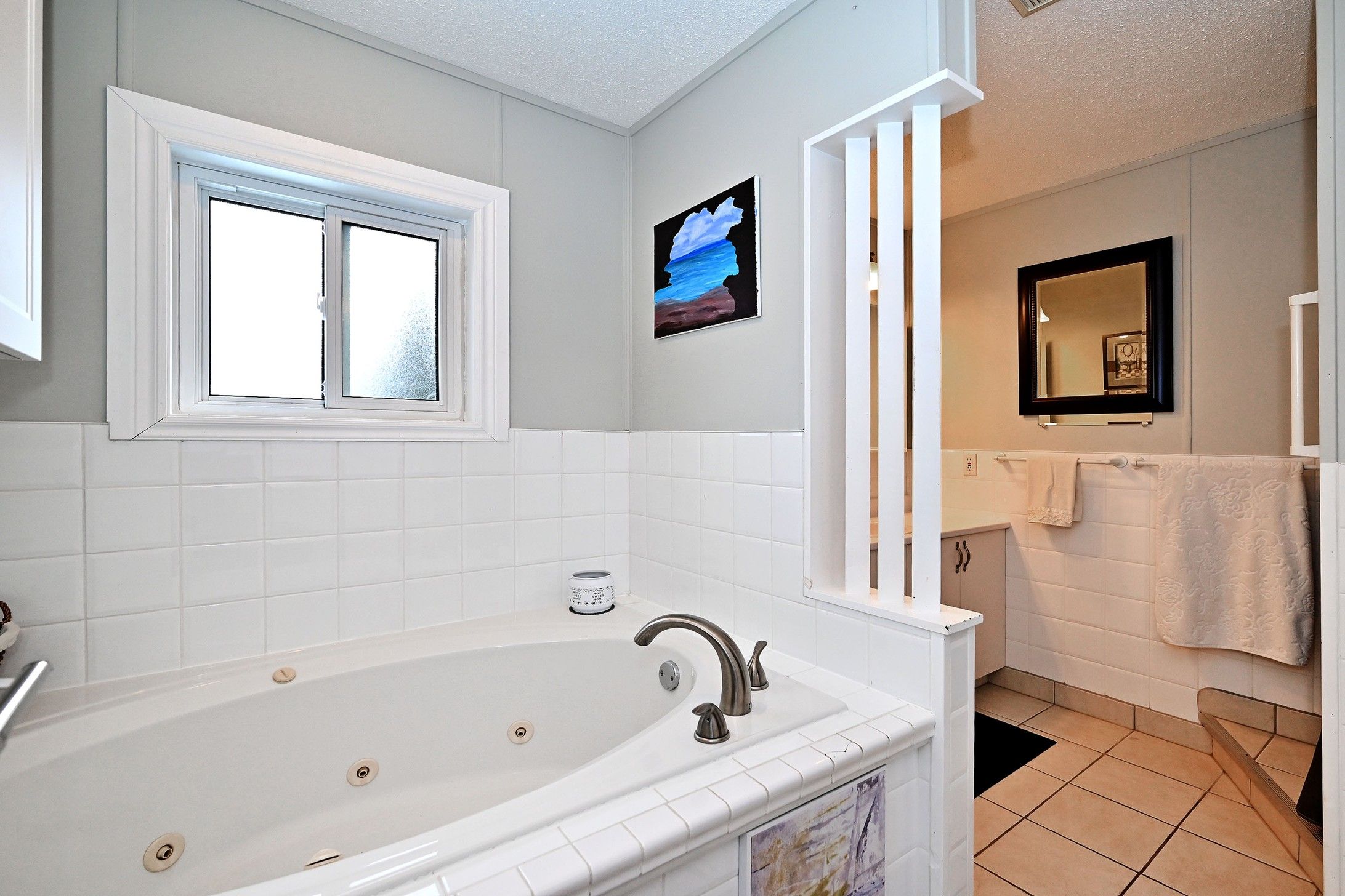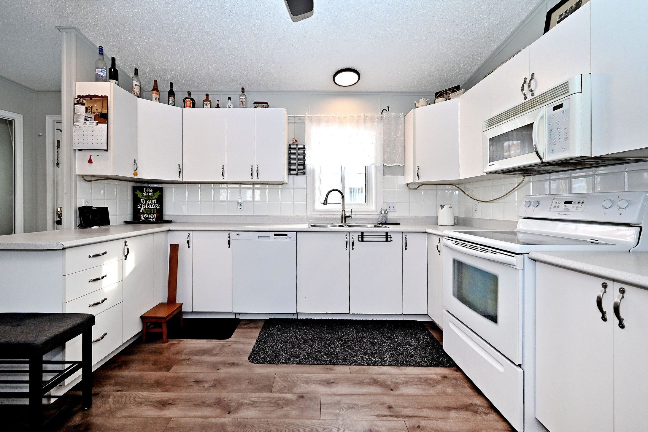 Attention first time buyers, renters, and those looking to downsize! This modular home is a wonderful opportunity for home ownership in a country setting ! Charming 2 bedroom modular home with spacious layout! Inviting living room features a chalet style beam ceiling and cozy wood burning fireplace. Bright eat in kitchen with plenty of counter space! The stylish banquette seating offers both charm and functionality to the kitchen! You will certainly appreciate that each bedroom has its own bathroom. The main bathroom is recently renovated with sought after modern touches. Many recent upgrades allow you comfortable living and peace of mind. Upgrades include: hot water tank - owned (2026), shingles (2024), deck,(2021),new flooring (2021),family bathroom(2021),paved driveway (2021), windows (2019). Located just mins from bradford this land lease community has no age restrictions. Monthly fees of $575. 00 include property taxes and water. Home owner responsible for hydro, internet and phone. Plenty of room for 4 cars in the private driveway, and guest parking is available! Enjoy living comfortably in a serene setting!