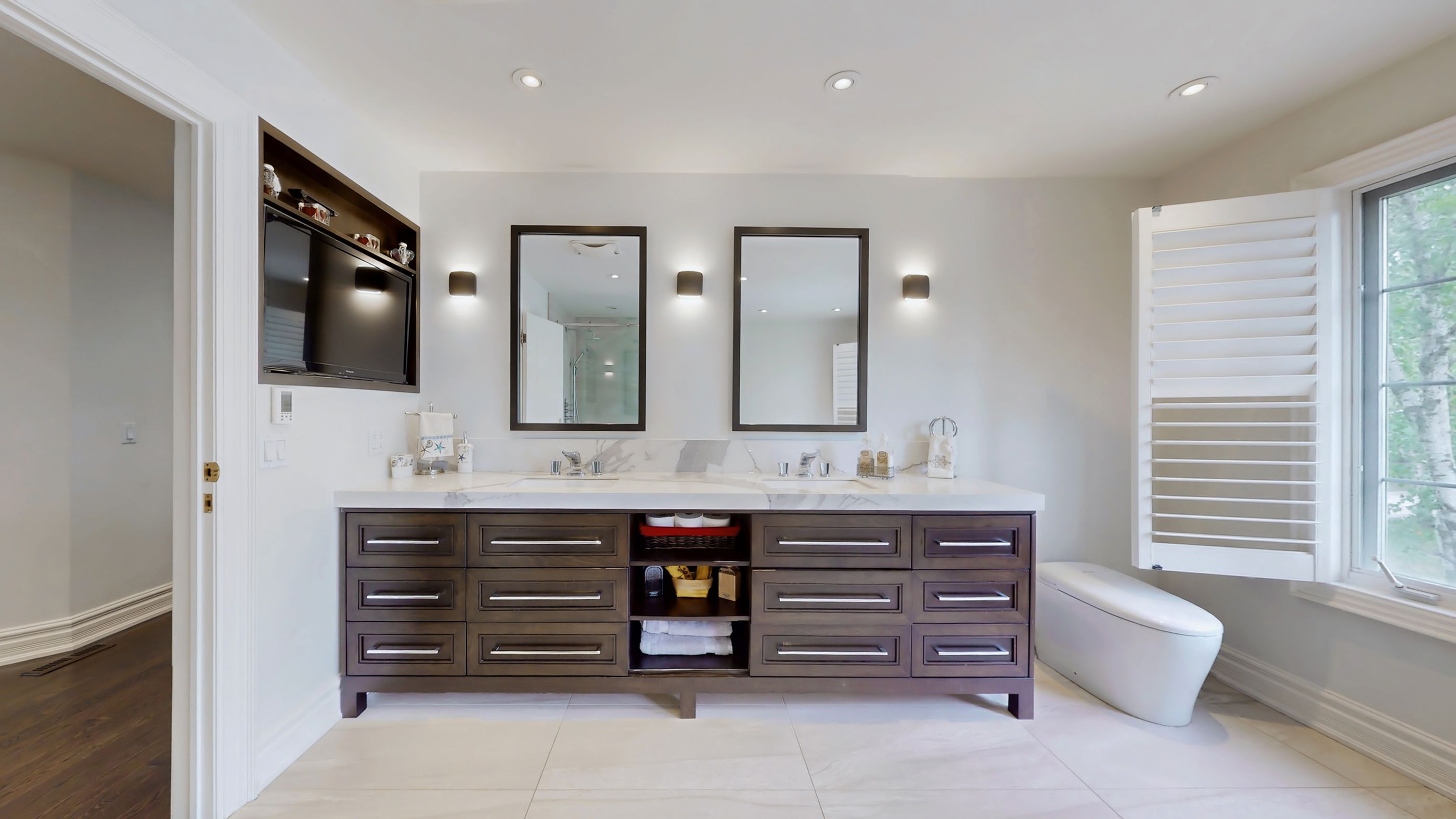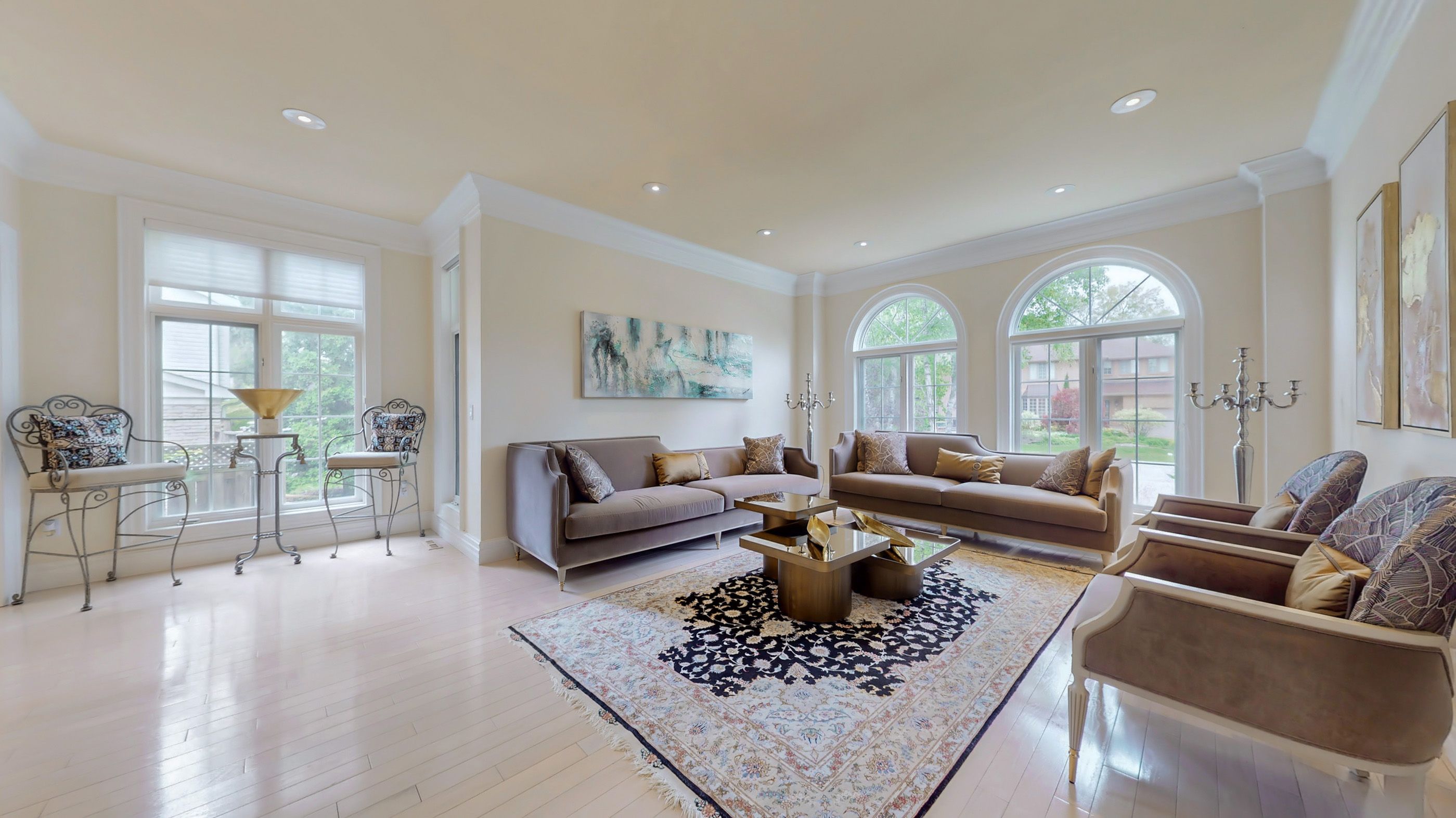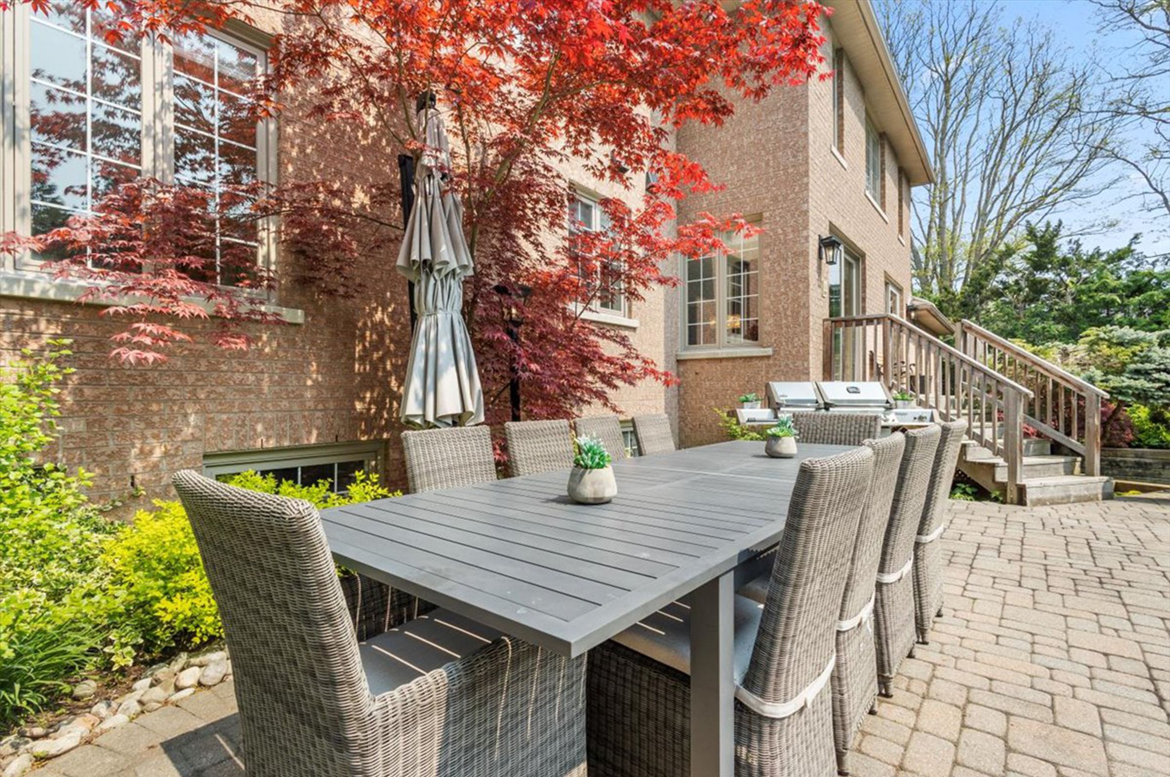 A rare blend of luxury, functionality & timeless elegance in bayview glensituated on an expansive 132 ft frontage with a private backyard retreat, this stunning residence offers nearly 7,000 sq ft of luxurious living space in the heart of bayview glen, one of markham's most prestigious communities, near the exclusive bayview golf & country club. Thoughtfully designed for both everyday living and elegant entertaining, the main floor features 9 ft ceilings, oversized principal rooms, and a chef-inspired kitchen outfitted with premium wolf and sub-zero appliances, a walk-in pantry, and a bright breakfast nook that flows into the spacious family room. Additional highlights include a formal living room, dining room with gas fireplace, private library, two powder rooms, and a large mudroom with ample storage. Upstairs, five generously sized bedrooms await, including a sophisticated primary suite with gas fireplace, two walk-in closets, and a spa-like 7-piece ensuite. All secondary bedrooms offer ensuite or semi-ensuite access. The fully finished lower level offers over 1,800 sq ft with 9 ft ceilings, a walk-up to the backyard, a large recreation room with gas fireplace, gym area with spa amenities - hot tub, sauna, and shower/changing room, plus a kitchenette, powder room, and guest bedroom with ensuite. Outdoors, enjoy a resort-style backyard oasis featuring a swimming pool with waterfall, built-in hot tub, mature landscaping, and abundant space for entertaining. Completing this exceptional home is a triple car garage, side and circular front drive with parking for 12+ vehicles.