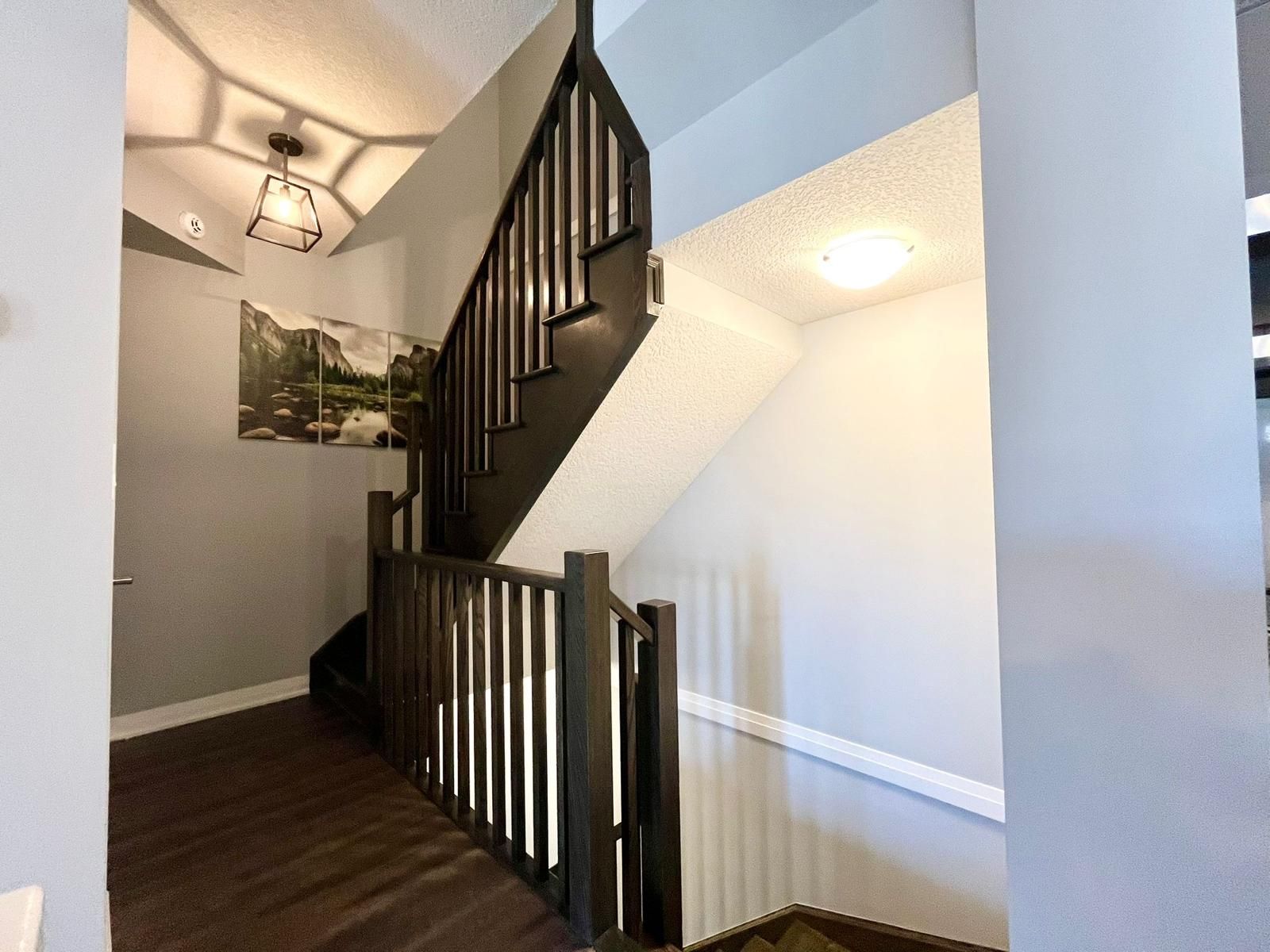 Beautiful 2 bedrooms with a loft. Freehold home in laguna village of stoney creek. Great location, good size rooms, beautiful white kitchen with quartz countertop. Upper level laundry. Access from garage to the home. Security system with cameras. Close to parks, schools, transit, grocery store and shopping stores. This home has it all and you'll be impressed.