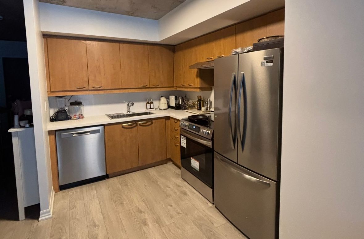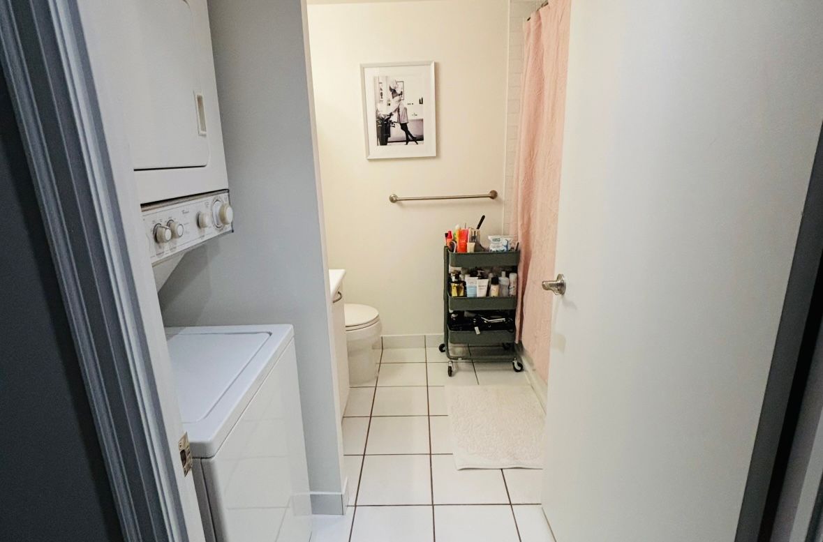 Welcome to 22 wellesley! This medium-sized, luxury loft-style condo is perfectly located next to wellesley subway station, offering easy access to bloor st, yorkville, bay st, and the u of t. Well-designed one-bedroom suite spans approximately 490 sq. Ft. Plus 120 sq. Ft. West facing full-length open balcony with stunning city views and a gas hook-up for bbqs. The unit features laminate flooring throughout, exposed concrete ceilings, and stylish concrete accent walls. The open-concept l-shaped kitchen comes equipped with a fridge, stove, dishwasher, and exhaust hood fan. A stacked washer and dryer included. Premium amenities including a fully equipped exercise room, rooftop terrace, jacuzzi, sauna, and more. 24-hour concierge service. The layout is ideal for first-time homebuyers or investors. A storage locker is also included!
