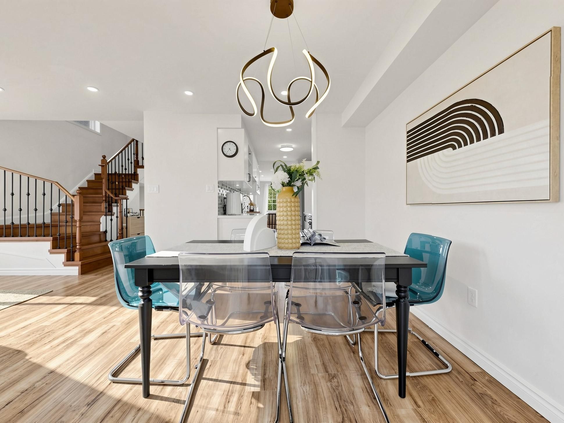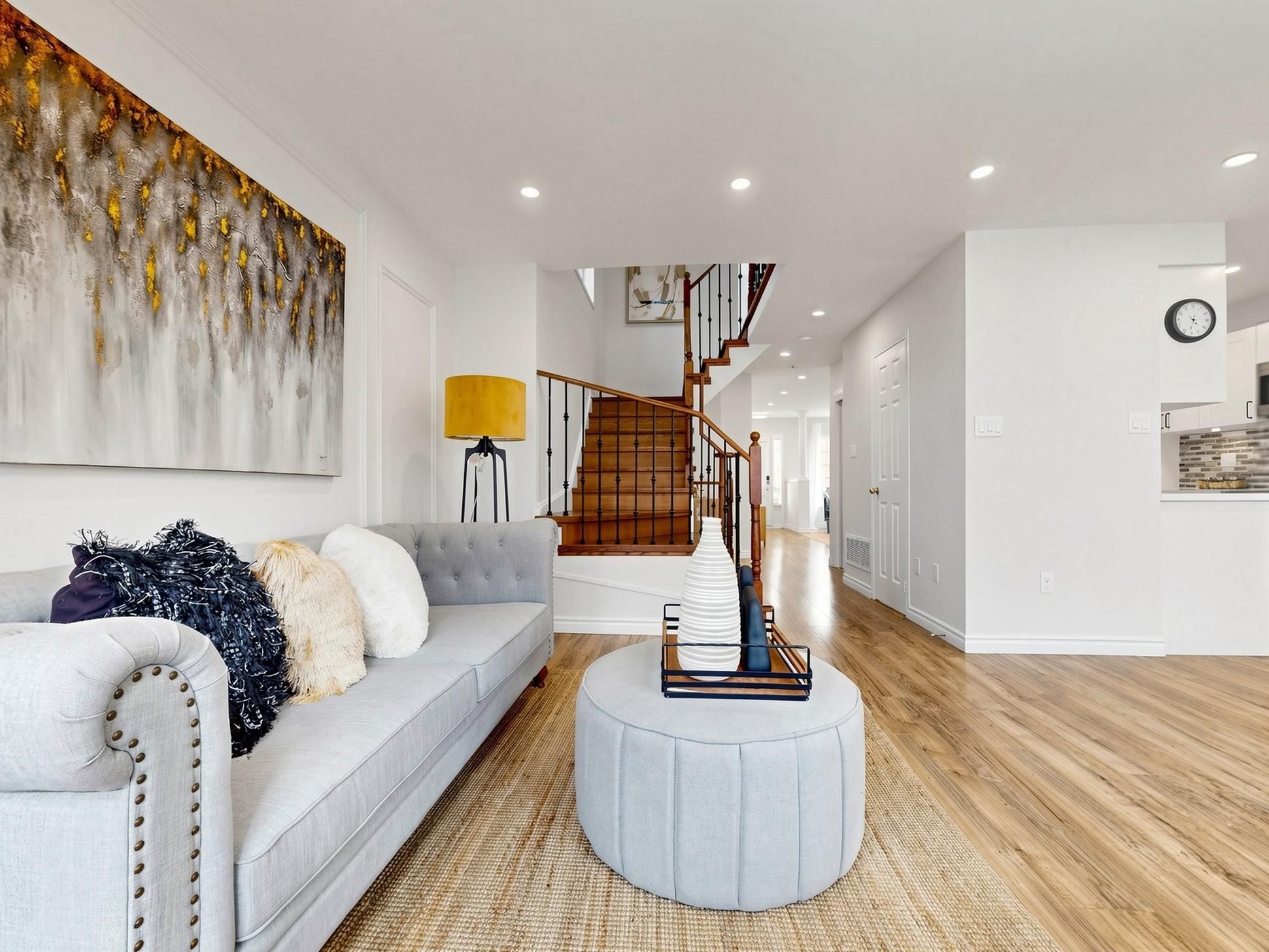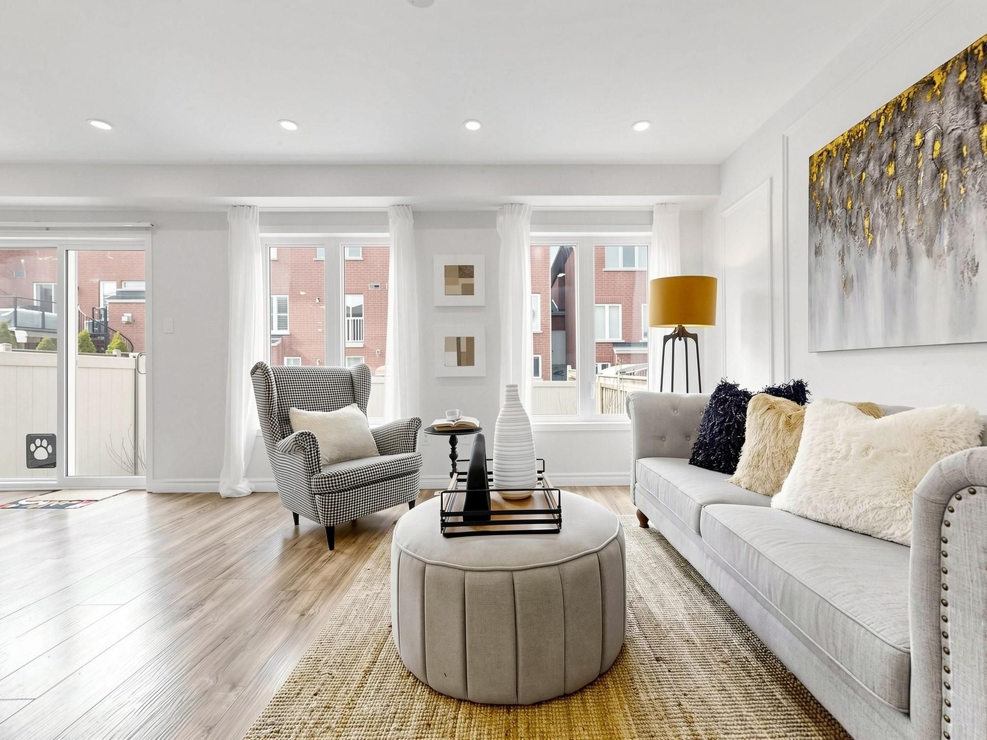 Bright and spacious 3-bedroom townhome with 24 ft wide frontage, located on a quiet, child-safe crescent in the highly sought-after inspiration community. Features a renovated modern kitchen,new high-quality flooring throughout, upgraded staircase, new light fixtures, and fresh paint. Functional open-concept layout with two separate living zones. Partially finished basement offers additional flexible space. Conveniently located within walking distance to a large park,top-rated french immersion public school, and highly ranked richmond high school. Close to clinic, bank, soccer field, daycare, and other amenities.