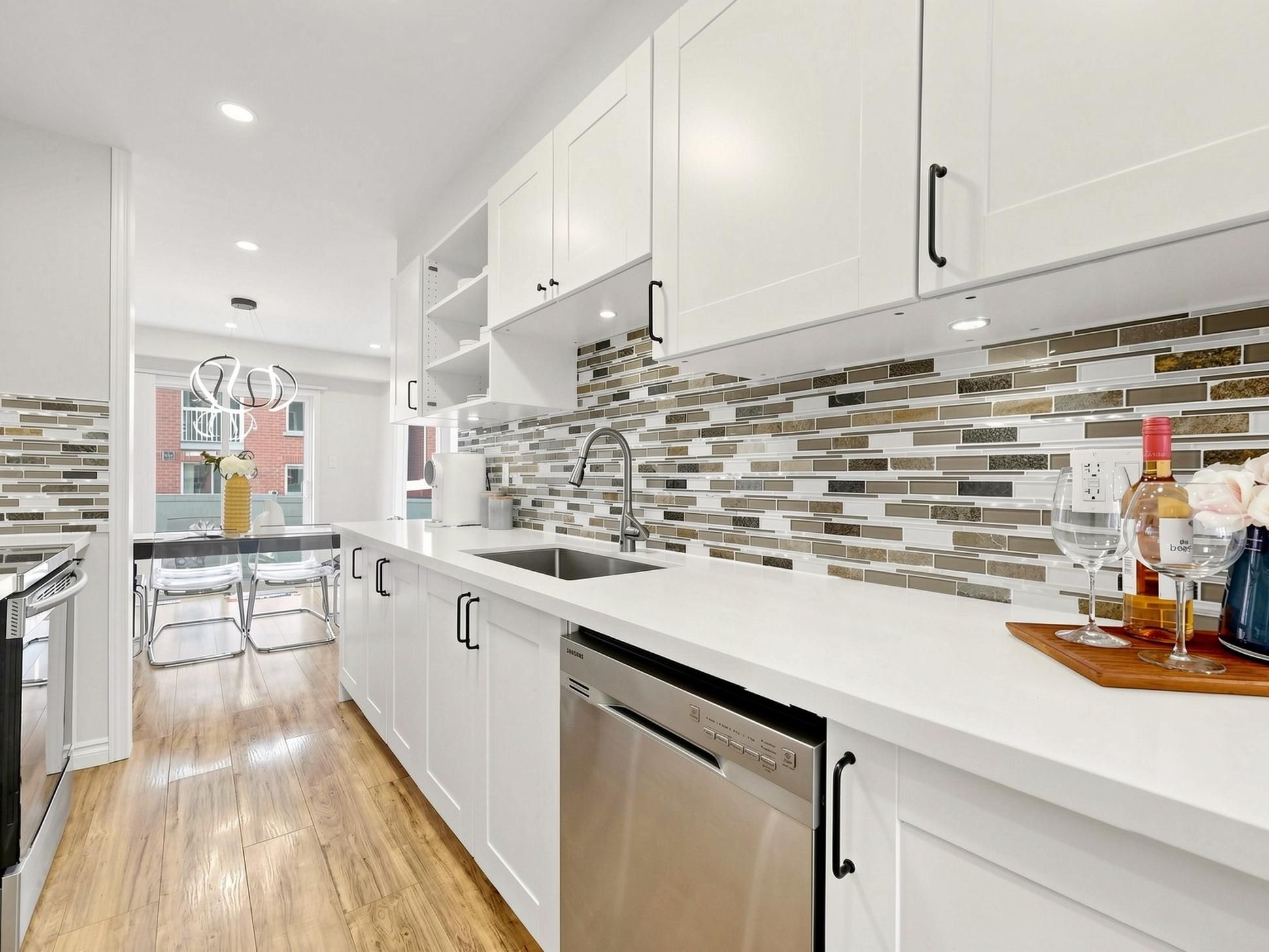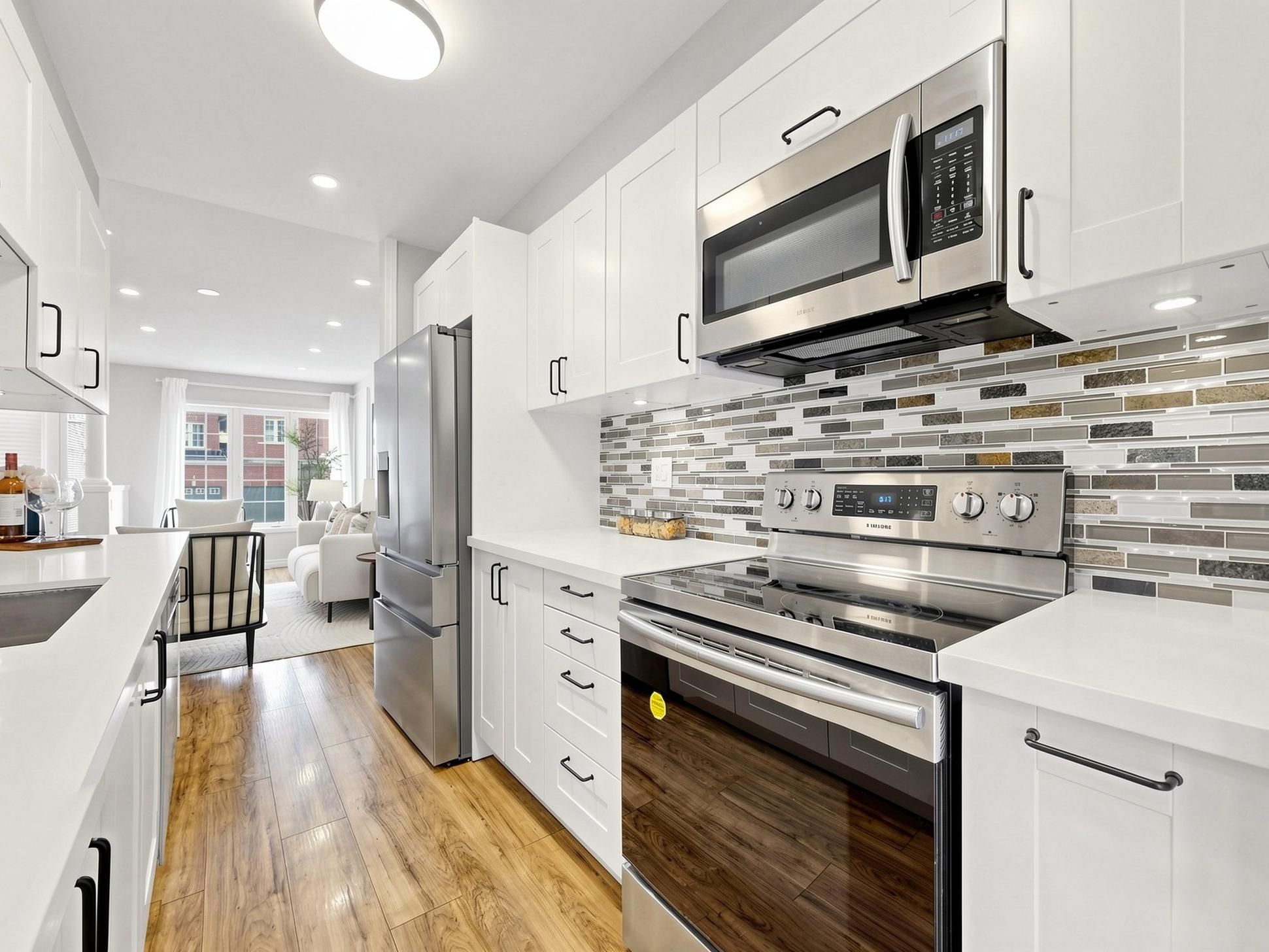 • Renovated modern kitchen with high-quality flooring and new light fixtures.