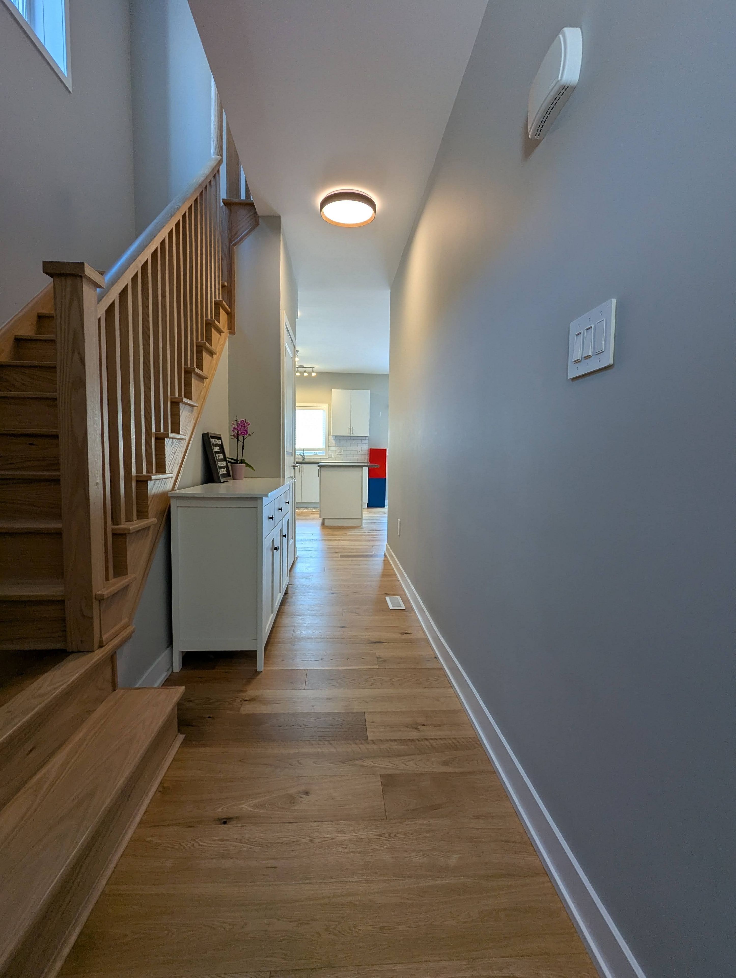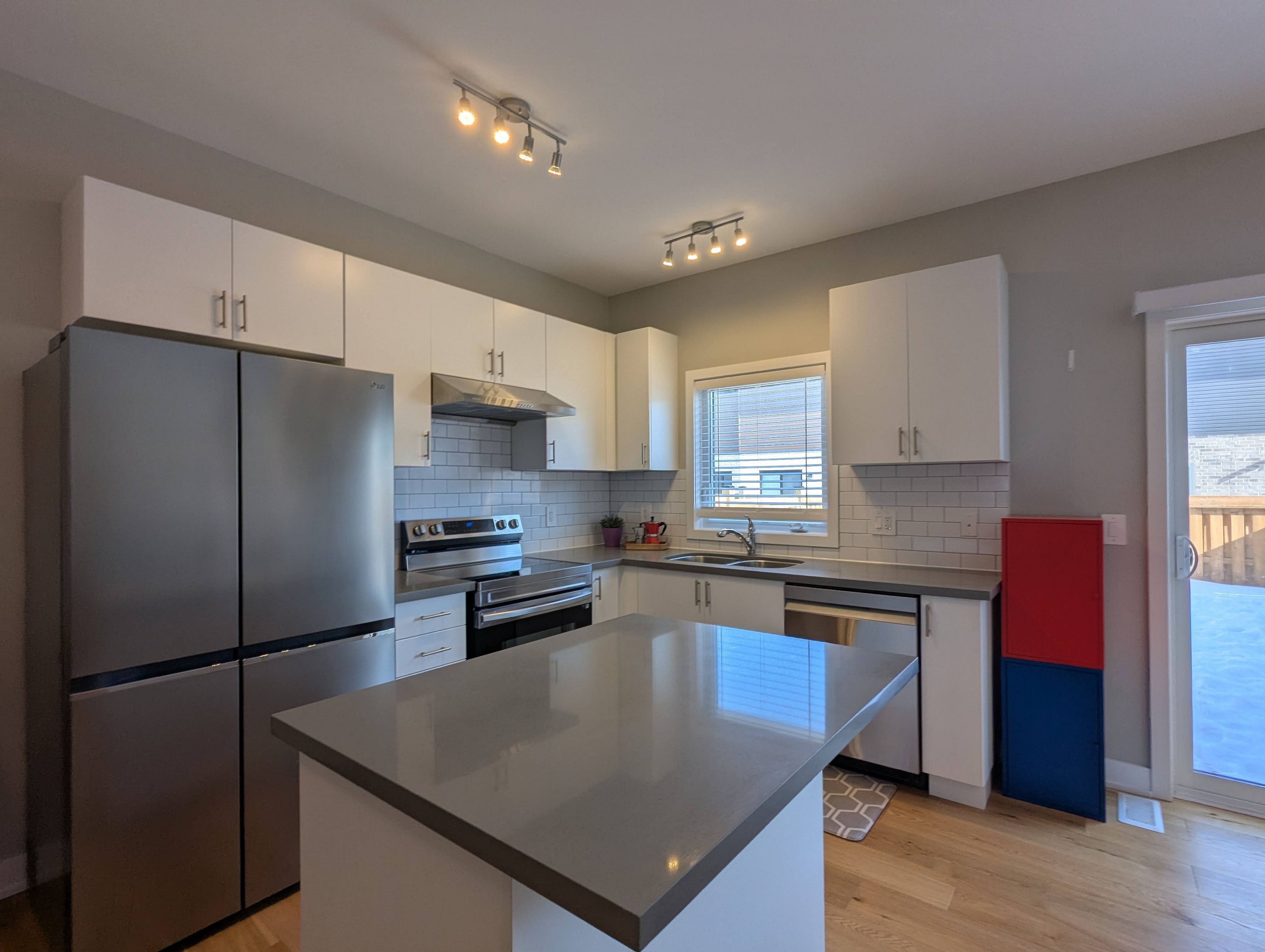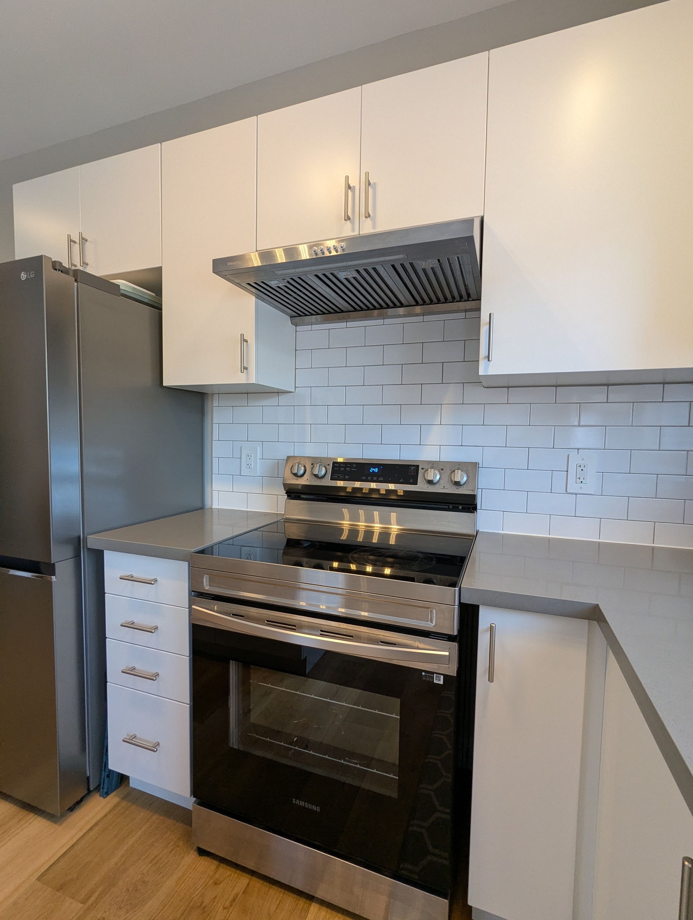 • Upgraded engineered hardwood and designer kitchen with Quartz countertops.