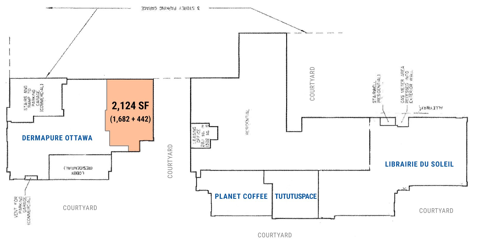 Prime retail space is available in the heart of ottawa's byward market, offering 1,682 square feet on the ground floor plus a 442 square foot mezzanine. Situated within clarendon lane, a popular tourist destination known for its historic buildings and vibrant restaurant patios, the property enjoys close proximity to well-known neighbours including dermapure ottawa, planet coffee, tututuspace, and librarie du soleil. The location benefits from exceptional pedestrian traffic, with thousands of visitors passing daily thanks to its walking-distance access to major attractions such as the rideau centre, national art gallery, rideau canal, and parliament hill. Ample parking is available nearby, enhancing accessibility for both shoppers and tenants.