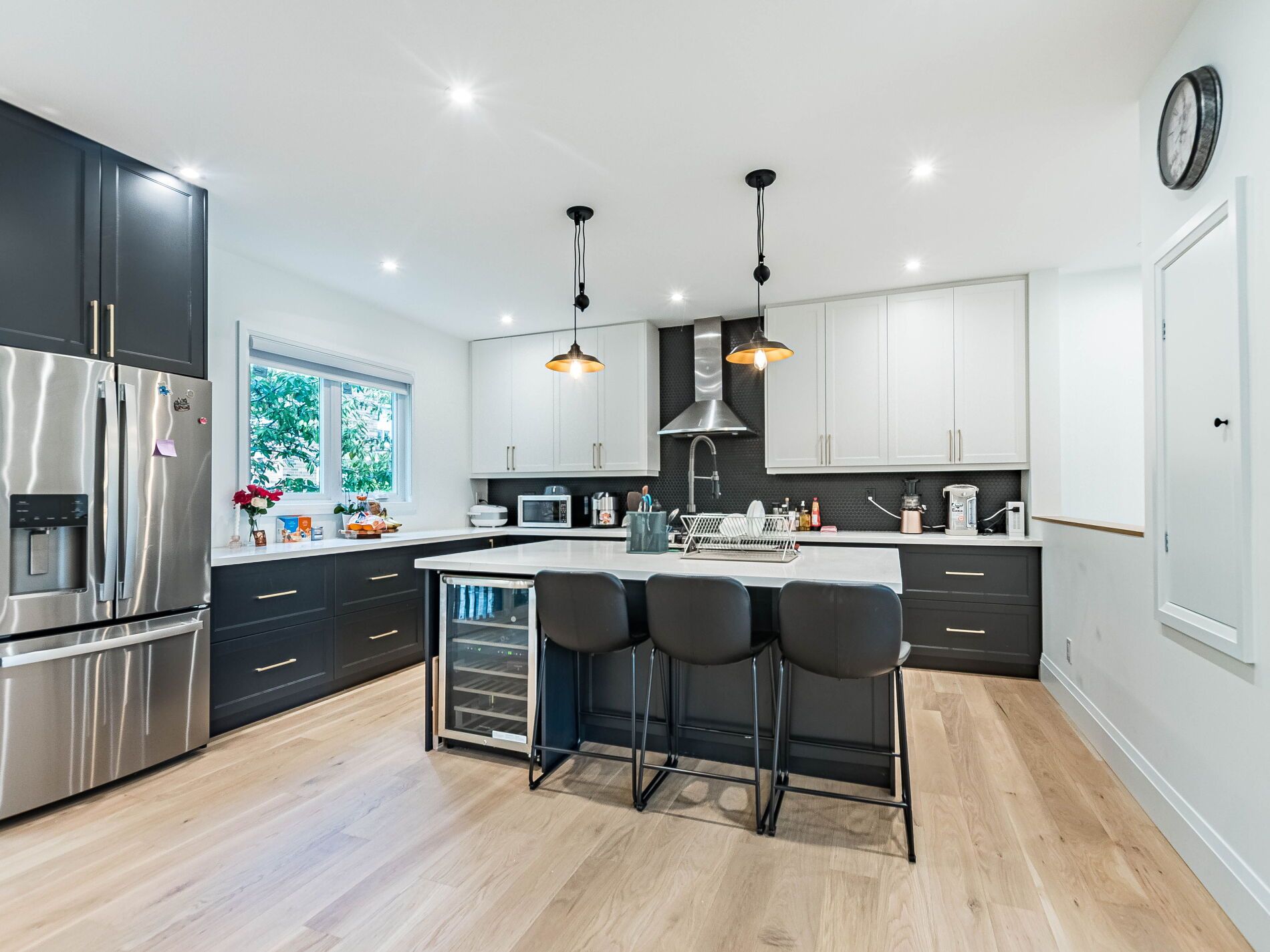 Stunning custom-built detached bungalow nestled on a quiet, child-friendly street near royal york & st phillips. This exceptional home sits on a premium 75 x 138 ft lot in the highly exclusive sought-after humber heights neighborhood. Featuring a modern open-concept layout, the main floor boasts a gorgeous custom kitchen with shaker-style cabinets, stylish backsplash, stainless steel appliances, and a seamless flow into the spacious living & dining area with walkout to the backyard. Elegant hardwood floors, pot lights, and wrought iron railings enhance the homes appeal. Offering 3+3 bedrooms and 4 beautifully finished bathrooms, this home is perfect for families of all sizes. The fully finished basement includes a large recreation room, wet bar, 3 bedrooms, and a unique walk-through 2-piece bath ideal for entertaining or an in-law suite. Located close to excellent schools, parks, shops, and transit, this property combines luxury with convenience.