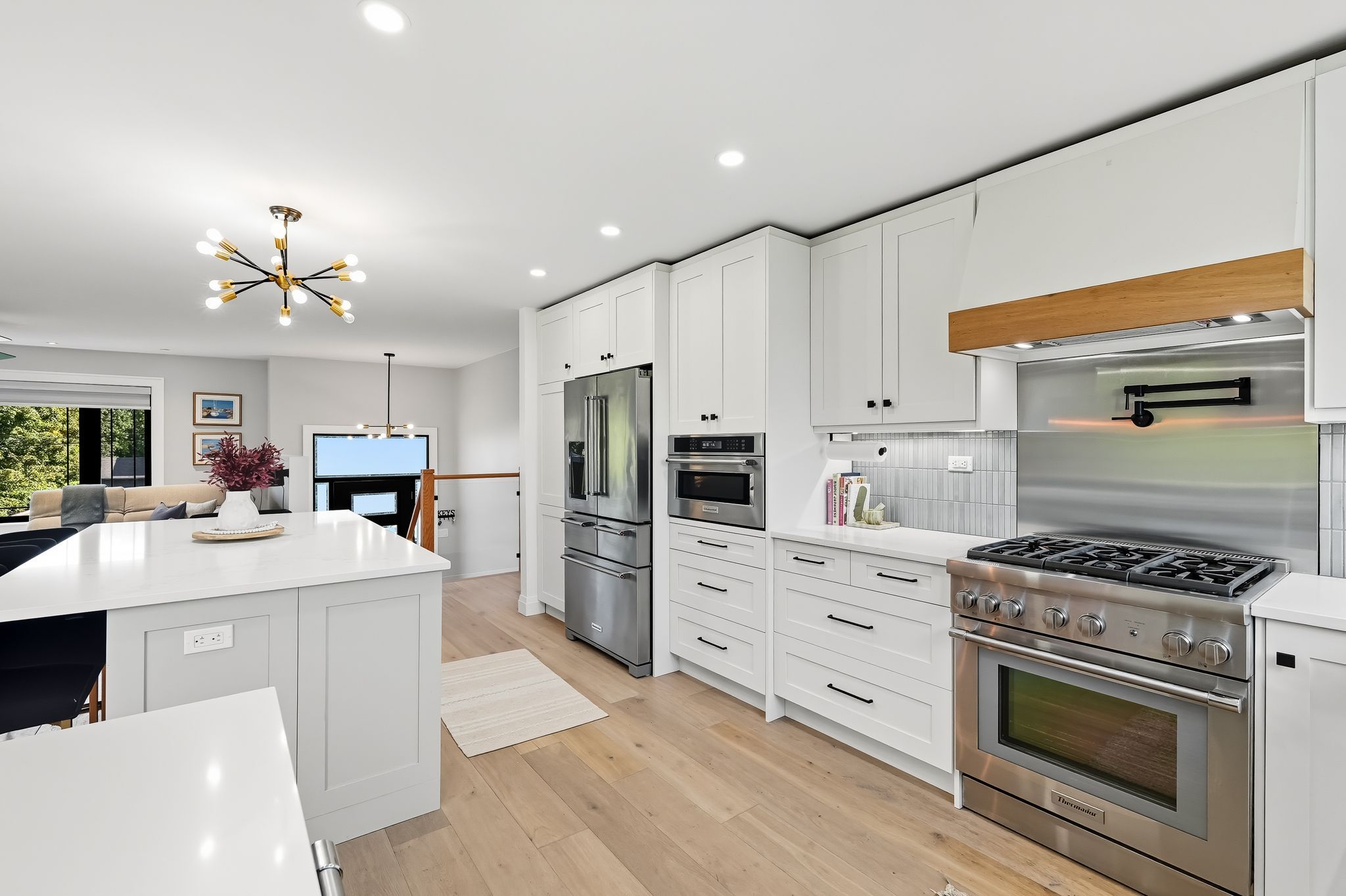 Nestled on a generously-sized, mature lot in the highly sought neighbourhood of glen acres, this beautifully renovated, 3 + 2 bedroom, raised bungalow offers a spacious layout, top-of-the-line finishes, and thoughtful design. As you step through the front door, you are immediately greeted by a light-filled, open-concept living area that seamlessly blends the kitchen, dining, and living rooms into one welcoming space. Sleek glass railings provide an elegant touch to the stairway and the brand-new kitchen, features sleek, contemporary design elements and functional style. A large central island serves as both a statement piece and a hub for family gatherings and casual meals. The kitchen boasts high-end built-in appliances, offering both functionality and elegance. The open floor plan allows the kitchen to flow effortlessly into the dining and living areas, where you'll find a built-in fireplace and large picture window. This home features three spacious bedrooms and 2 fully renovated bathrooms w/heated flooring on the main floor while the lower level offers additional space for your family to spread out and enjoy. Here you'll find a cozy rec room, 4th bedroom, full bathroom, gym/flex place, and large laundry room/mudroom with convenient access to the garage. Sitting on a large, mature lot, the home offers plenty of outdoor space to relax, entertain, or simply enjoy the privacy this property offers. Surrounded by lush greenery, mature trees, and a sense of tranquility, its the perfect balance of privacy and nature. Within close proximity to schools, parks, community centres, shopping, nature trails and all the amenities uxbridge has to offer. Small town charm with all the conveniences of modern living. *house has been updated from top to bottom all windows & doors, hardwood & vinyl throughout, brand new kitchen, new appliances, all bathrooms renovated w/heated flooring. 2 fireplaces, stairs & railings, light fixtures, deck, blown in attic insulation.