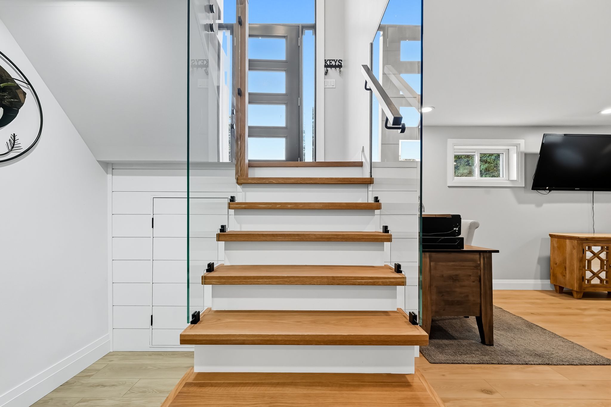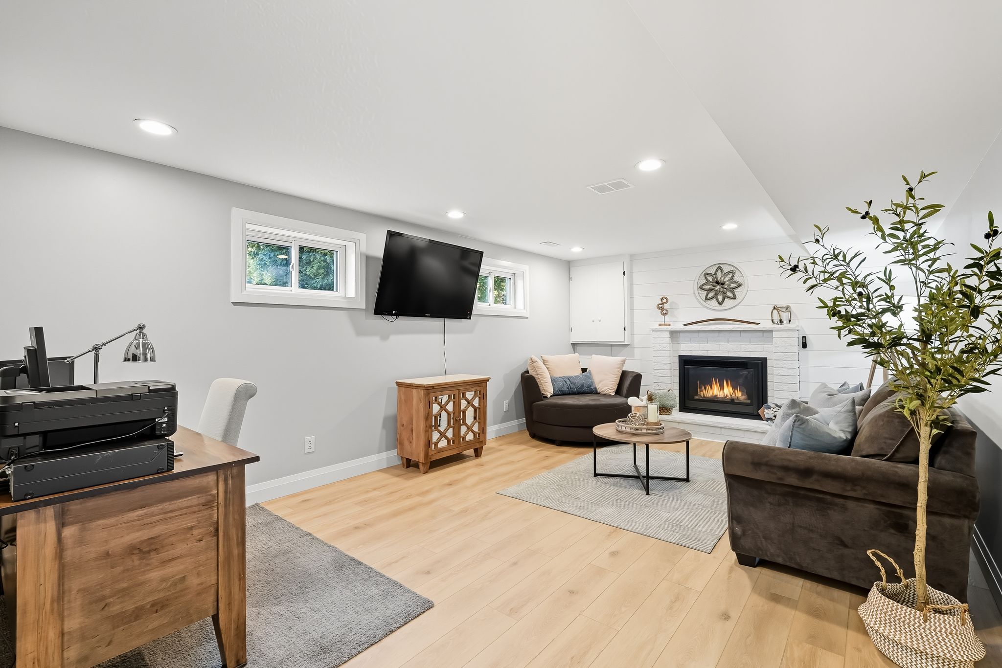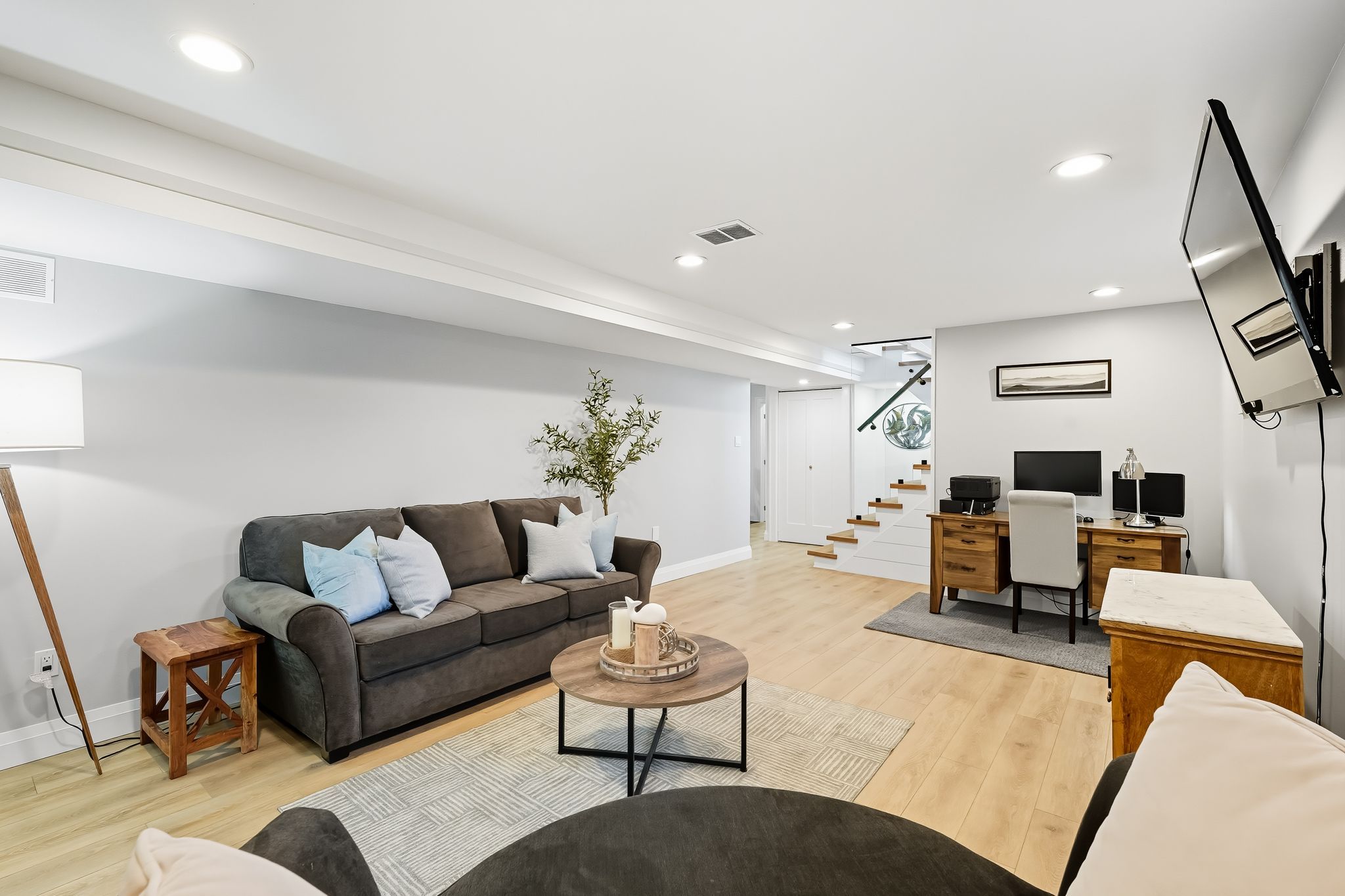 • Cozy lower level with a rec room, gym space, and extra bedroom.