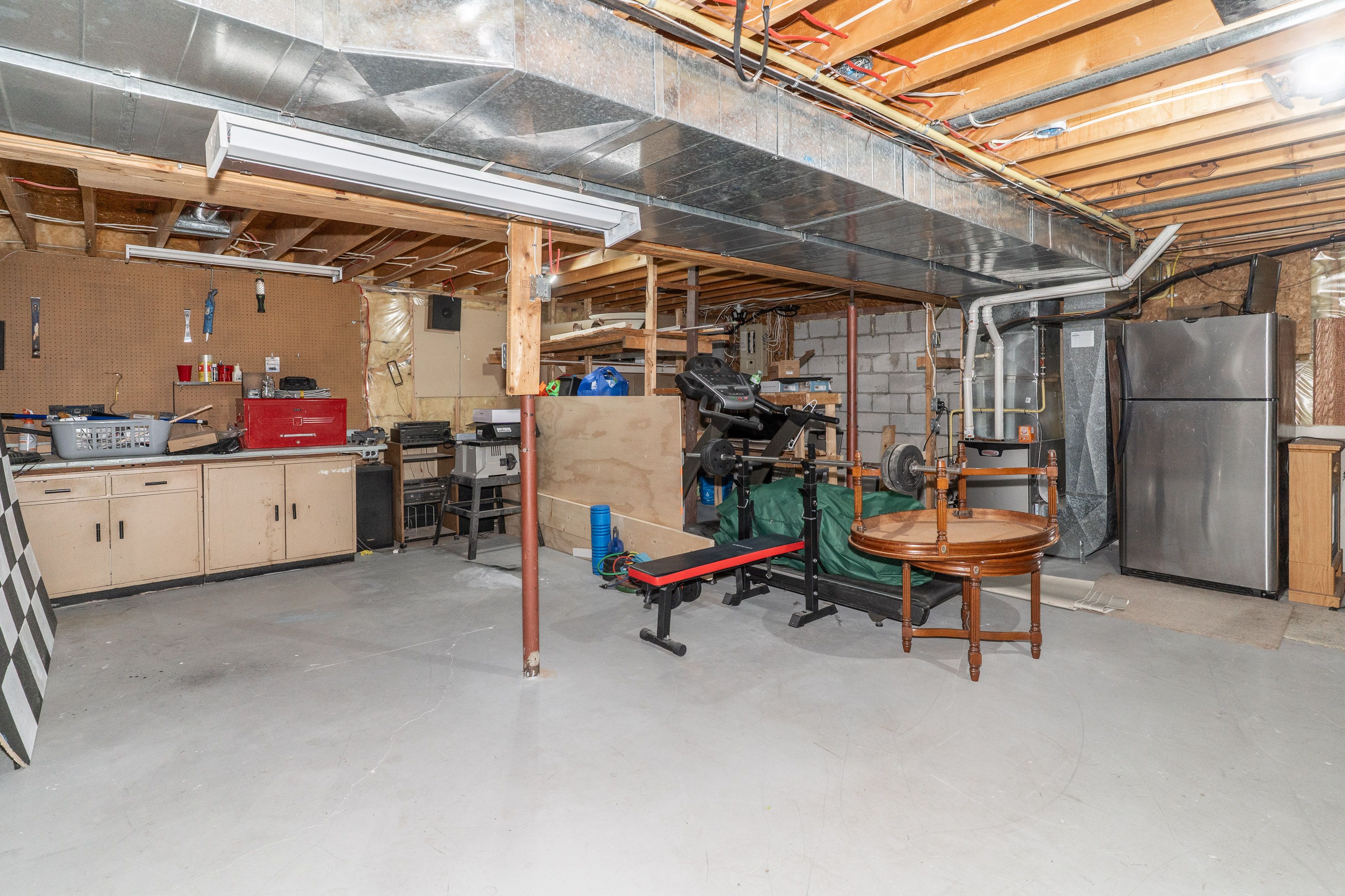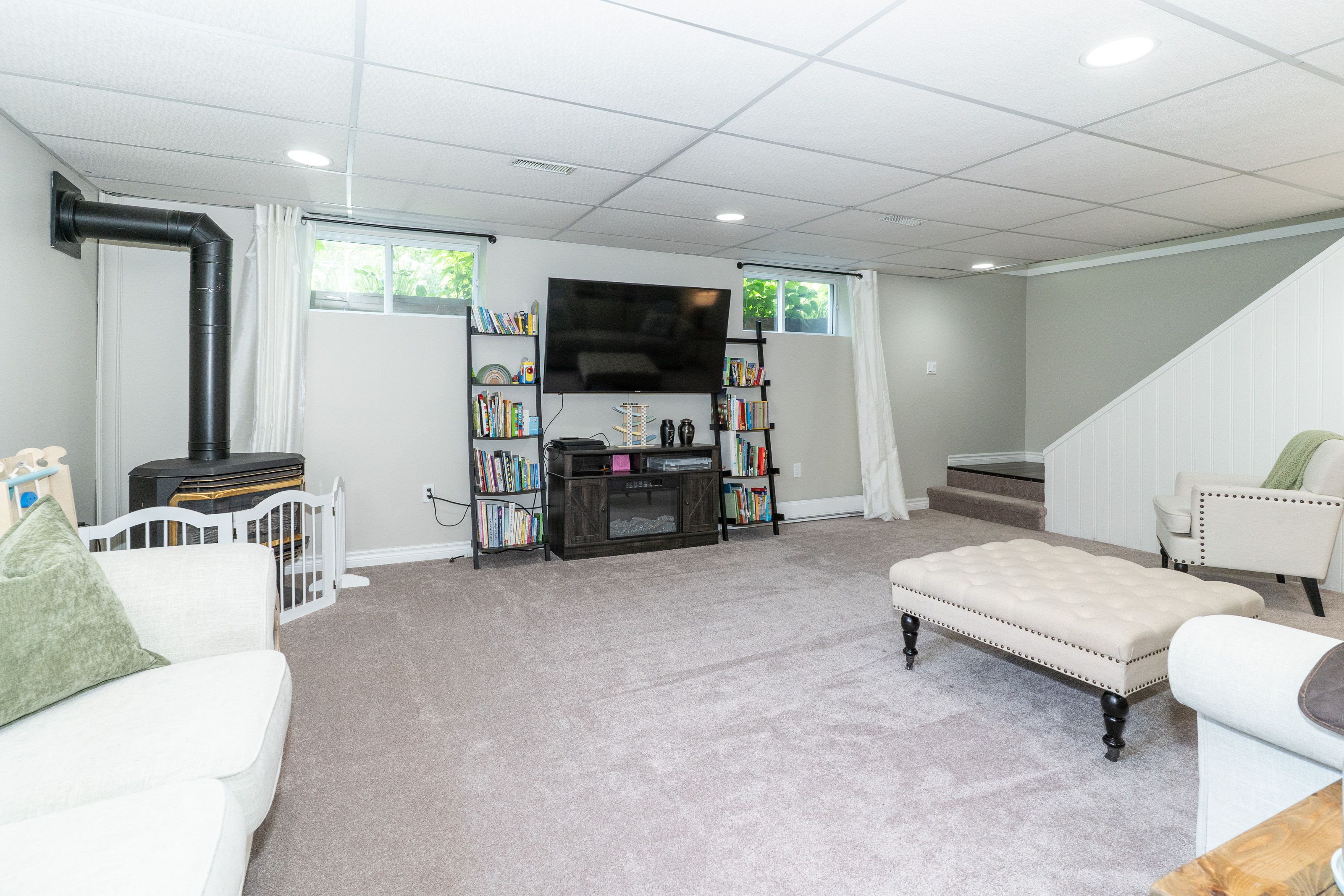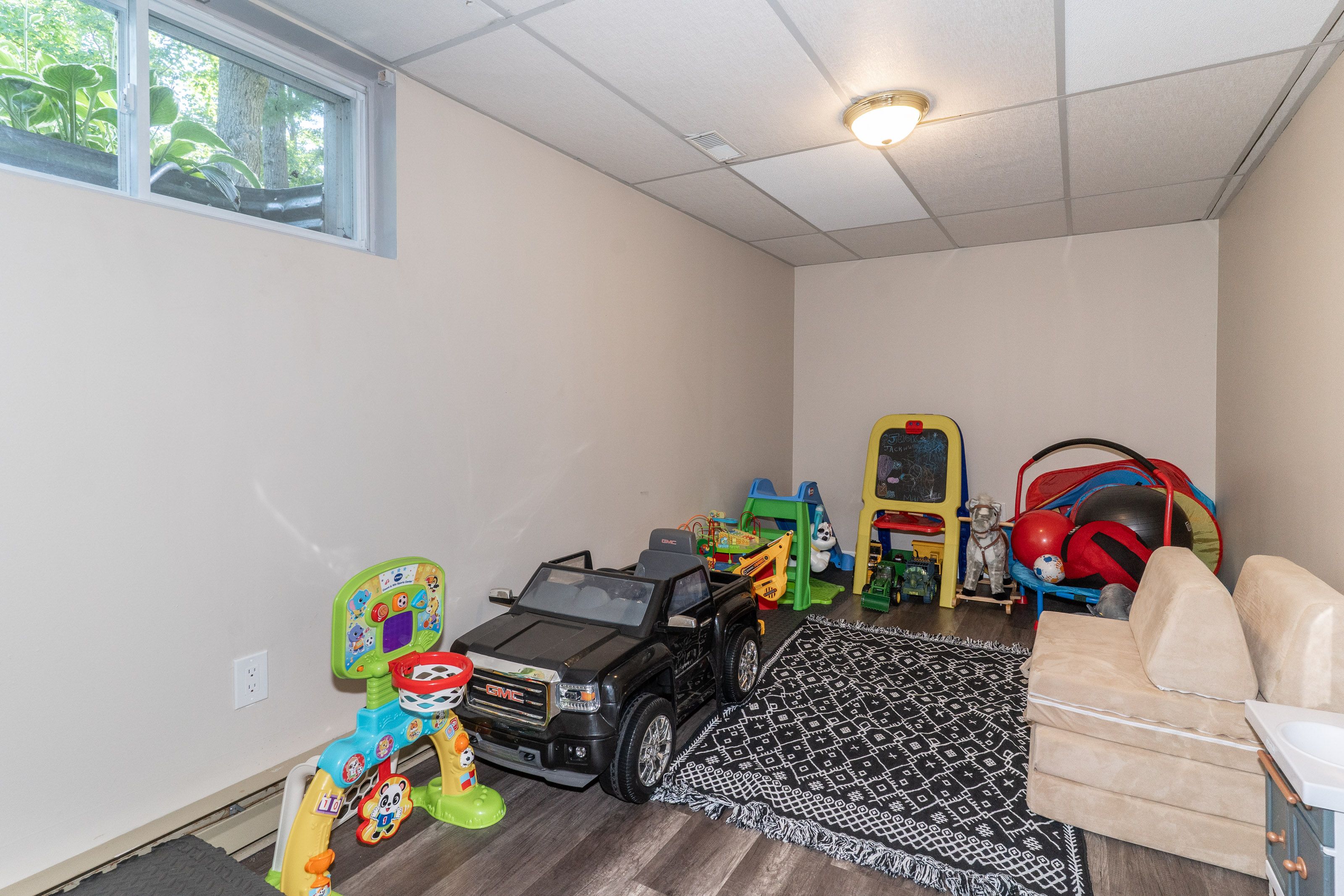• Finished basement includes a large family room with a gas fireplace.