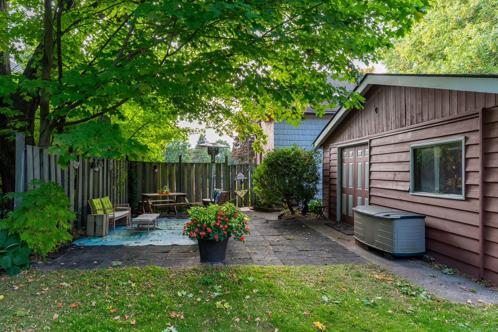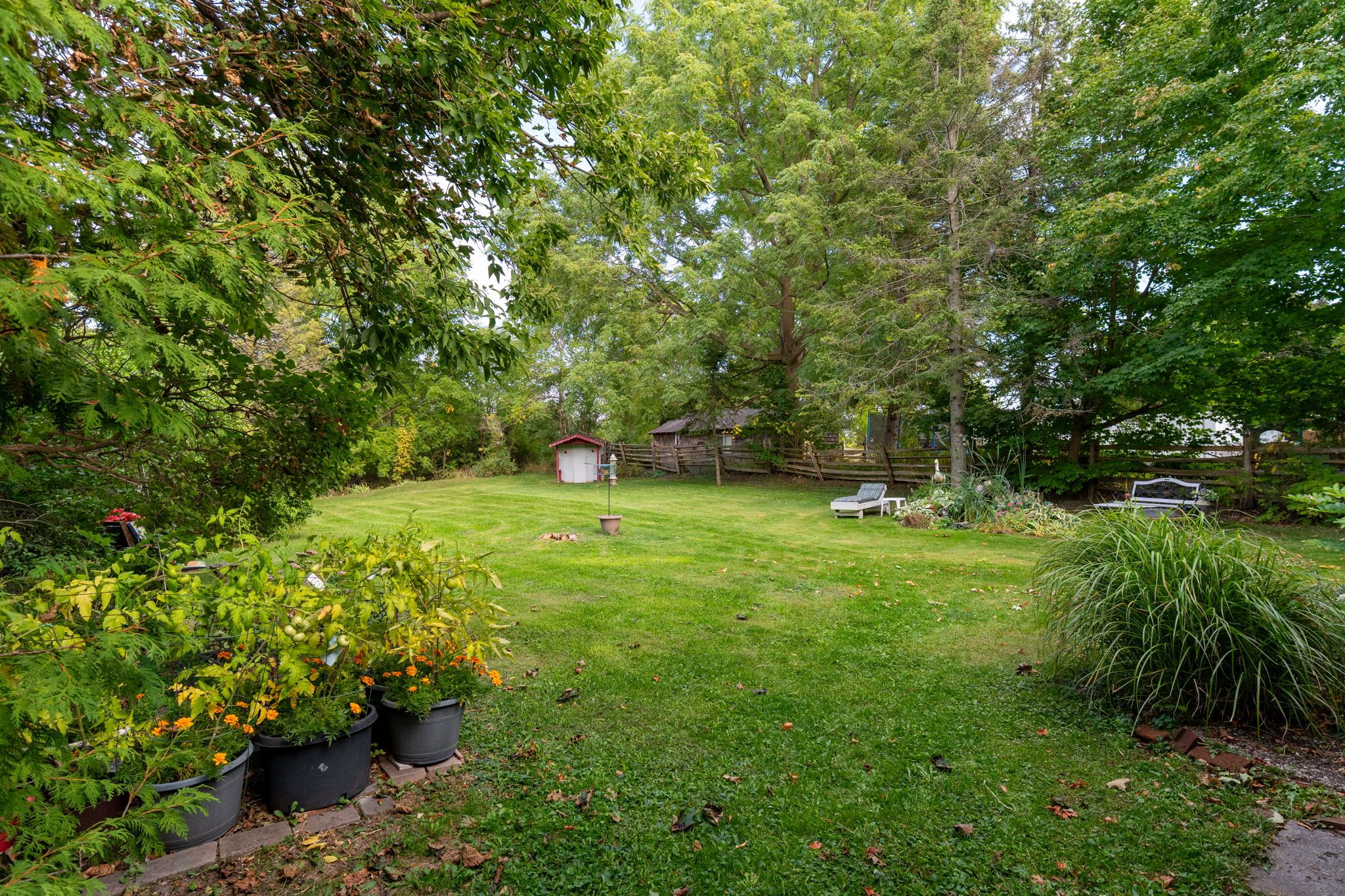• Expansive backyard oasis with mature gardens and tranquil water feature.