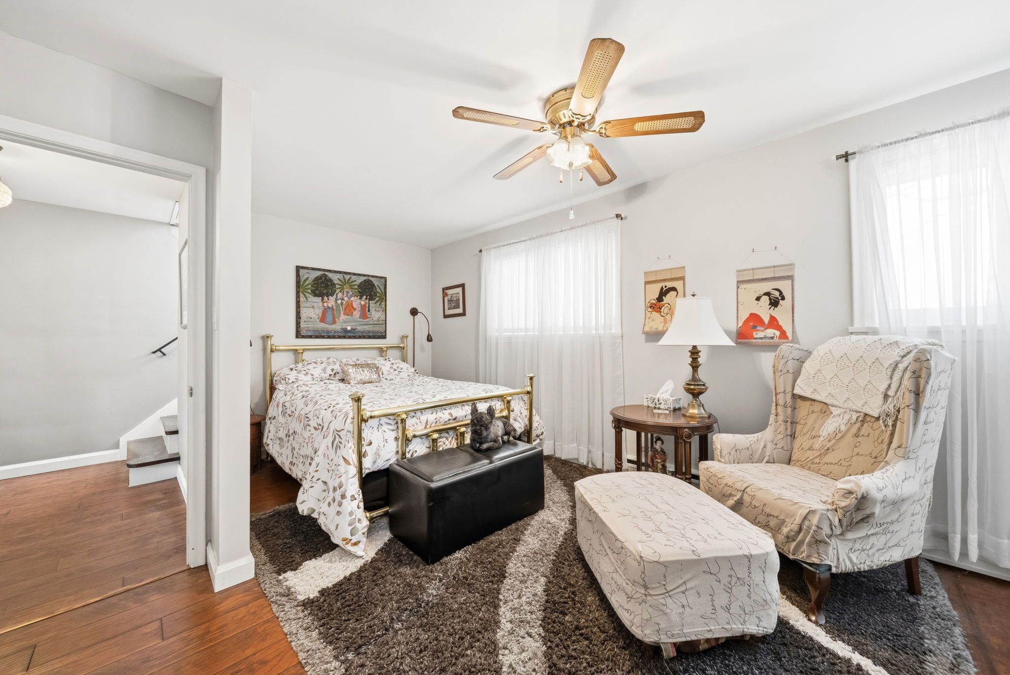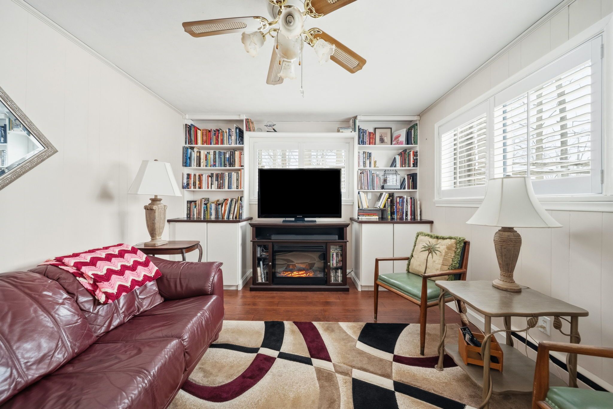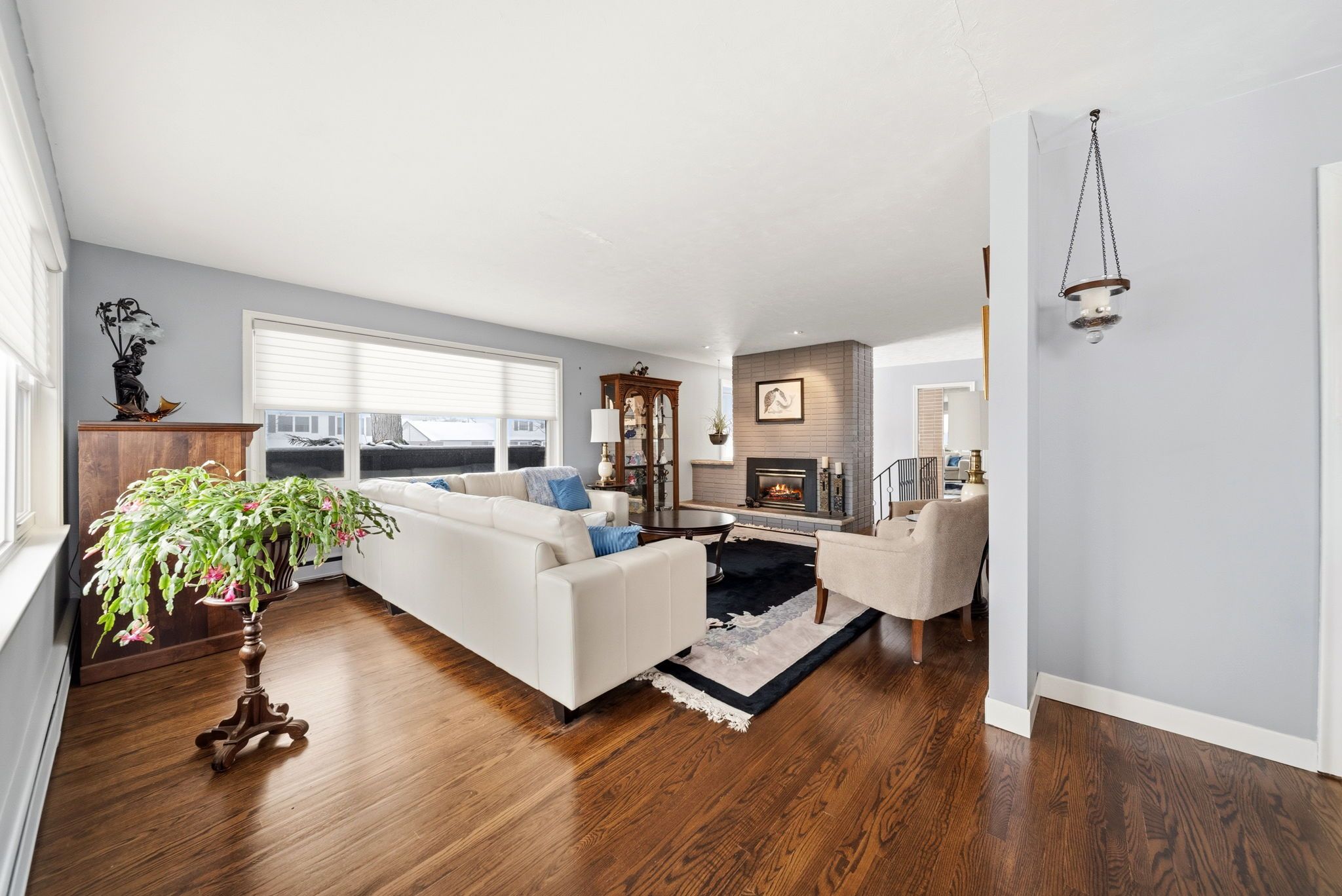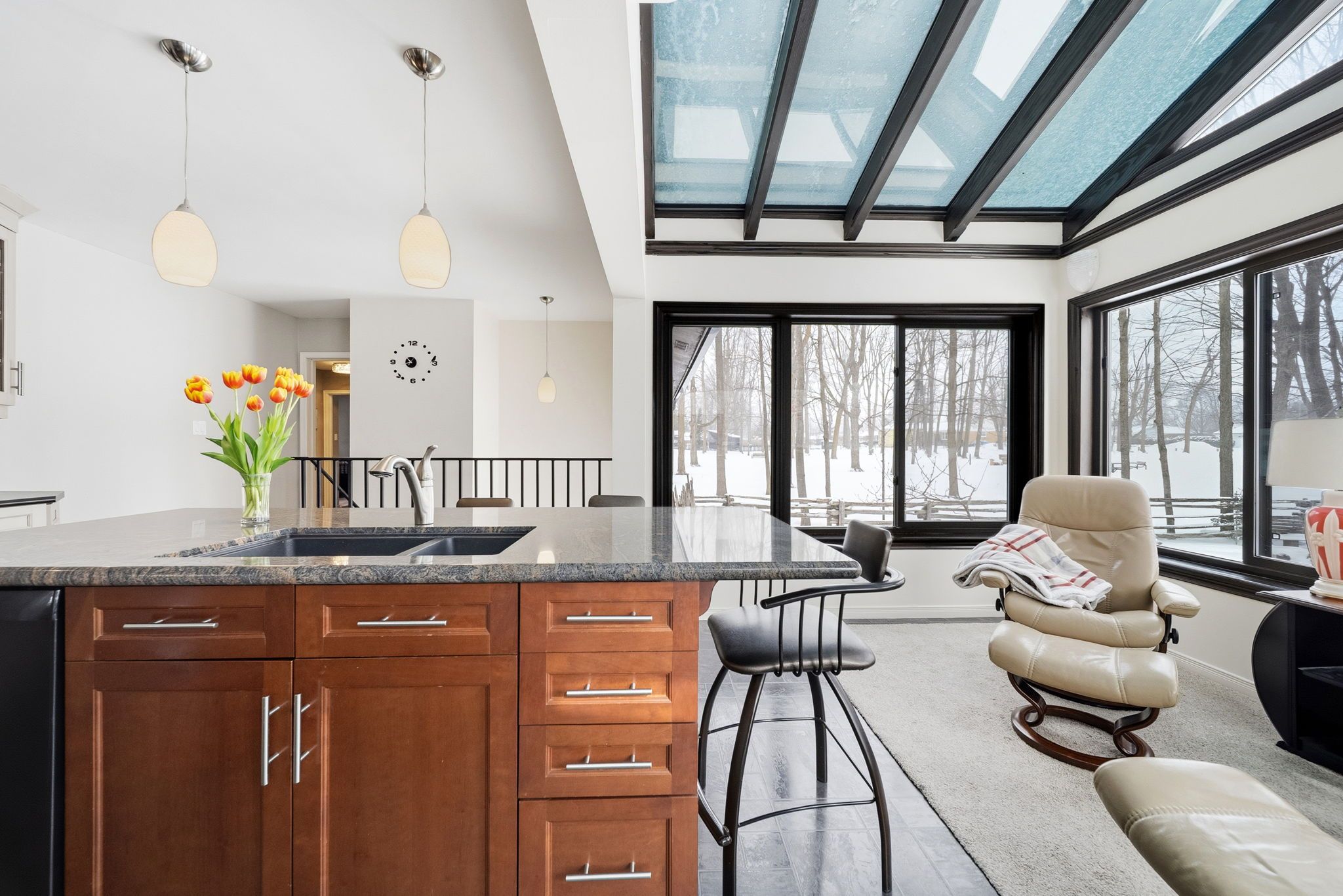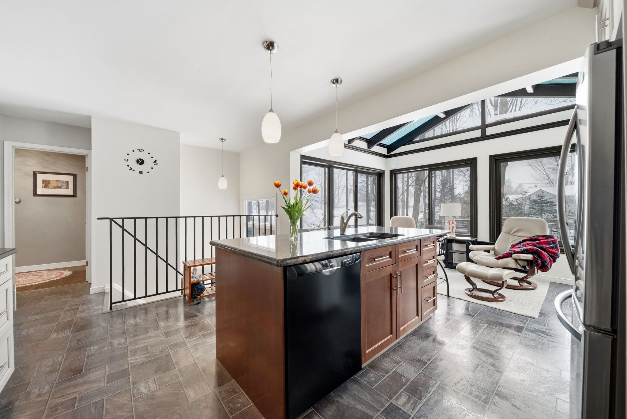 • Bright sunroom adds natural light, perfect for relaxation or reading.